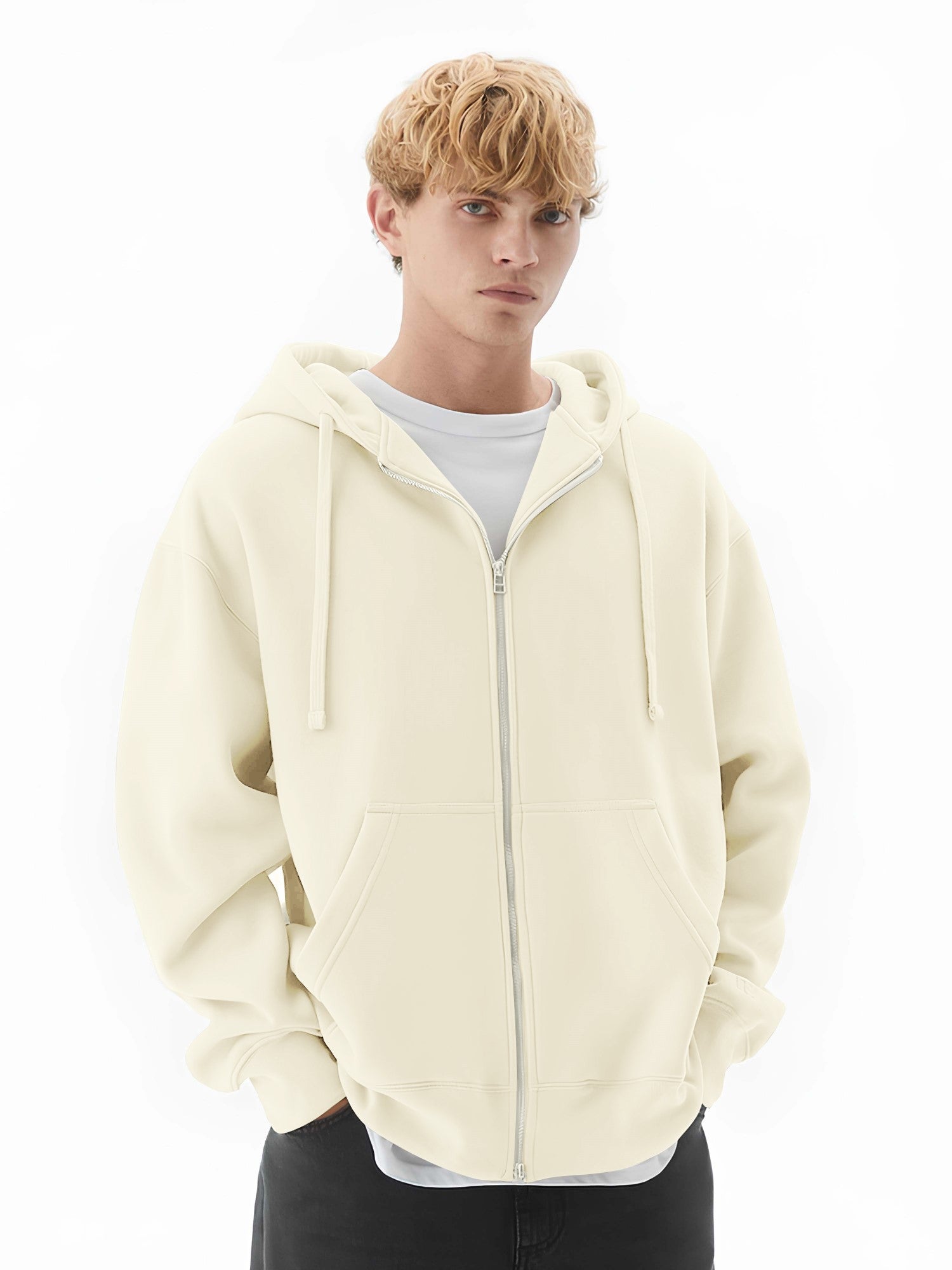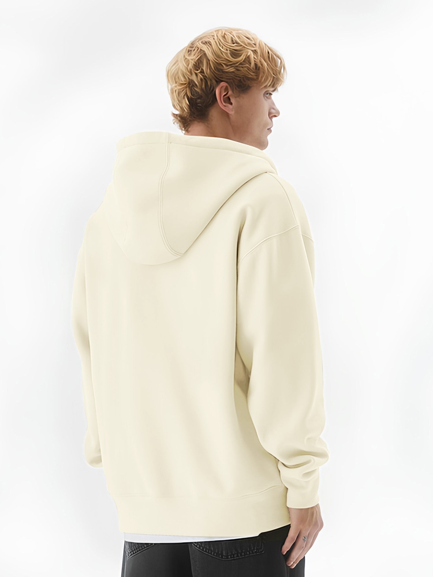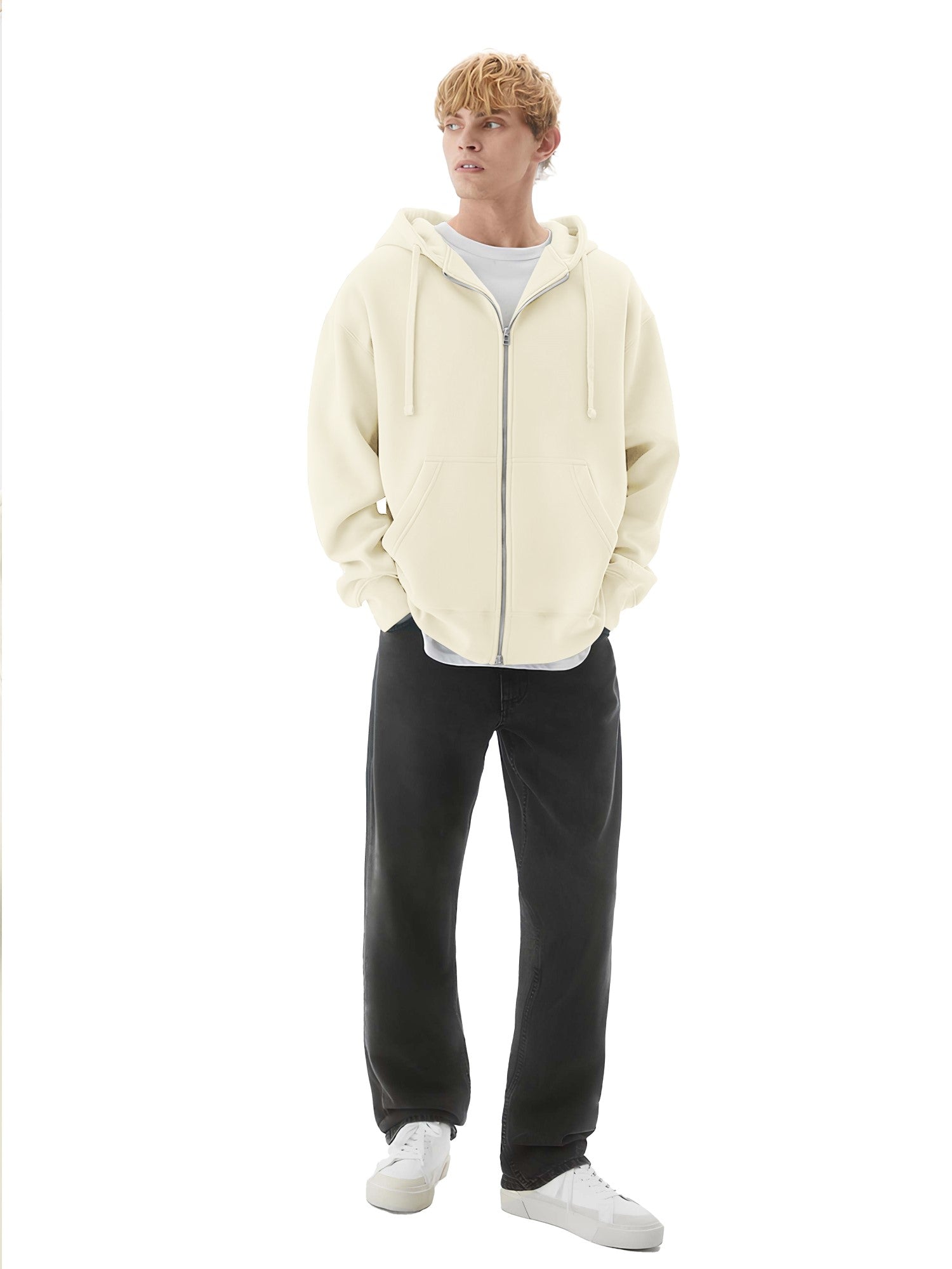 Monochrome Cream Half White Cozy Cut Hoodie Full Sleeve Sweatshirt