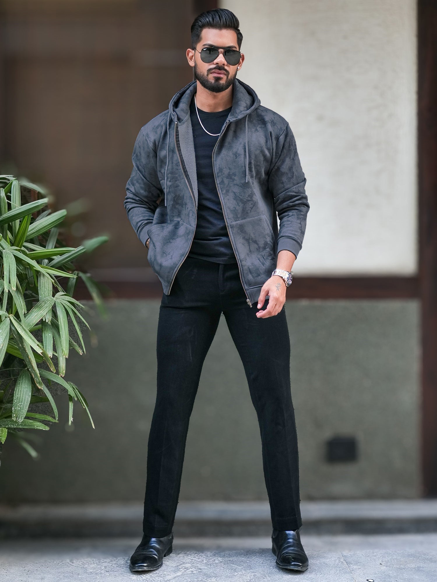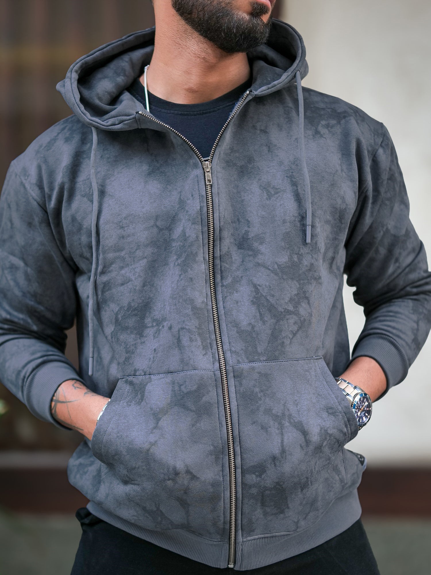 Cloud Printed LightGrey Zipper Full Sleeve Sweatshirt