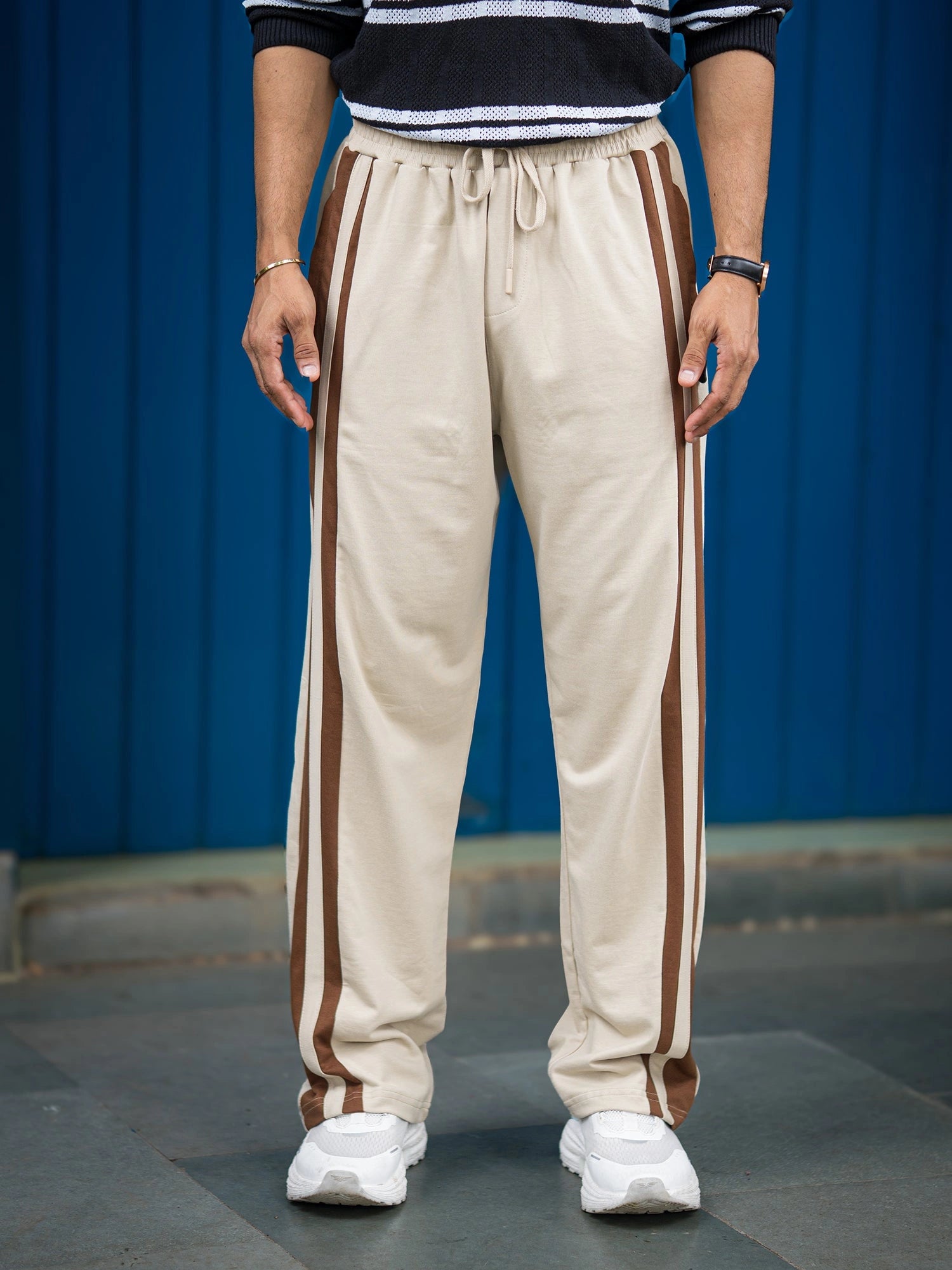 Biscuit cotton baggy track pants with relaxed fit and everyday comfort.