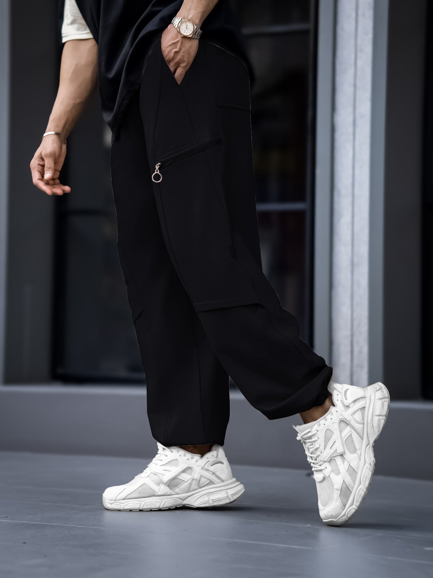 Utility Zipper Black Trackpant