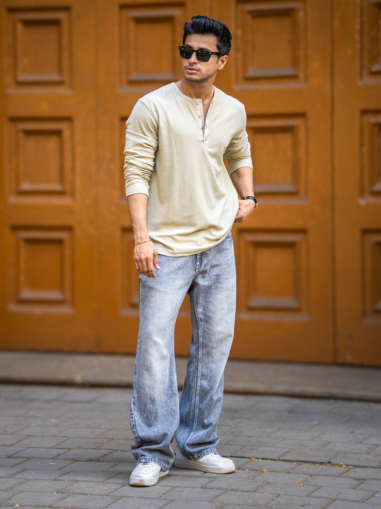 Waffle Beige Henley Full Sleeve Tshirt