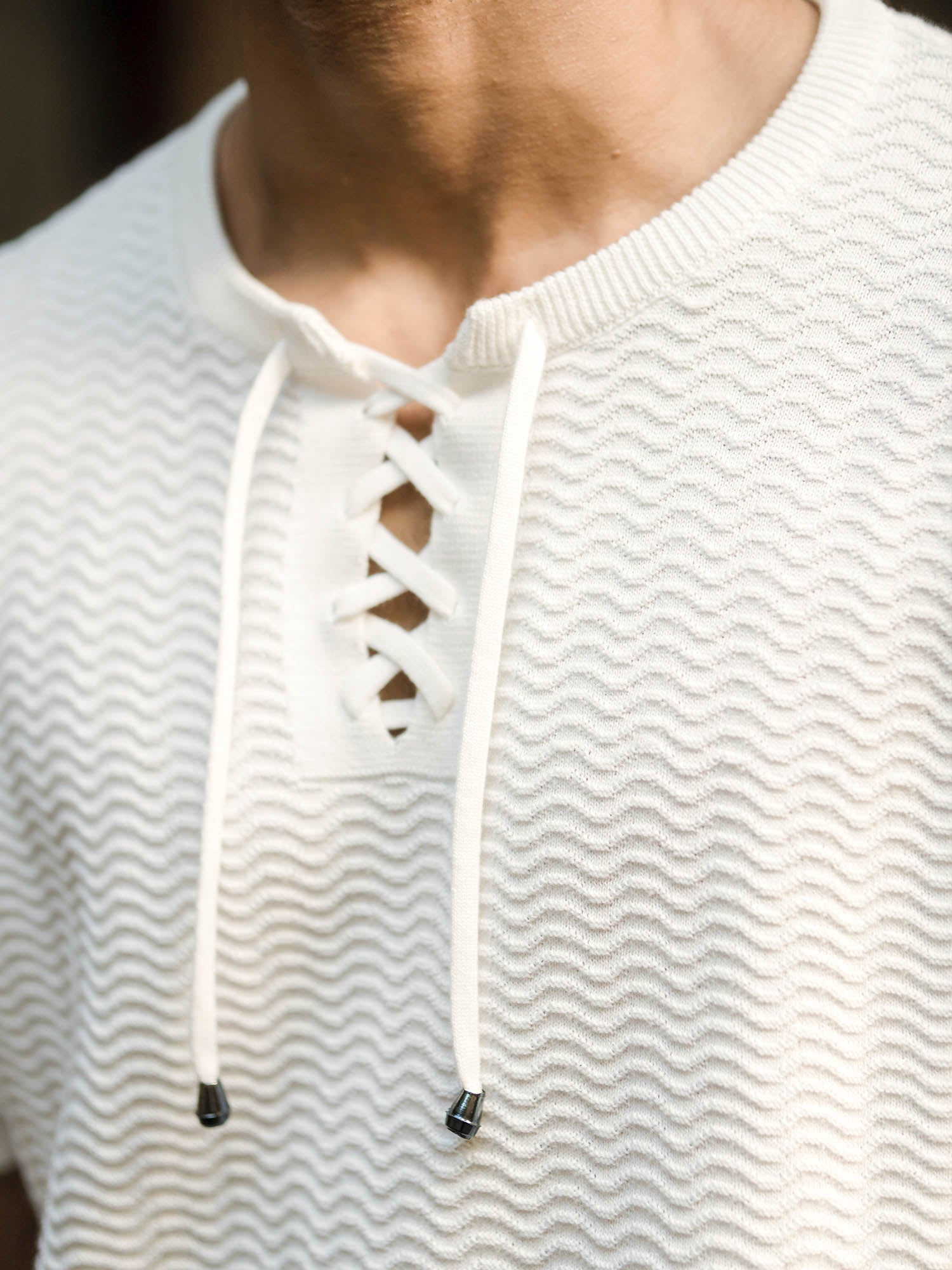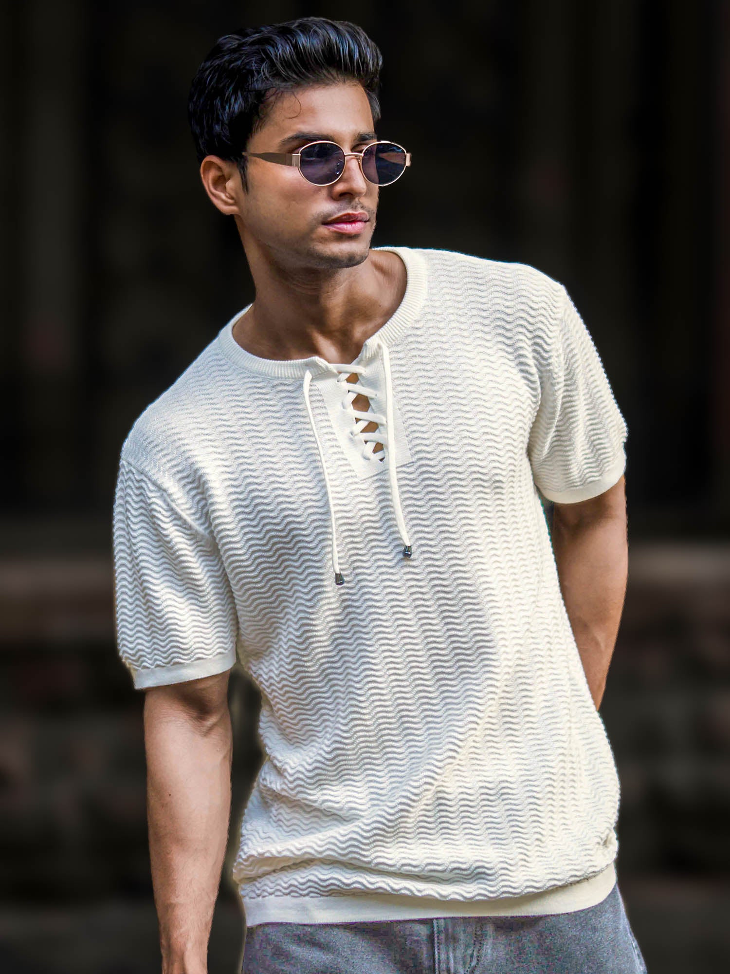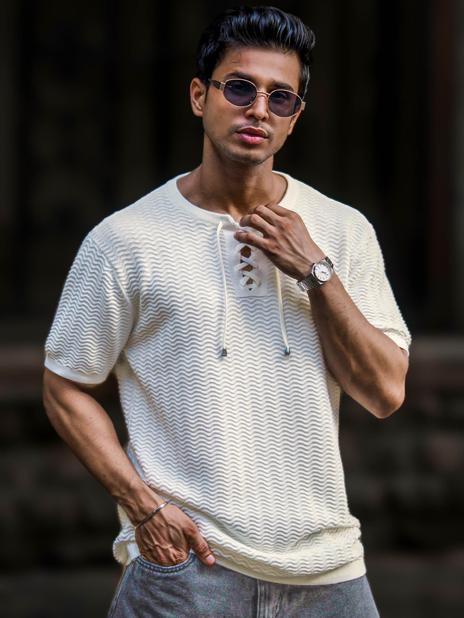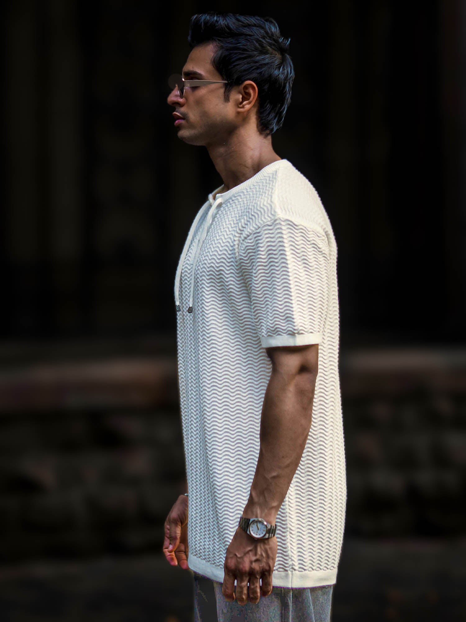 Curlwave Half White Henley Half Sleeve T-Shirt