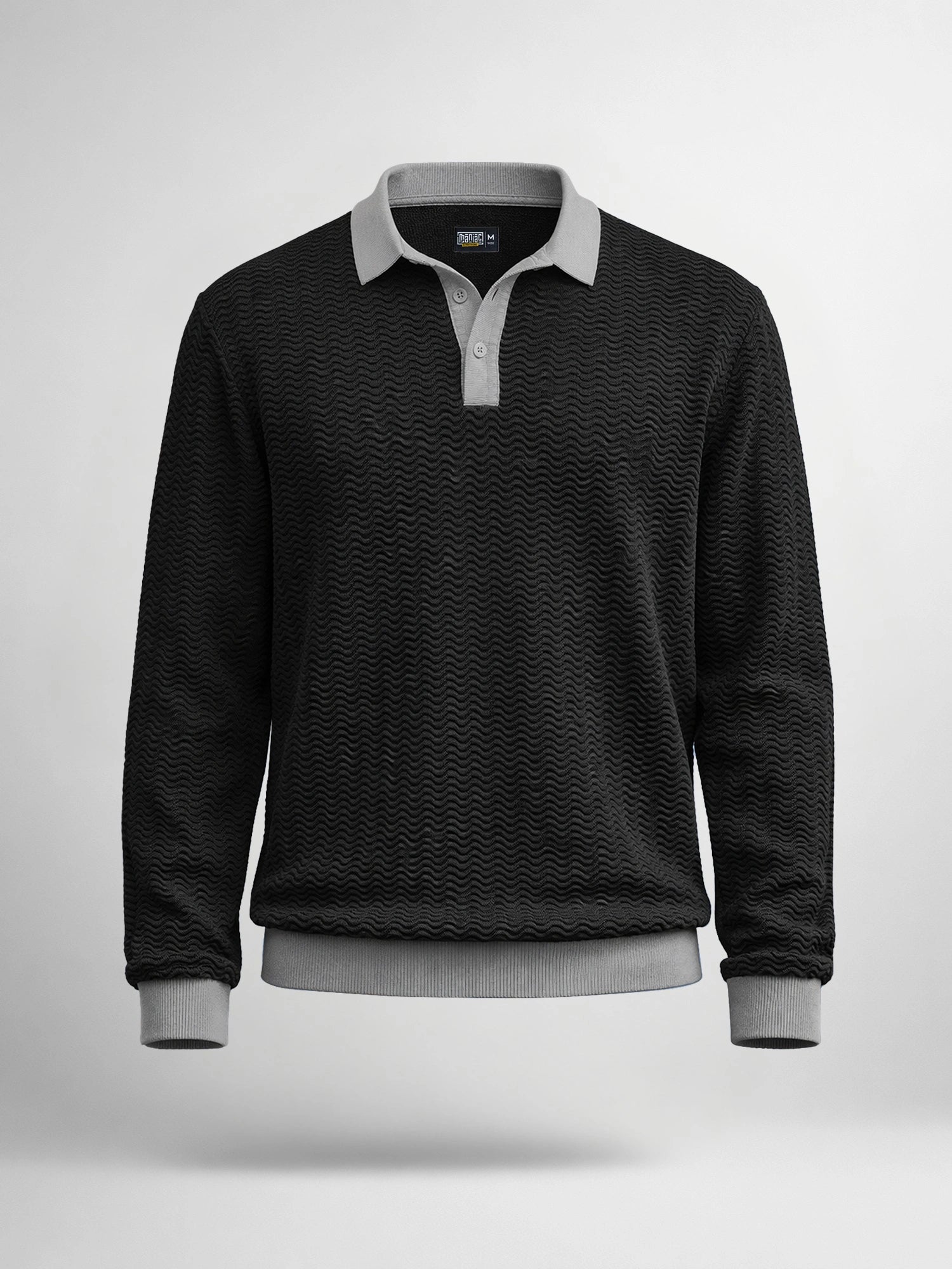 FlatKnit Wave Black Full Sleeve Polo T-Shirt