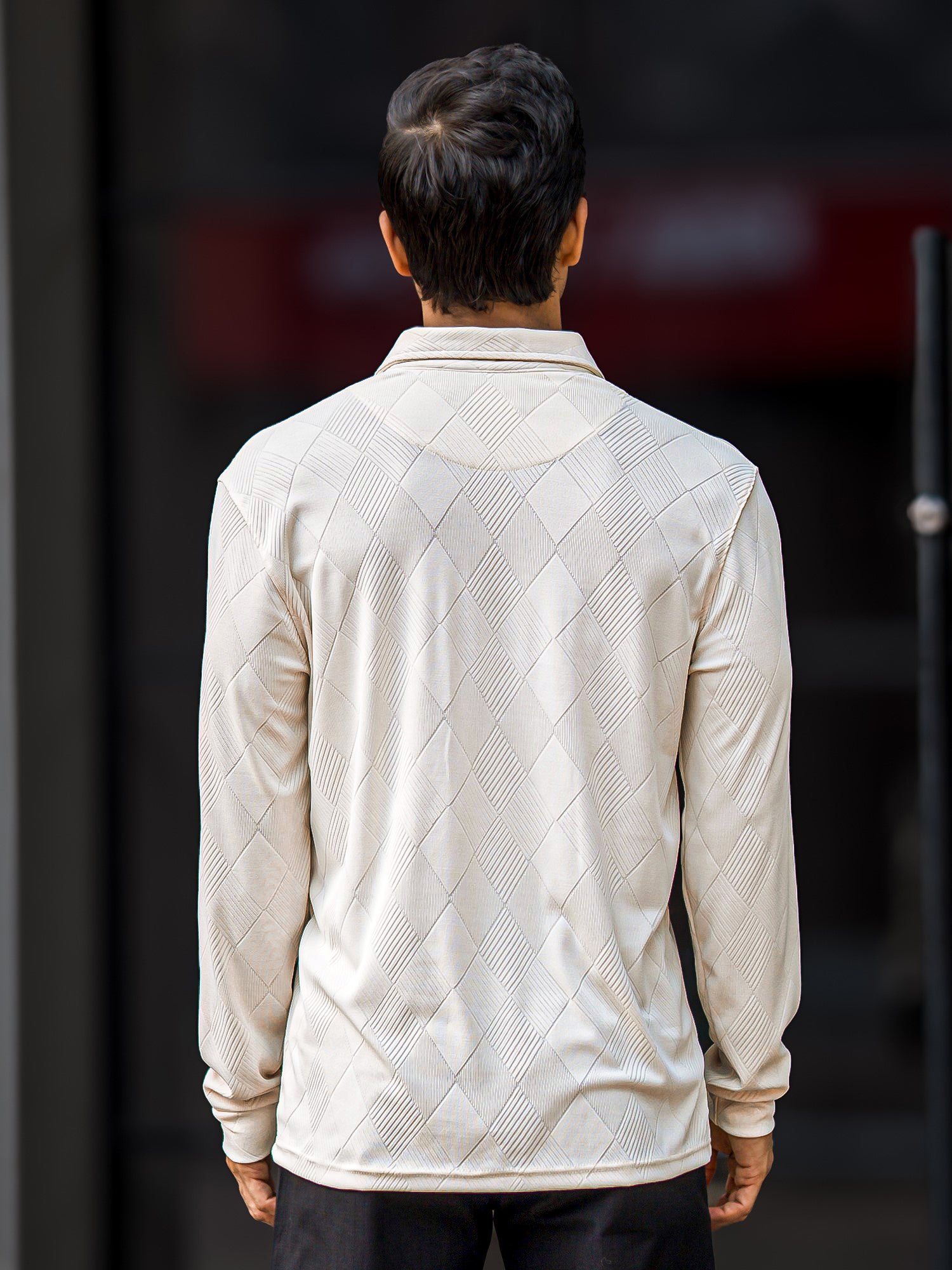 Rhombus Cream Full Sleeve Polo T-Shirt