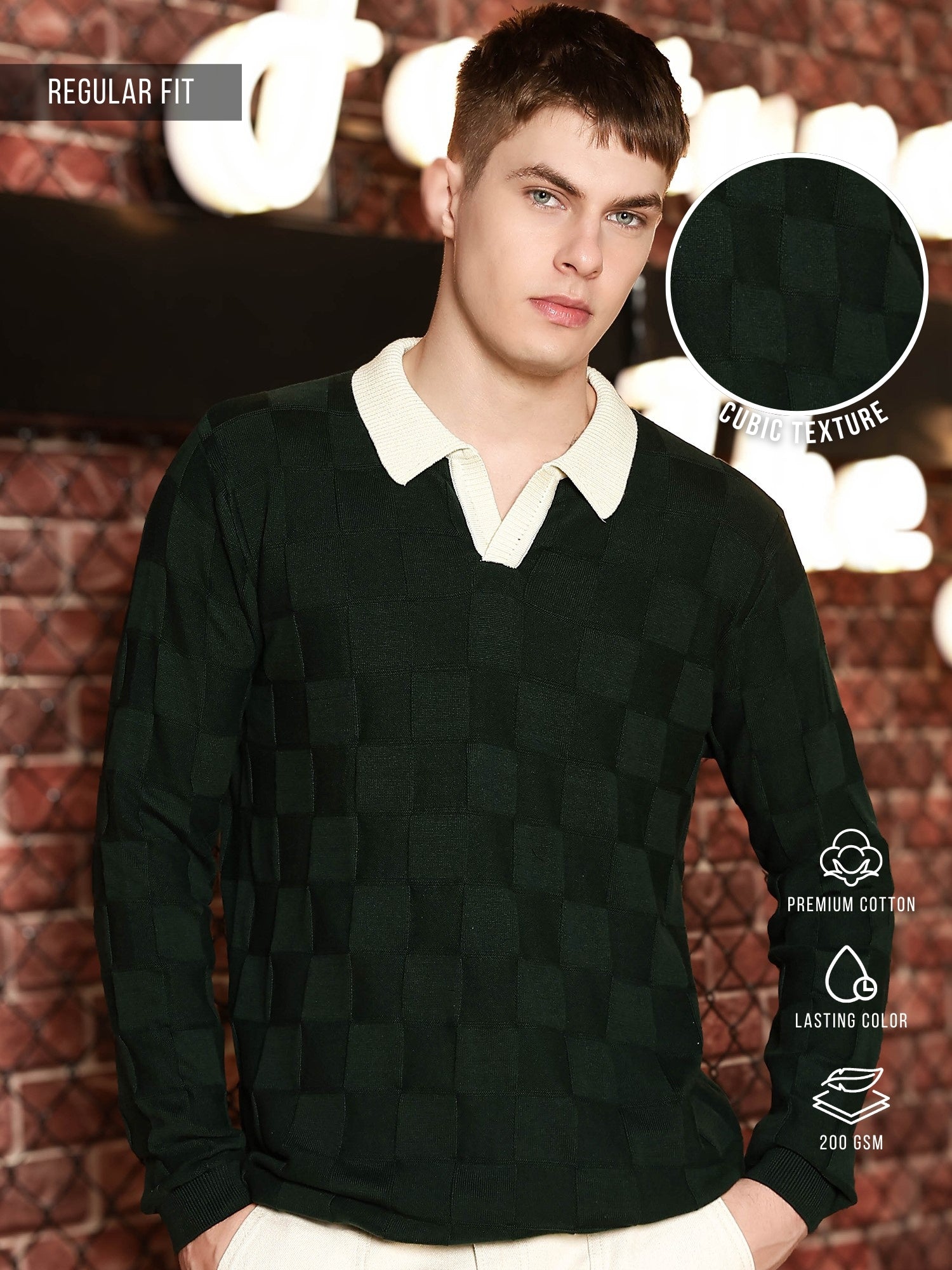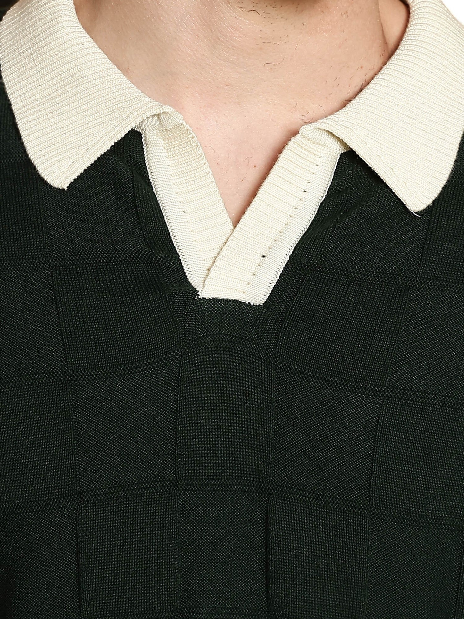 Cubic Knit Dark Green Full Sleeve Polo T-Shirt