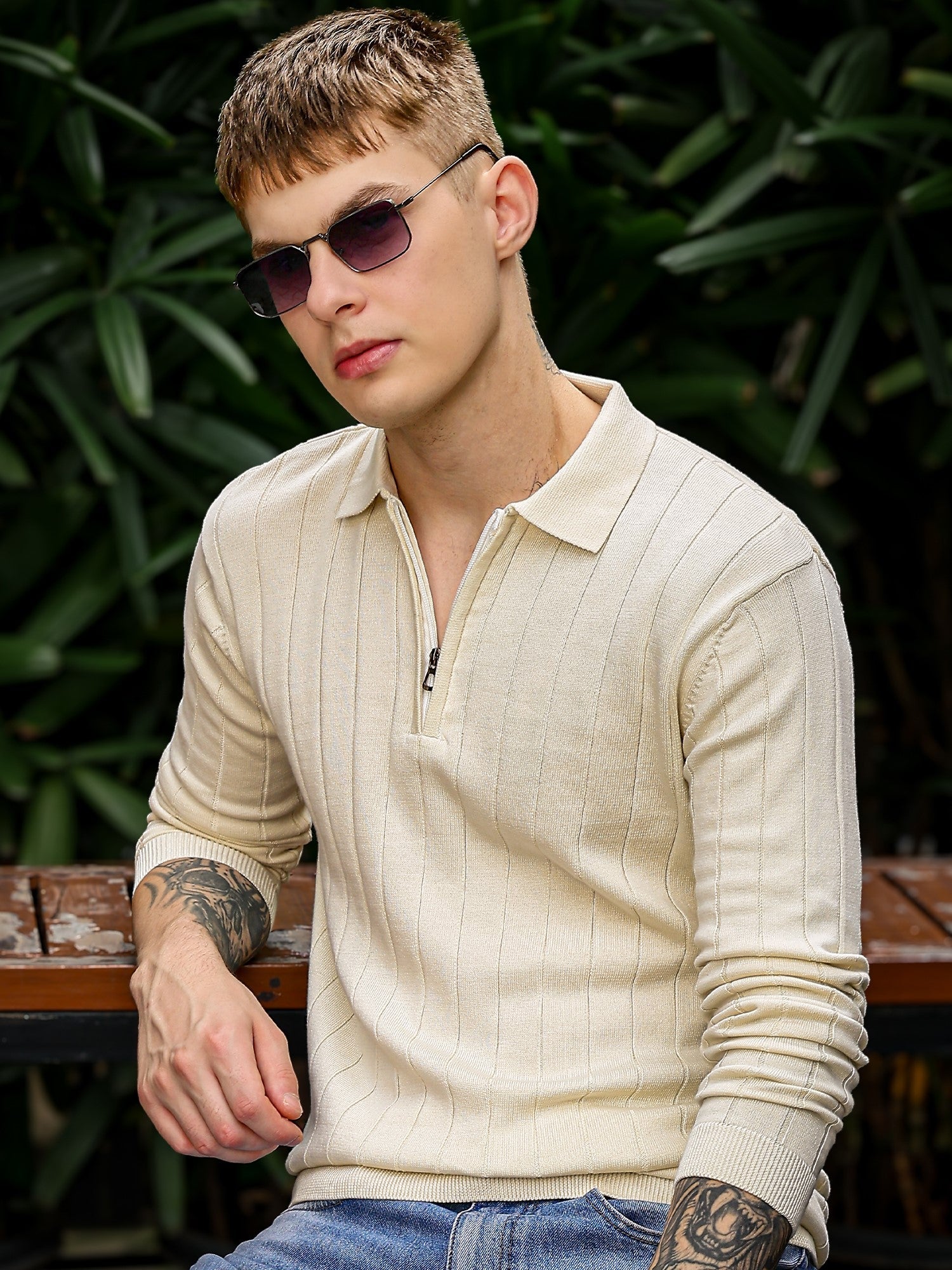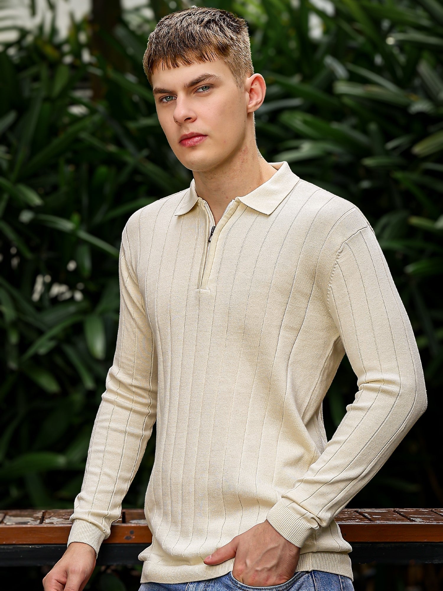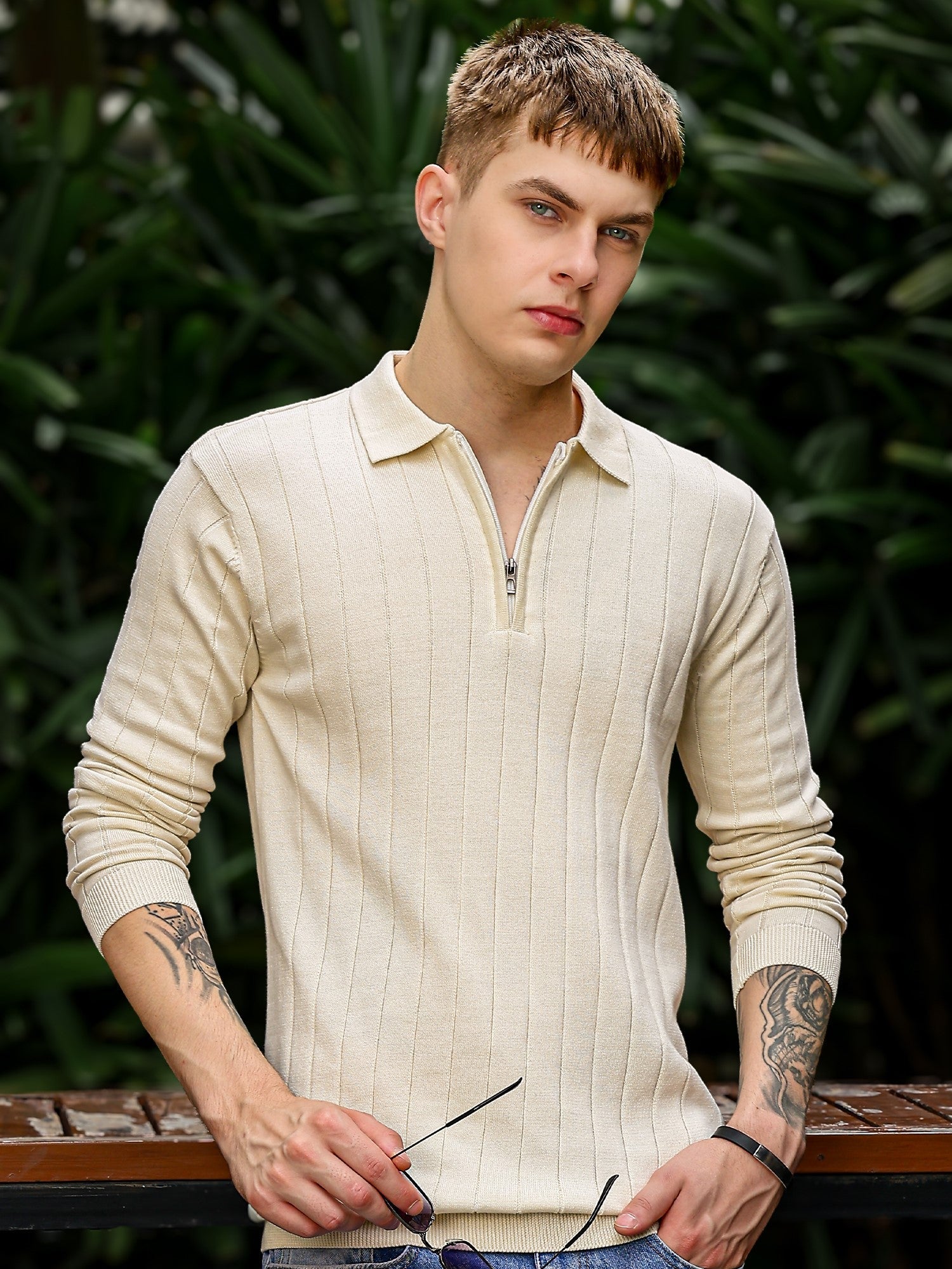 Brooklyn FlatKnit Cream Full Sleeve Polo T-Shirt