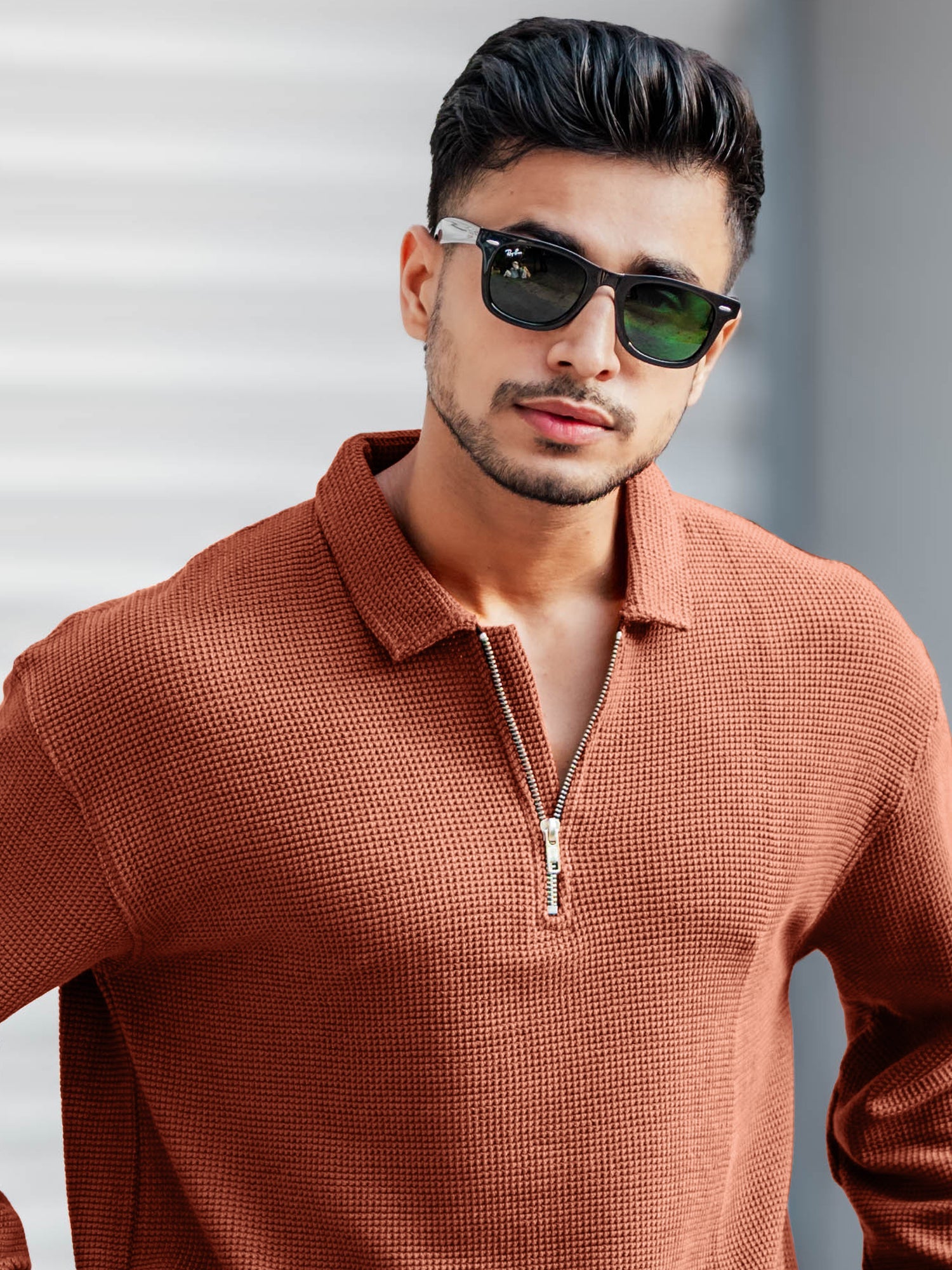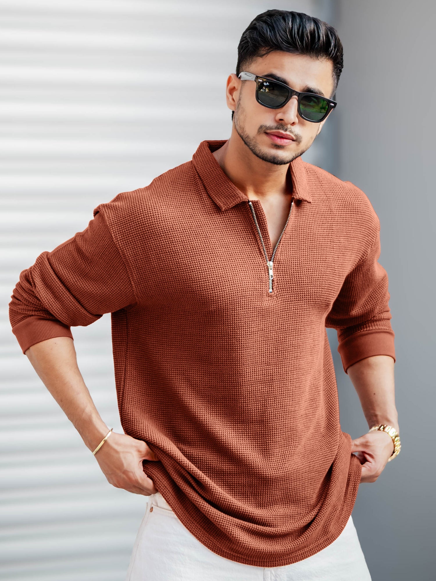Umbrella Rust Full Sleeve Polo T-Shirt