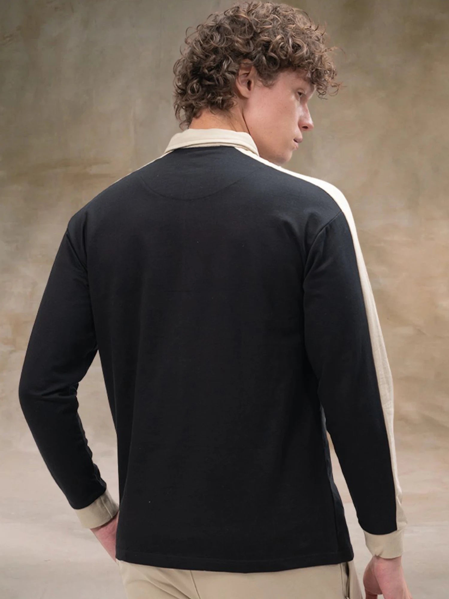 Sleeve CutPanel Black Full Sleeve Polo T-Shirt