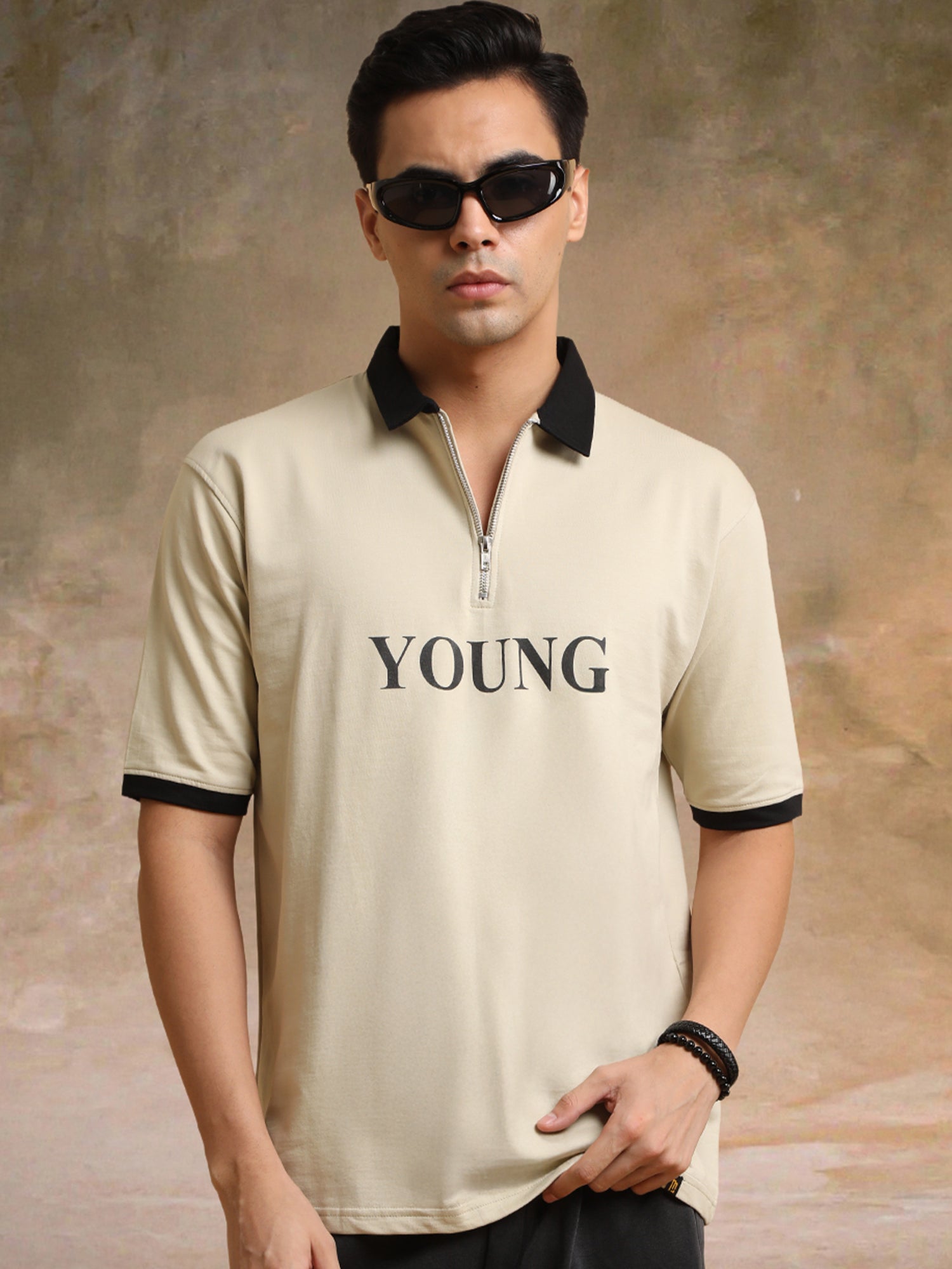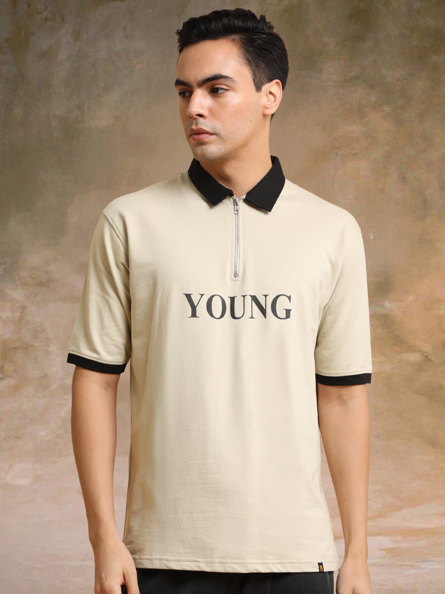 Young Biscuit Half Zipper Polo Half Sleeve T-Shirt