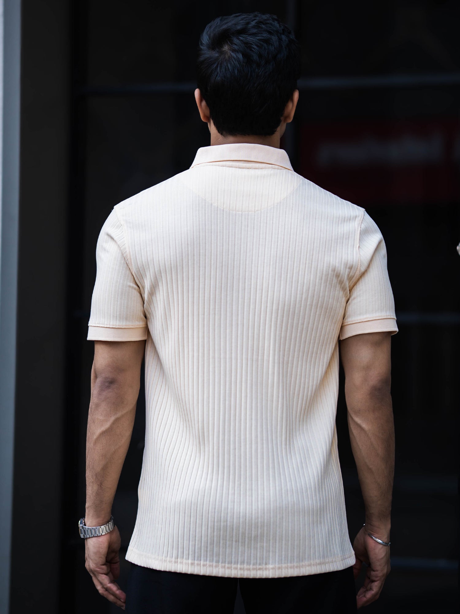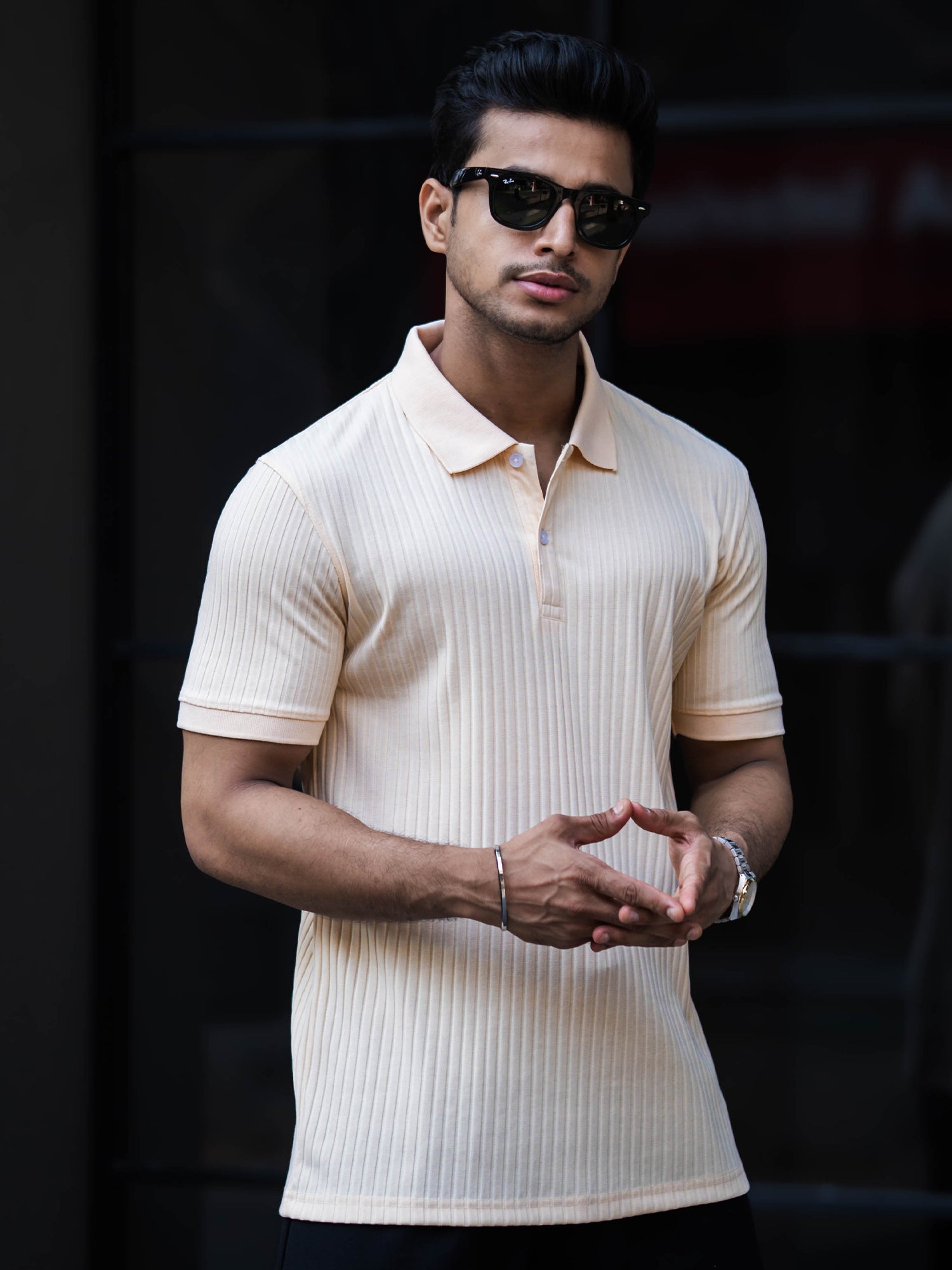 Drop Knit Cream Polo Half Sleeve T-Shirt