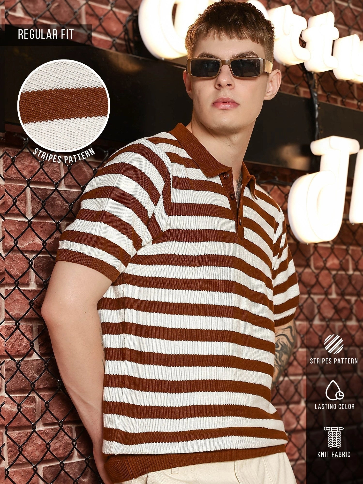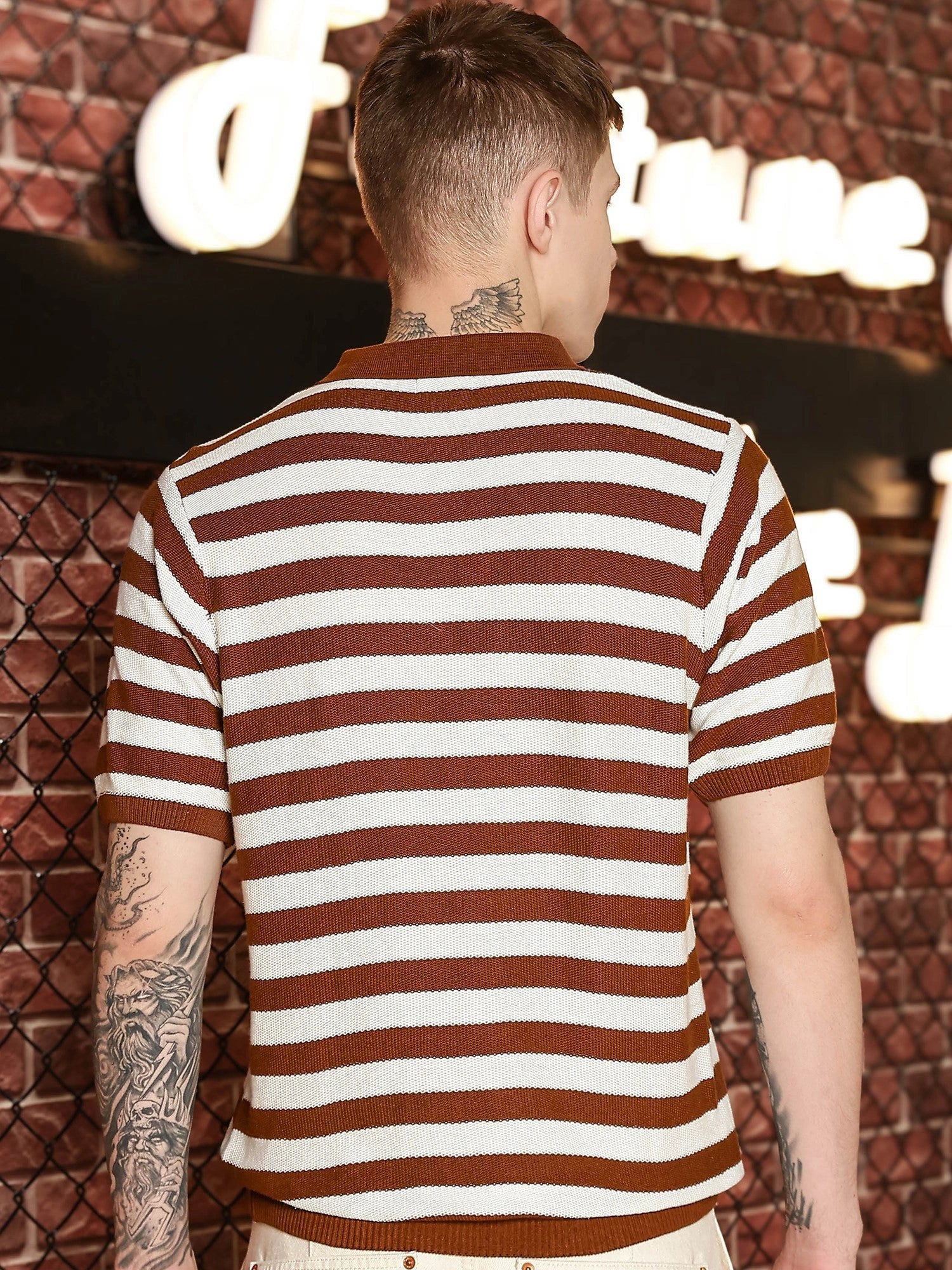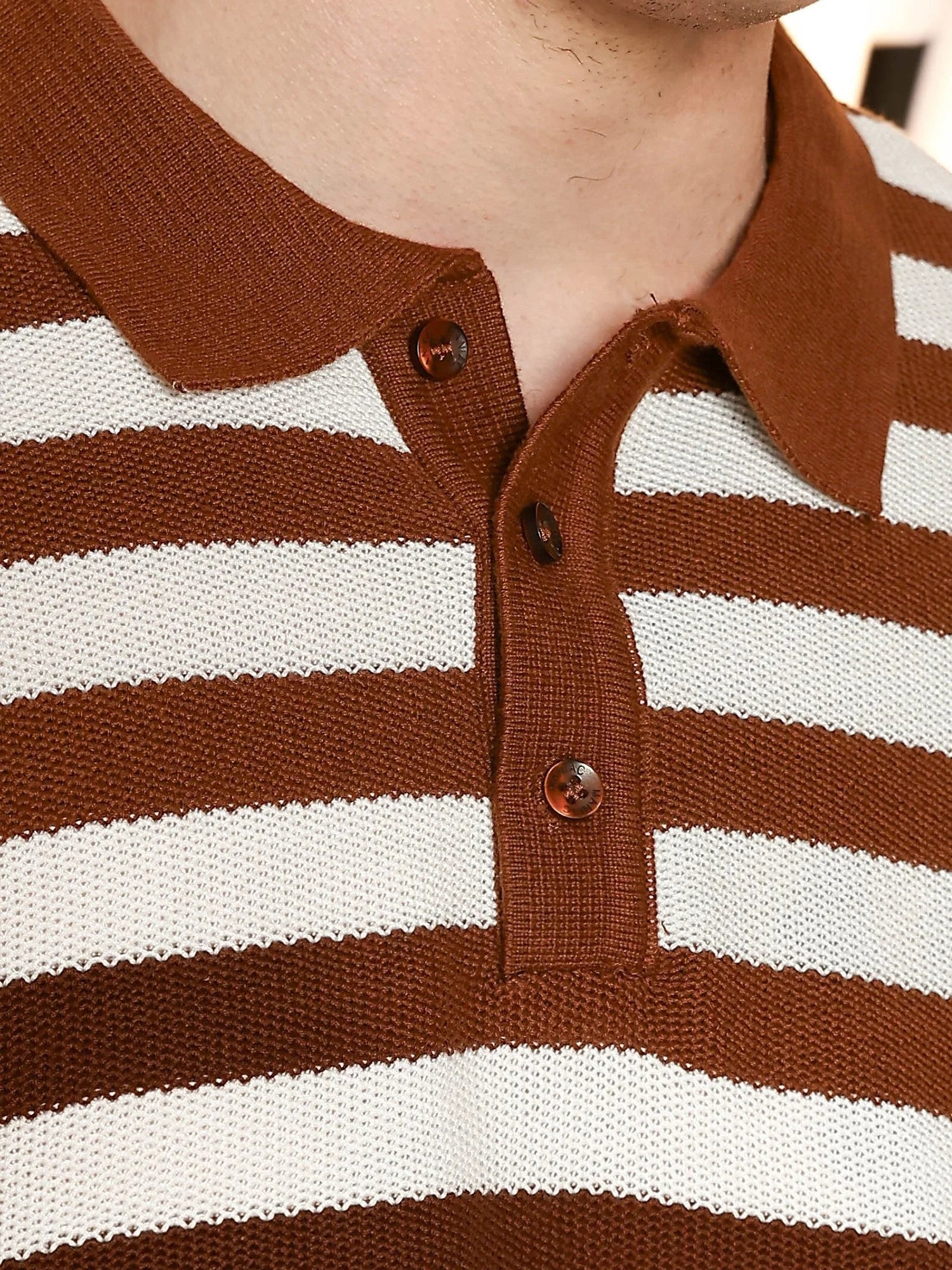 Retro Stripe Brown Half Sleeve Polo T-Shirt