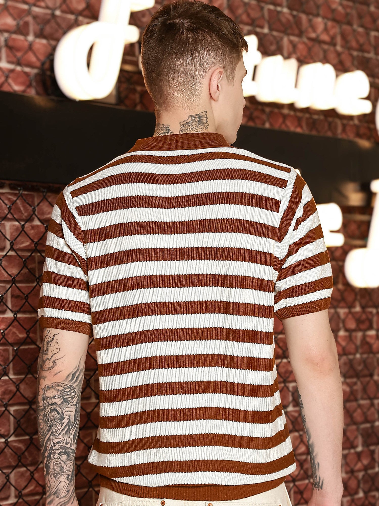 Retro Stripe Brown FlatKnit Half Sleeve Polo T-Shirt