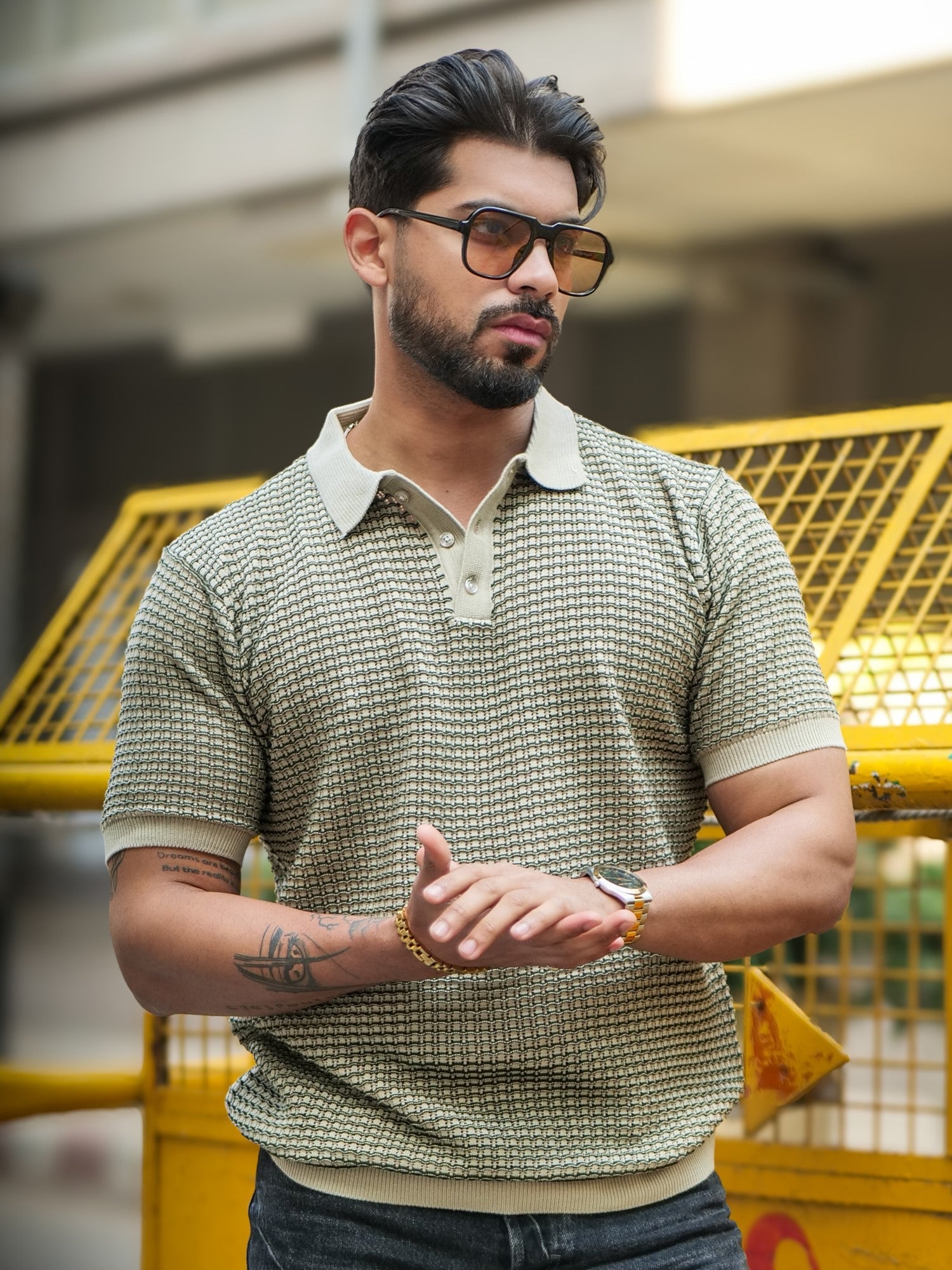Gridlocked Flatknit Green Half Sleeve T-Shirt