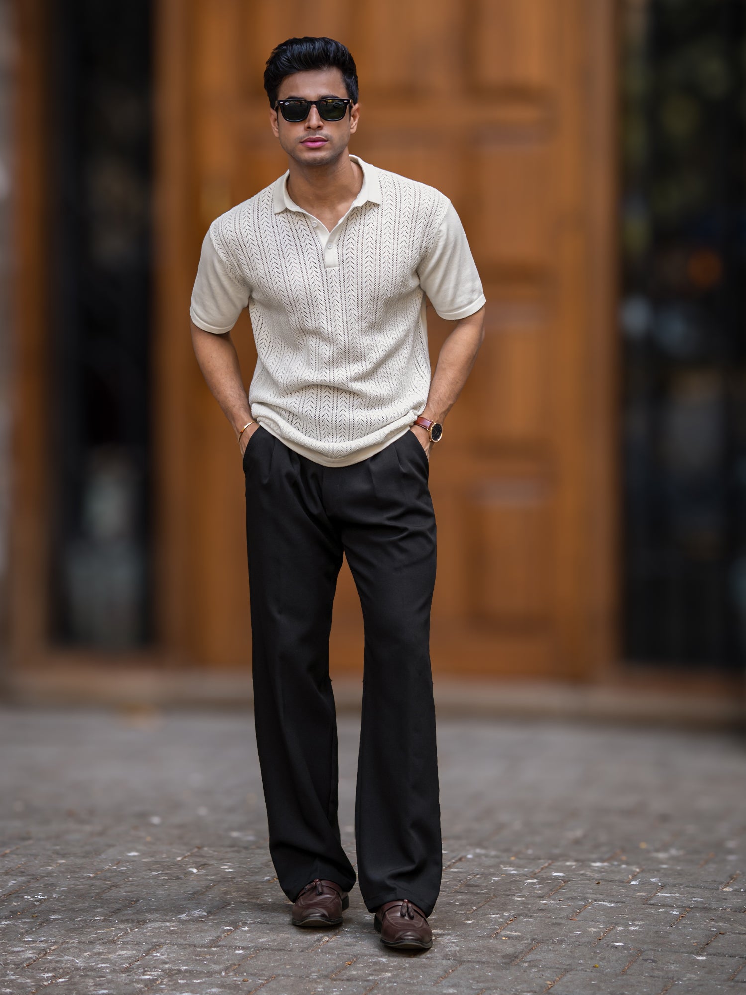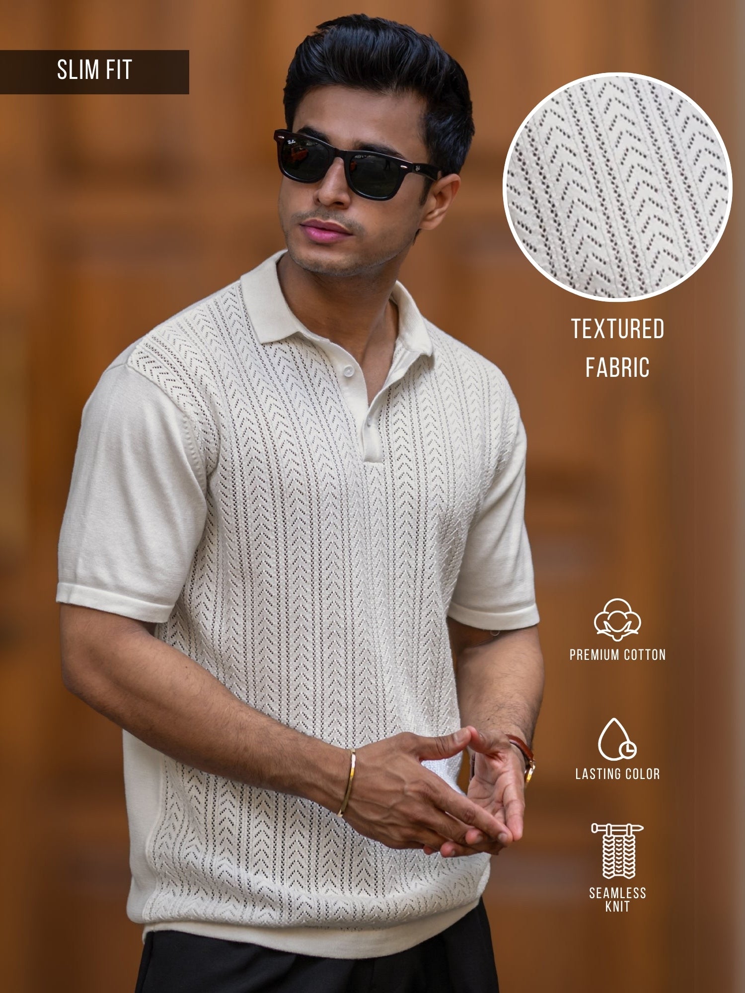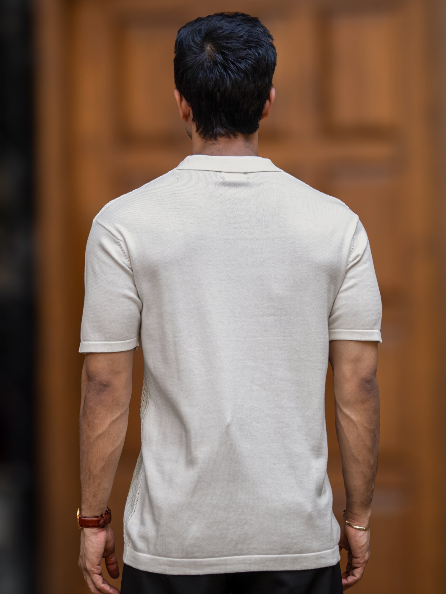 Arrow Knit Off White Half Sleeve Polo T-Shirt