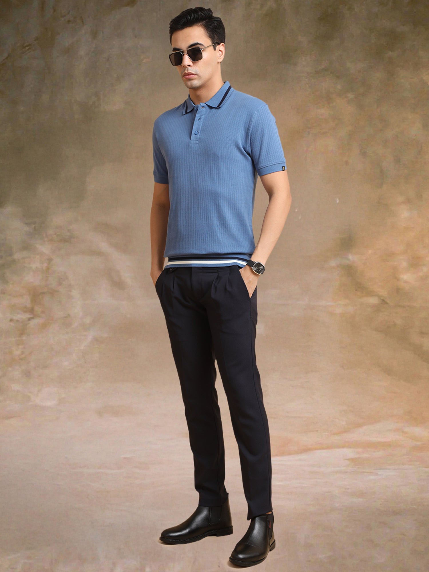 Pointel Half Button Denim Blue Half Sleeve Polo T-Shirt
