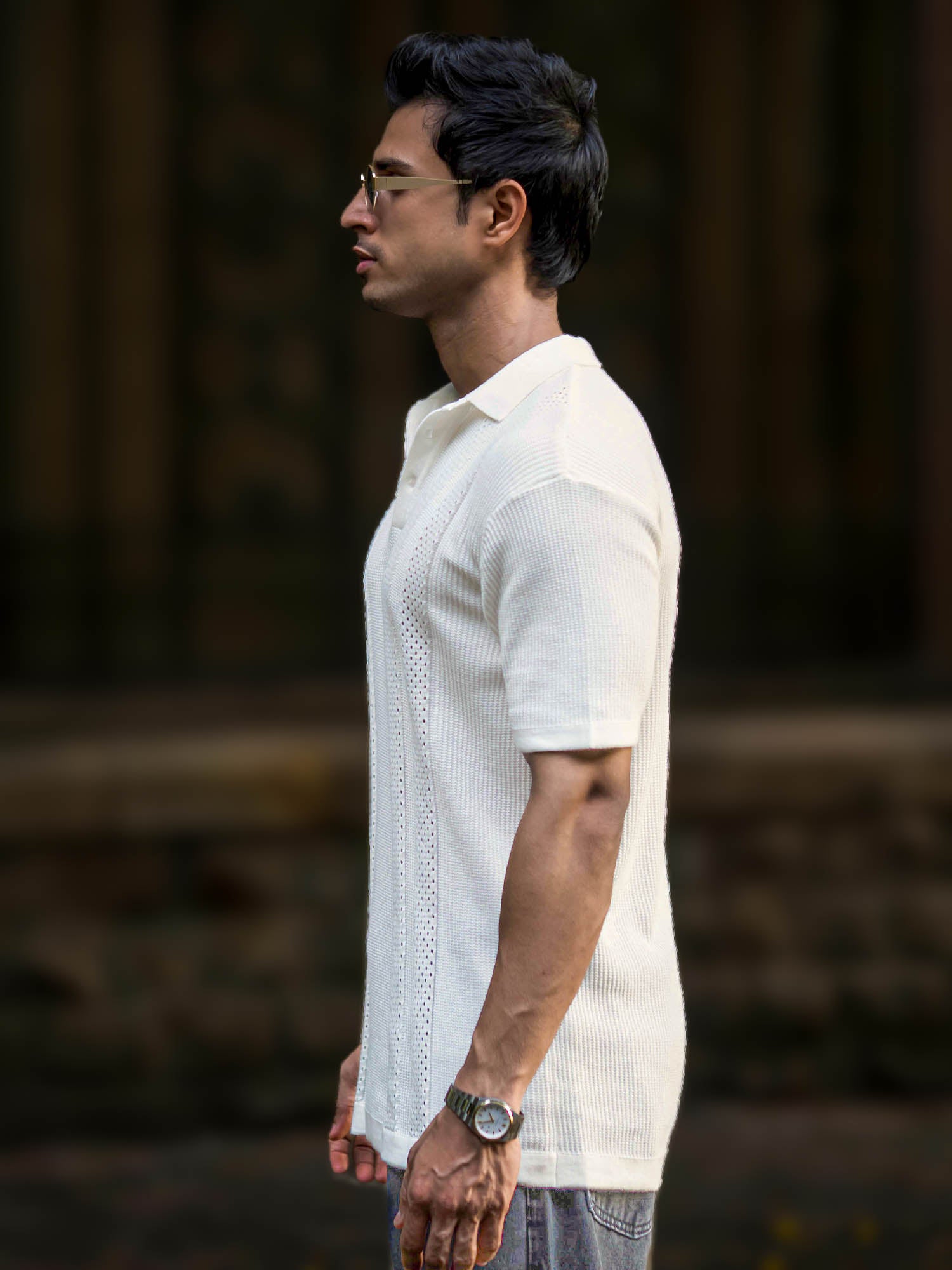 Snowpeak Half White Half Sleeve Polo T-Shirt