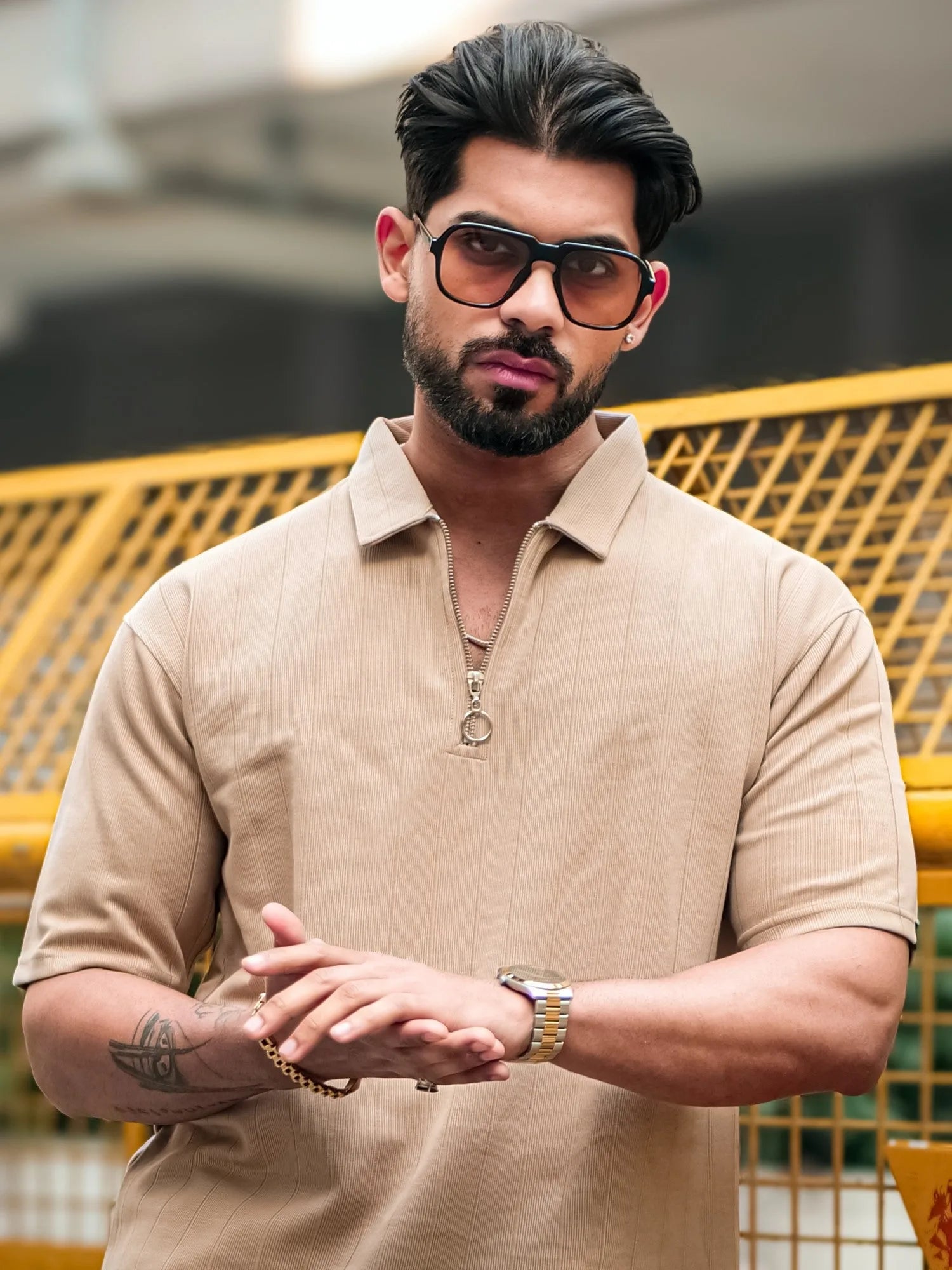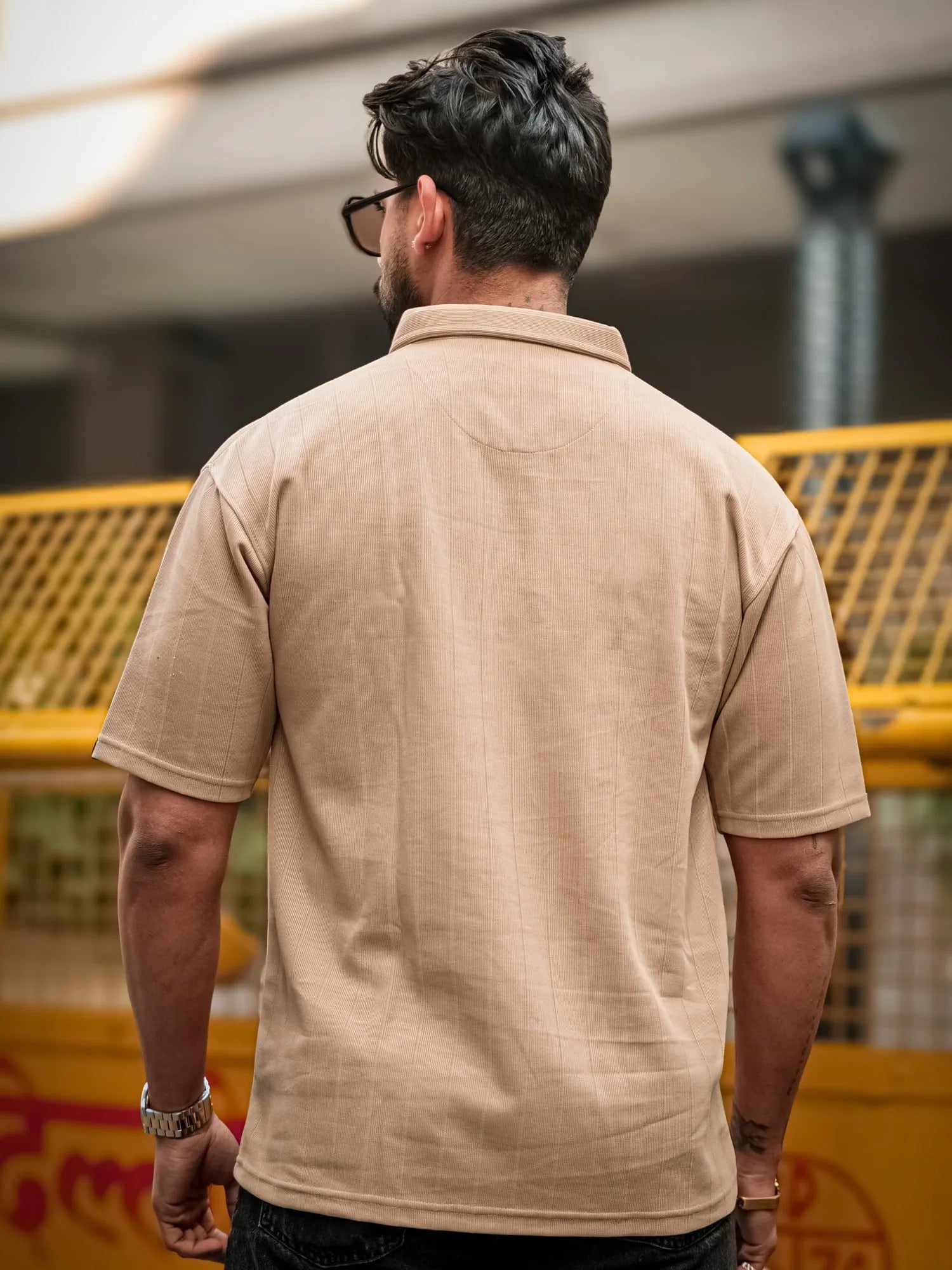 Brooklyn Half Zipper Beige Polo Half Sleeve T-Shirt