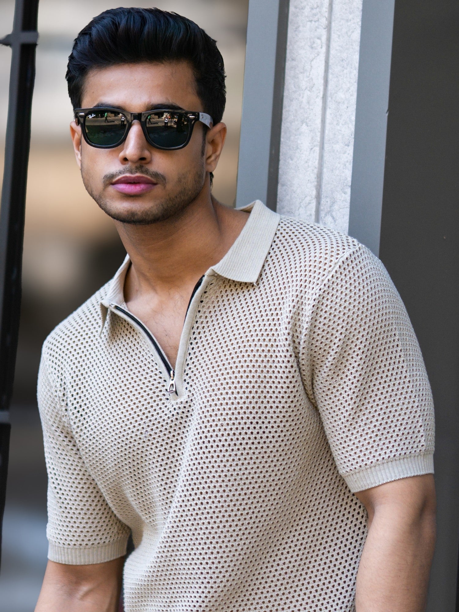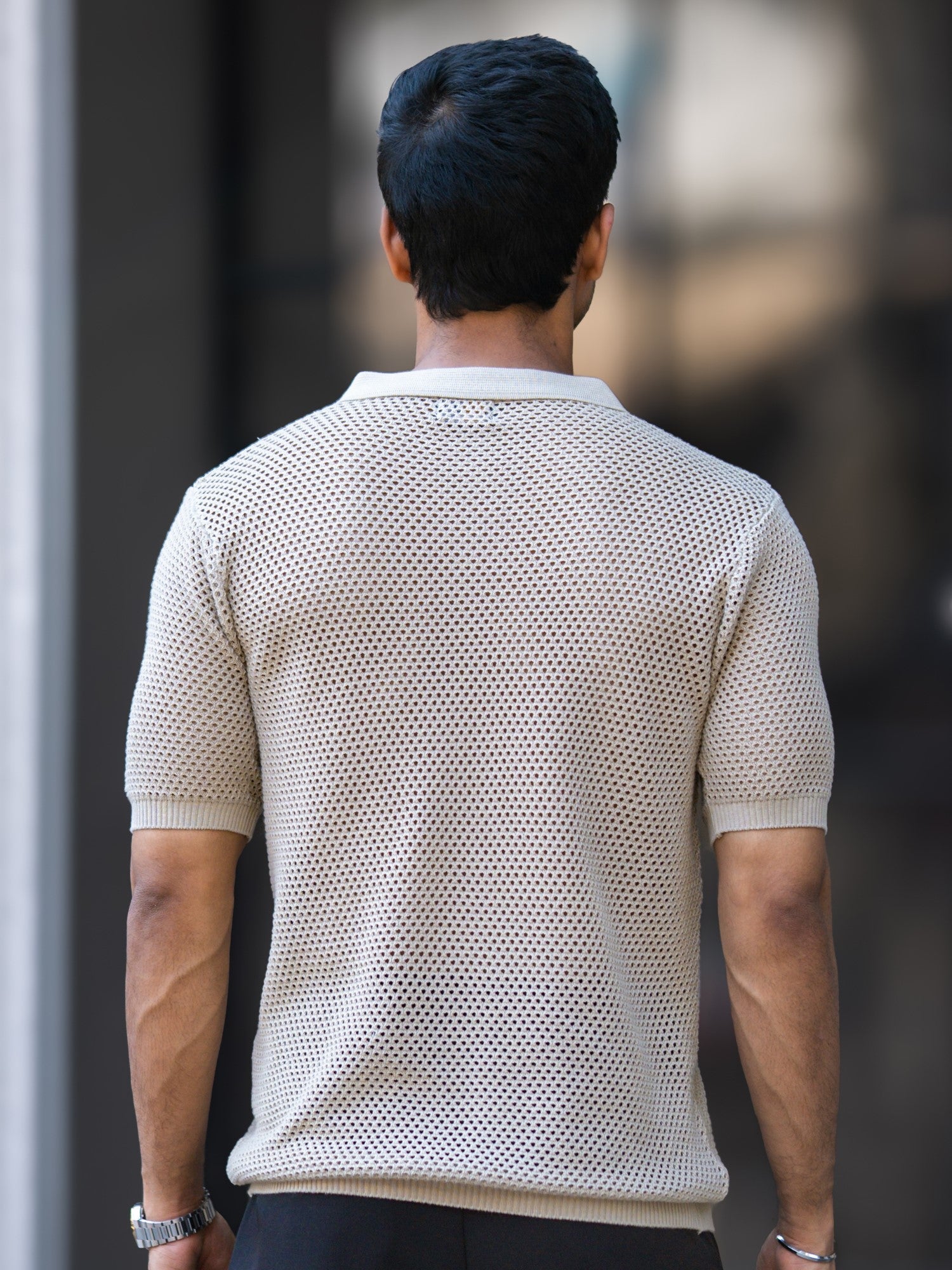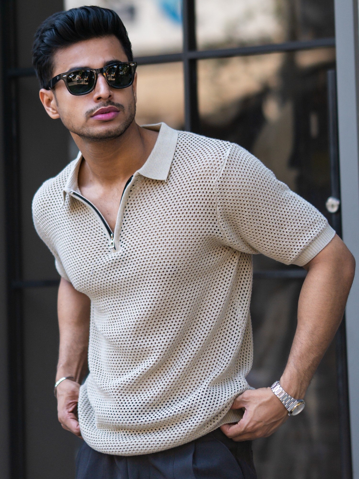 Resort Beige Flatknit Half Sleeve Polo T-Shirt