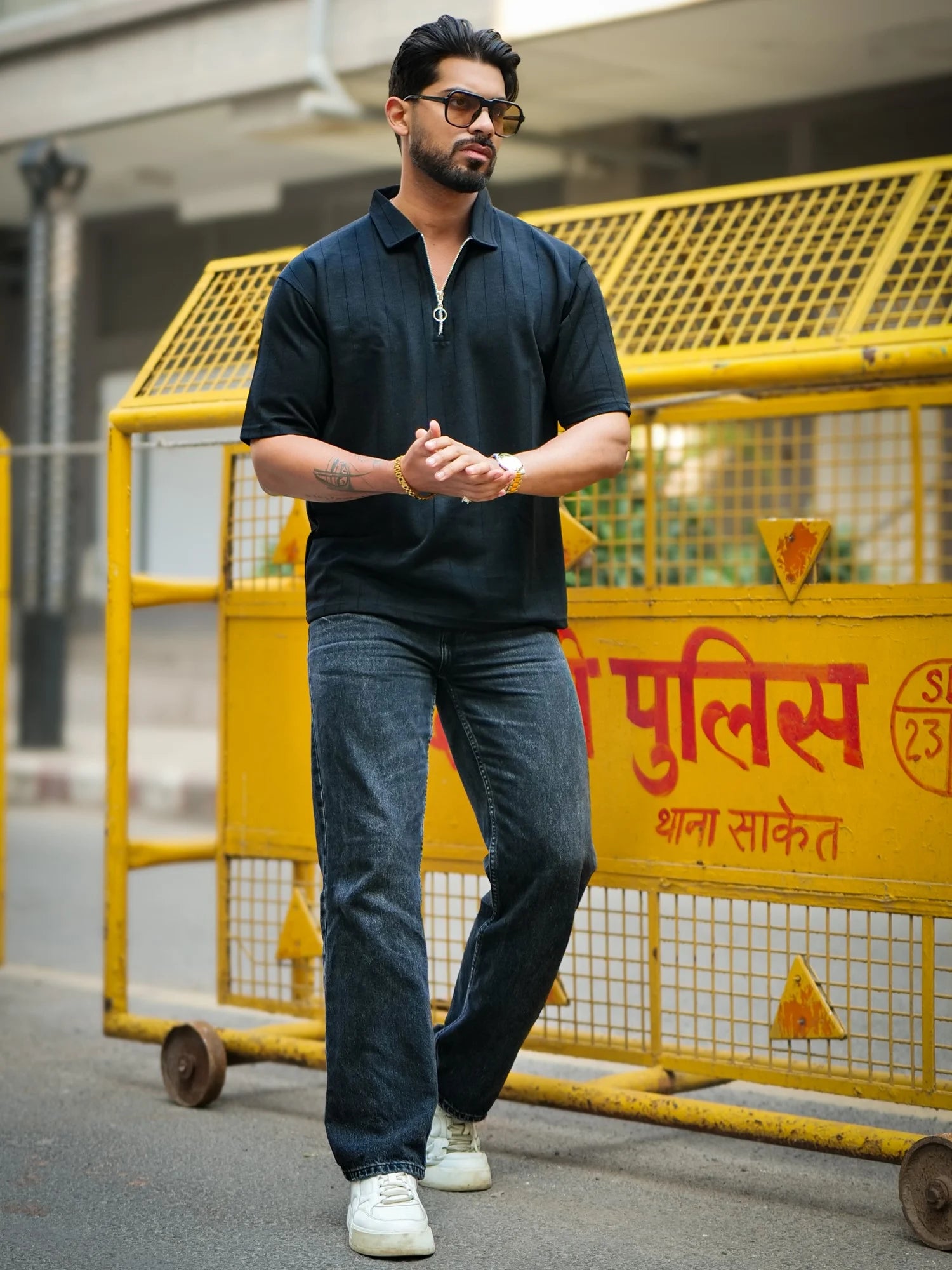 Brooklyn Half Zipper Black Polo Half Sleeve T-Shirt