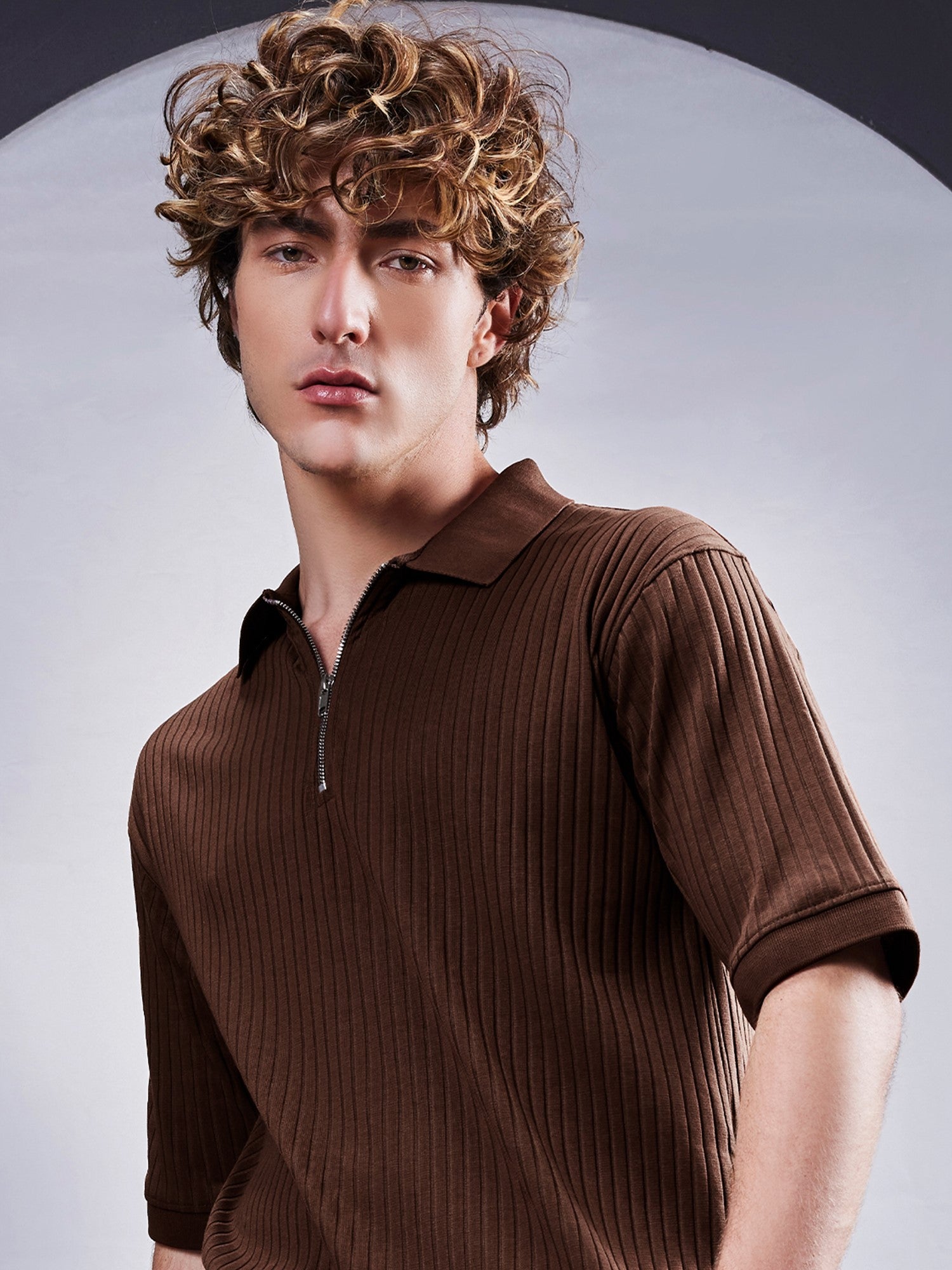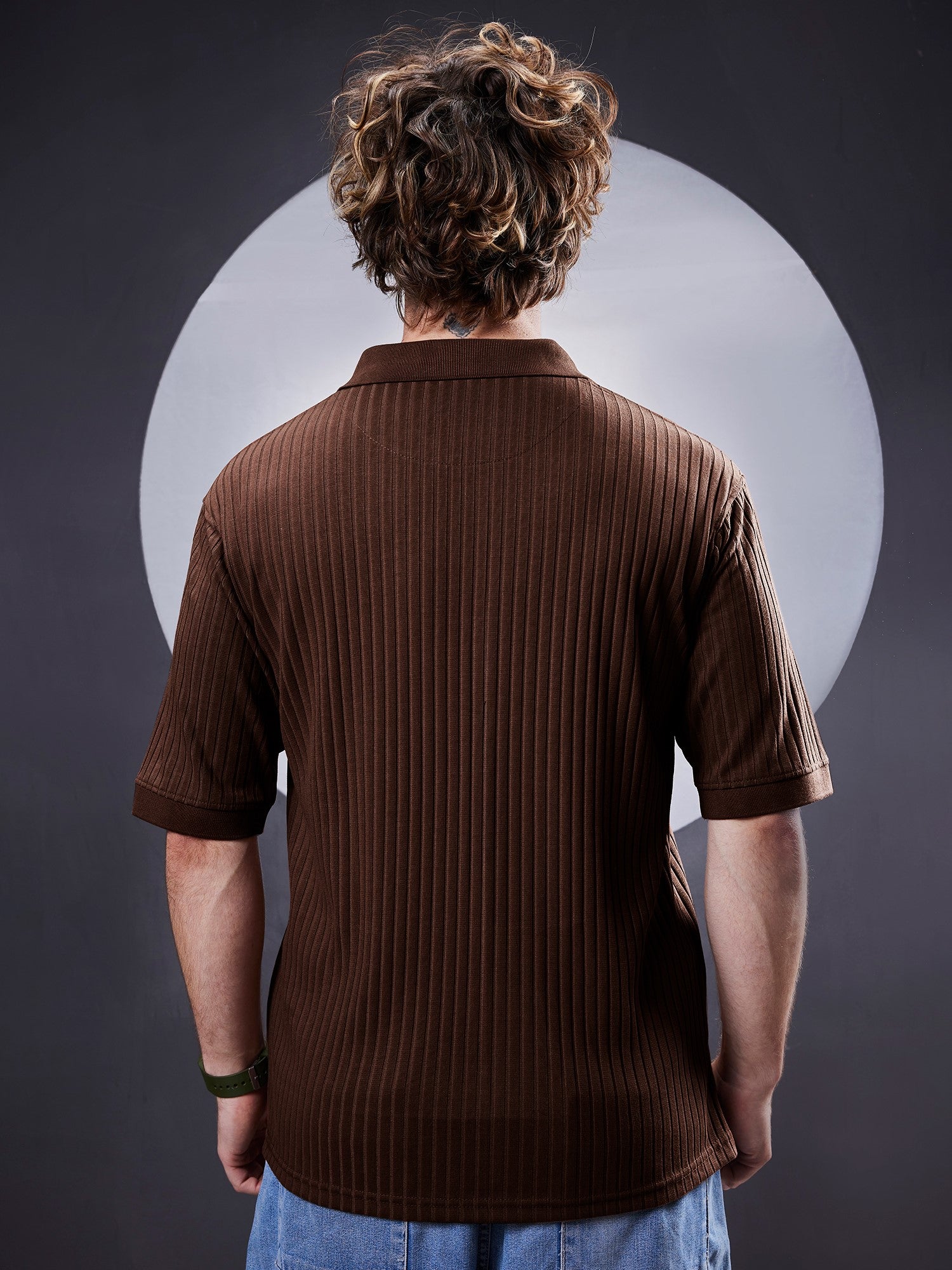 DropKnit Brown Polo Half Sleeve T-Shirt