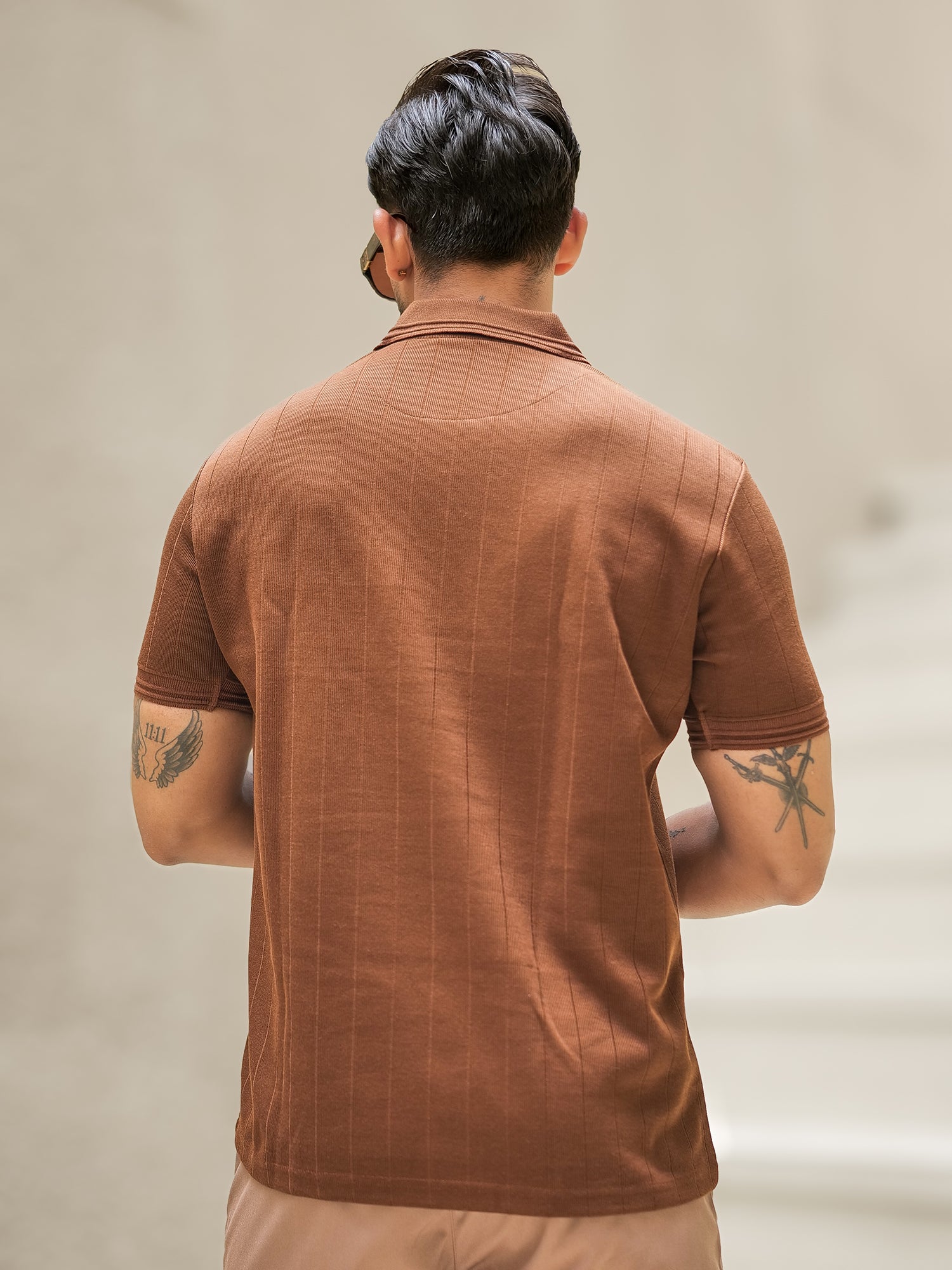 Brooklyn Shoulder Panel Brown Half Sleeve Polo T-Shirt
