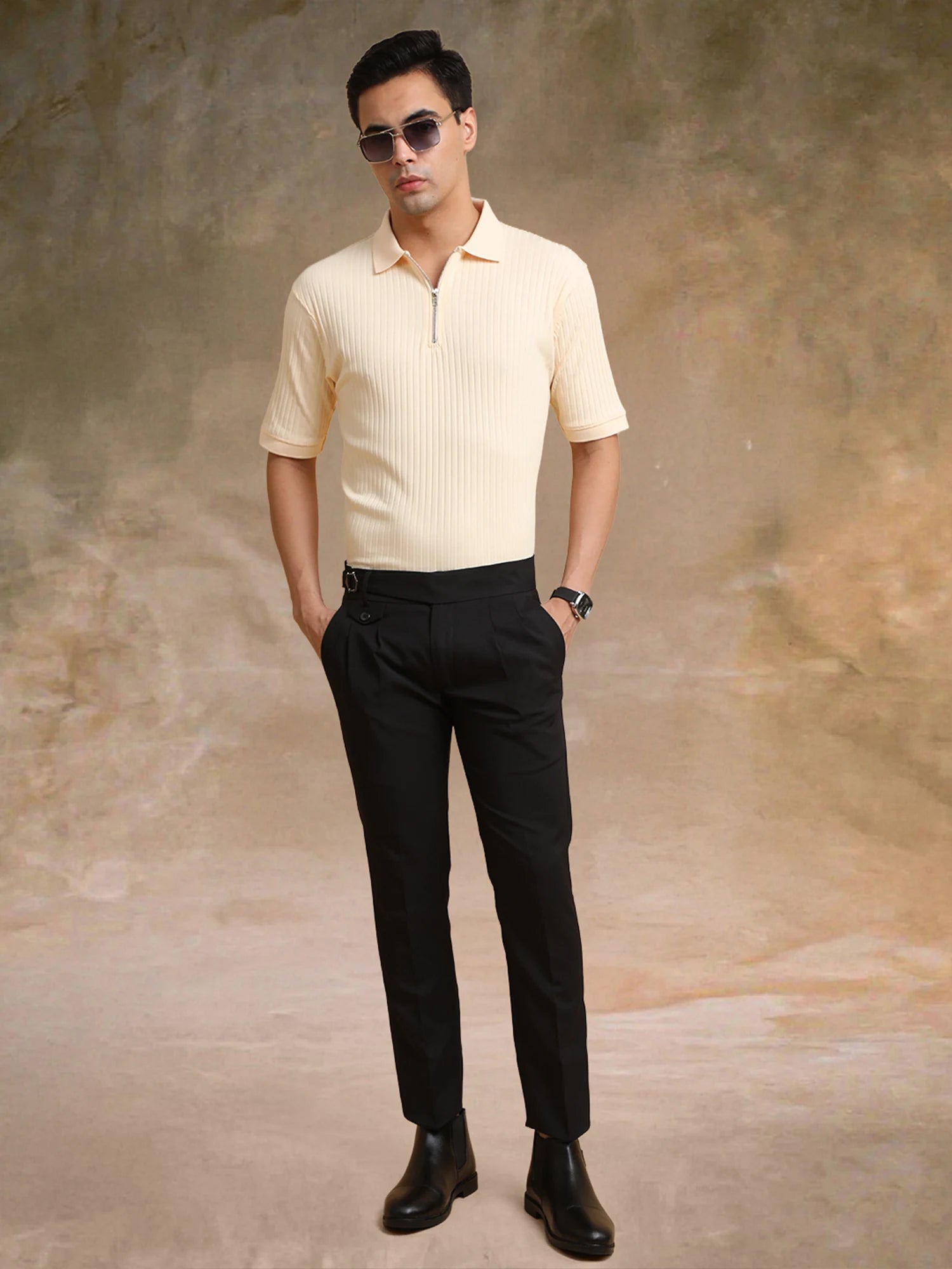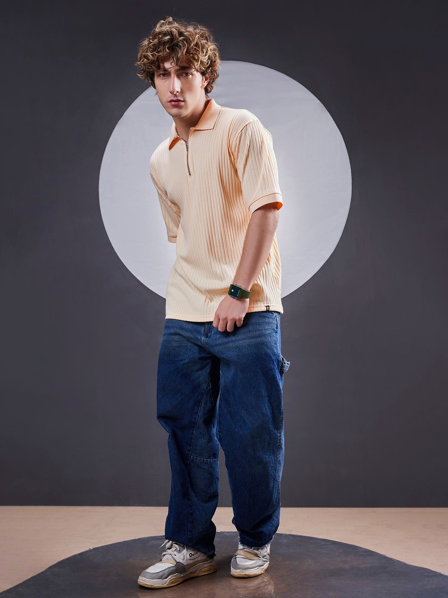 DropKnit Cream Polo Zipper Half Sleeve T-Shirt