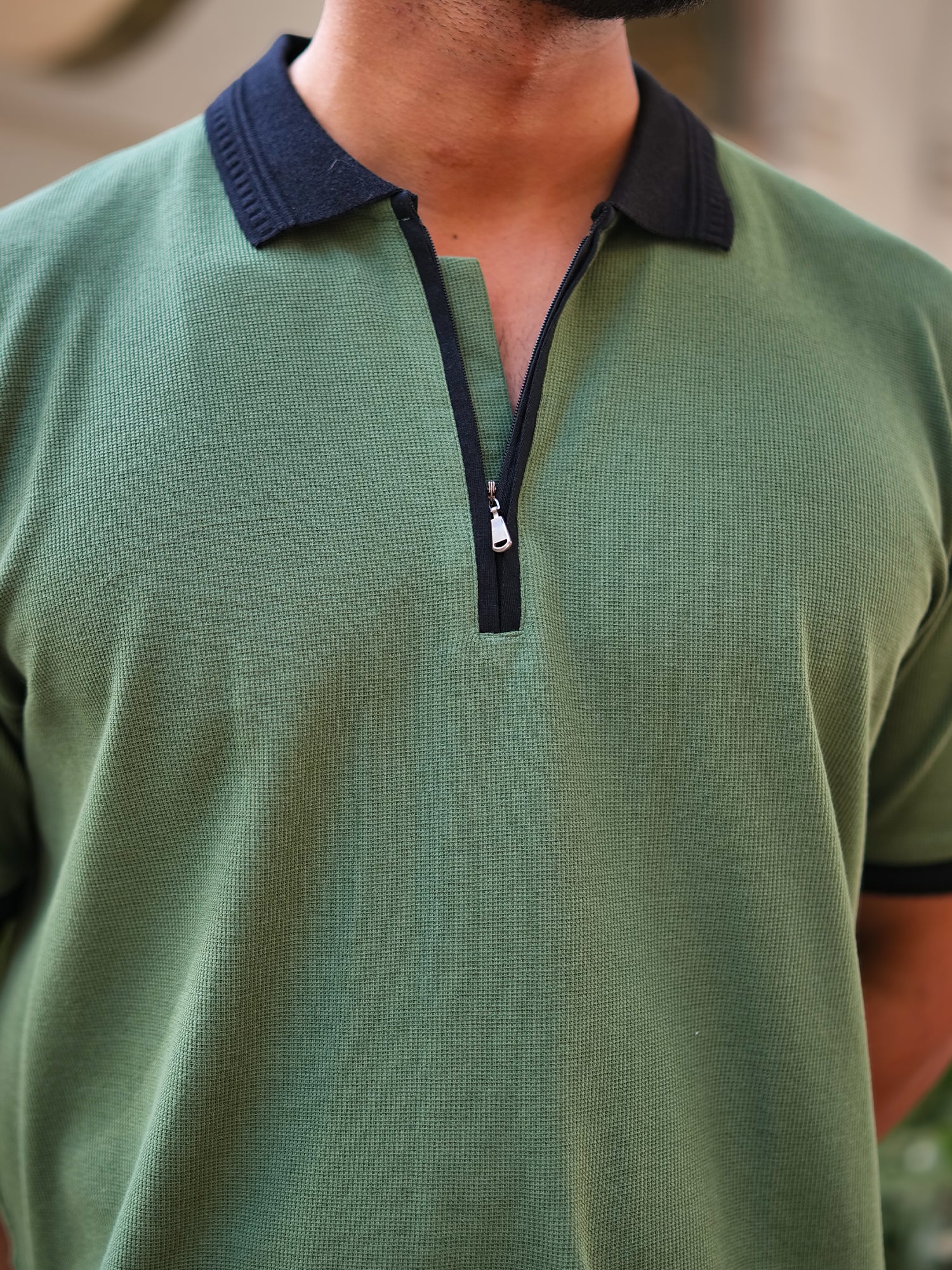 Waffle Textured Hunter Green Half Sleeve Tshirt