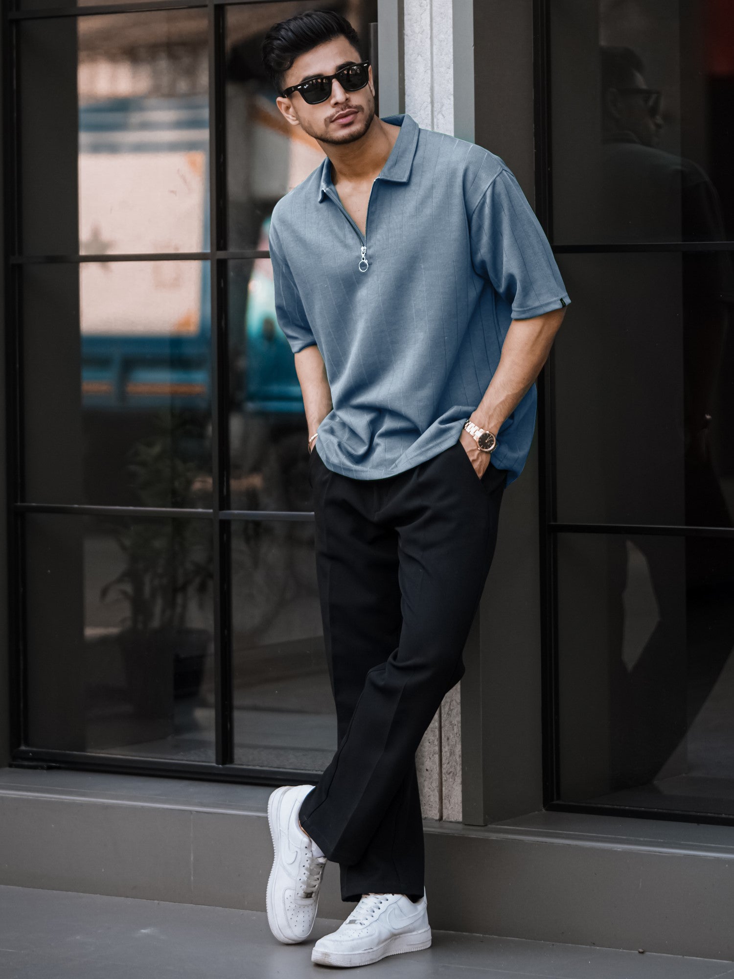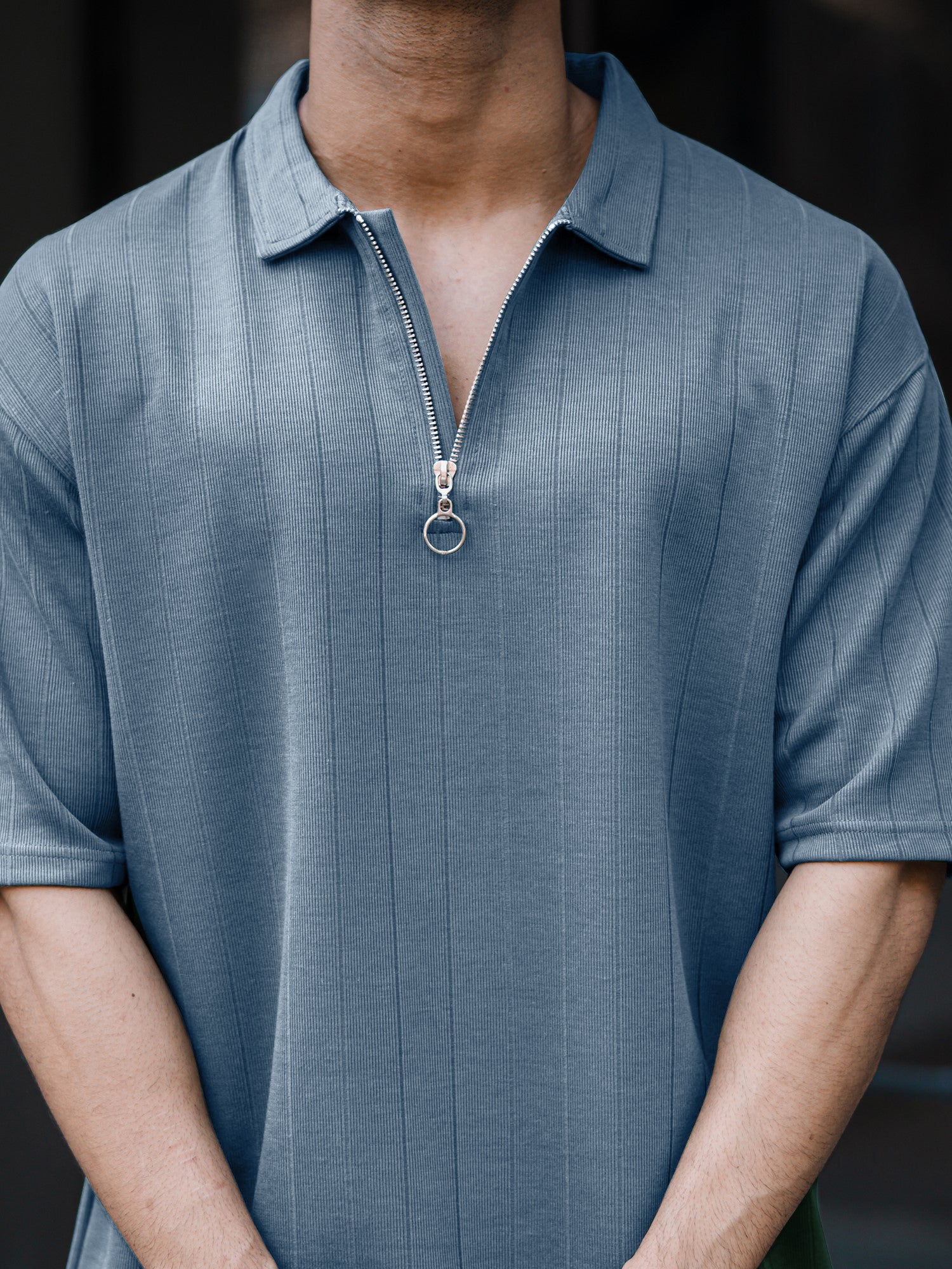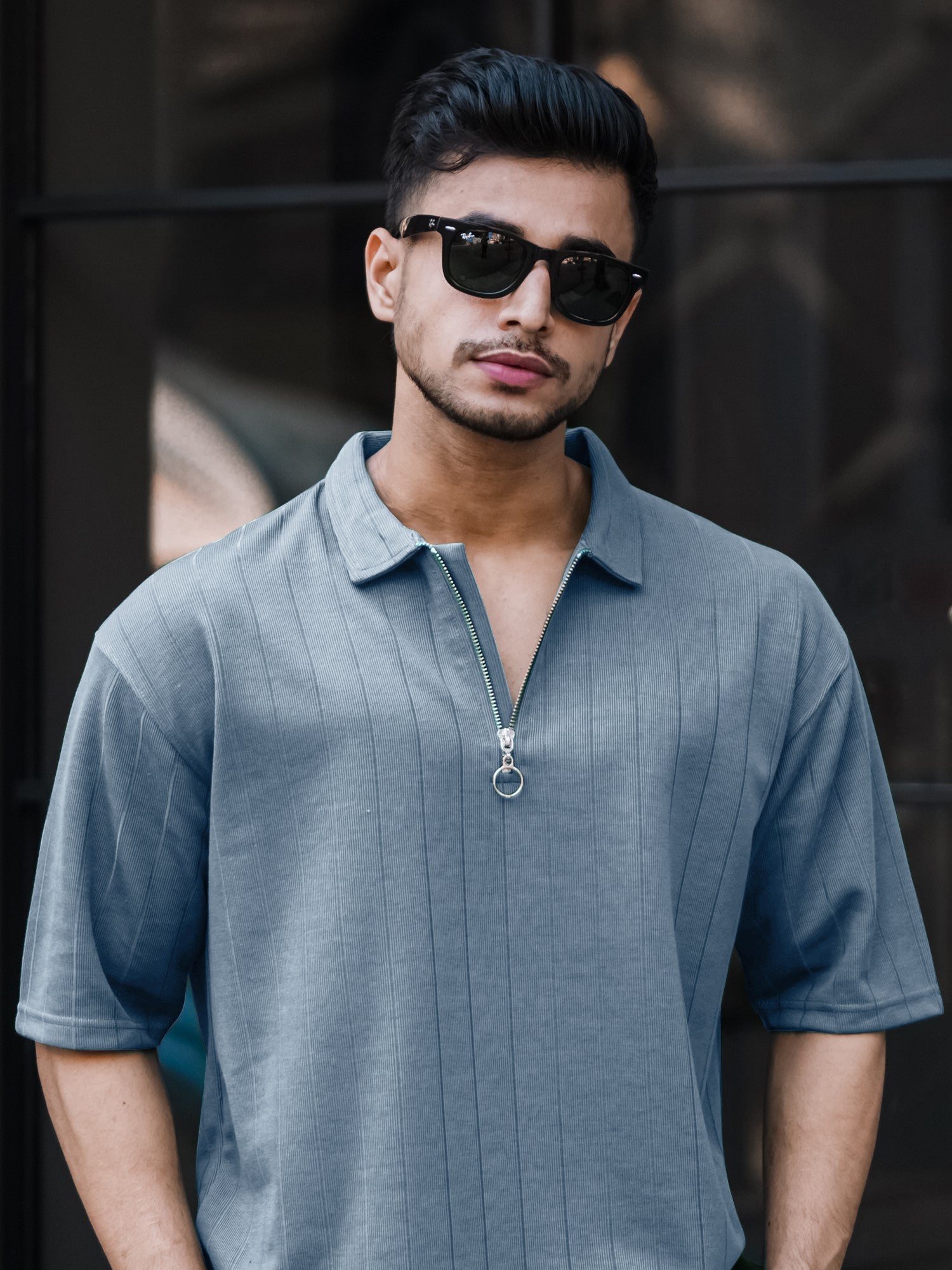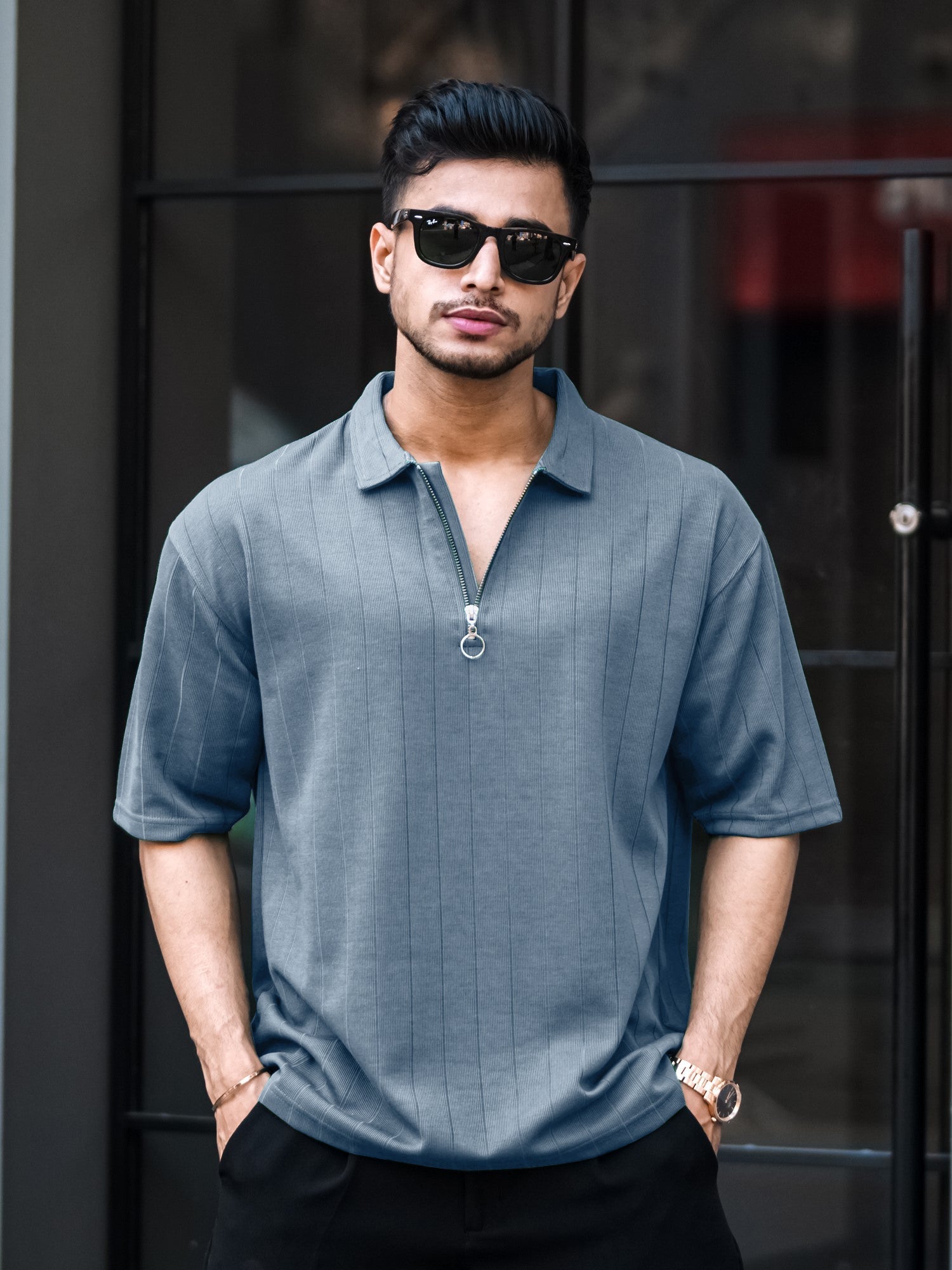 Brooklyn Half Zipper Light Grey Polo Half Sleeve T-Shirt