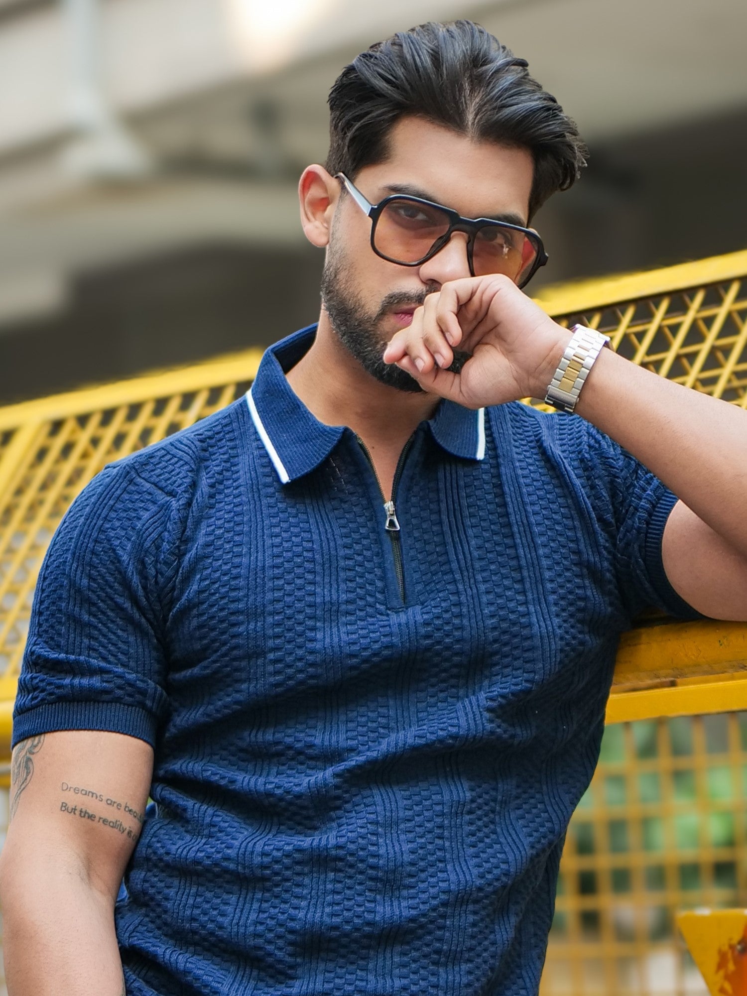 Ribknit Navy Polo Half Sleeve T-Shirt