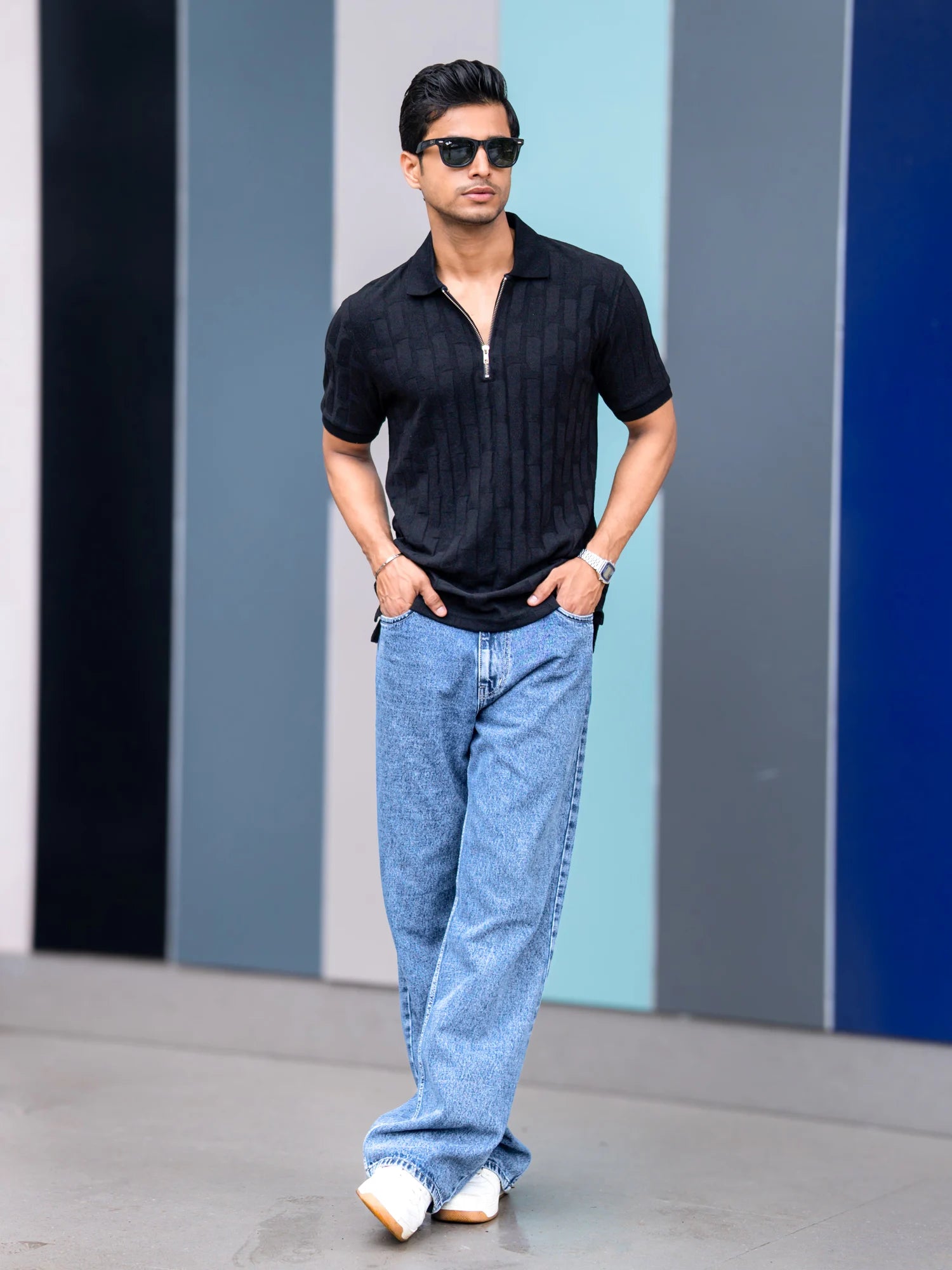Stone Wave Black Half Sleeve Polo T-Shirt
