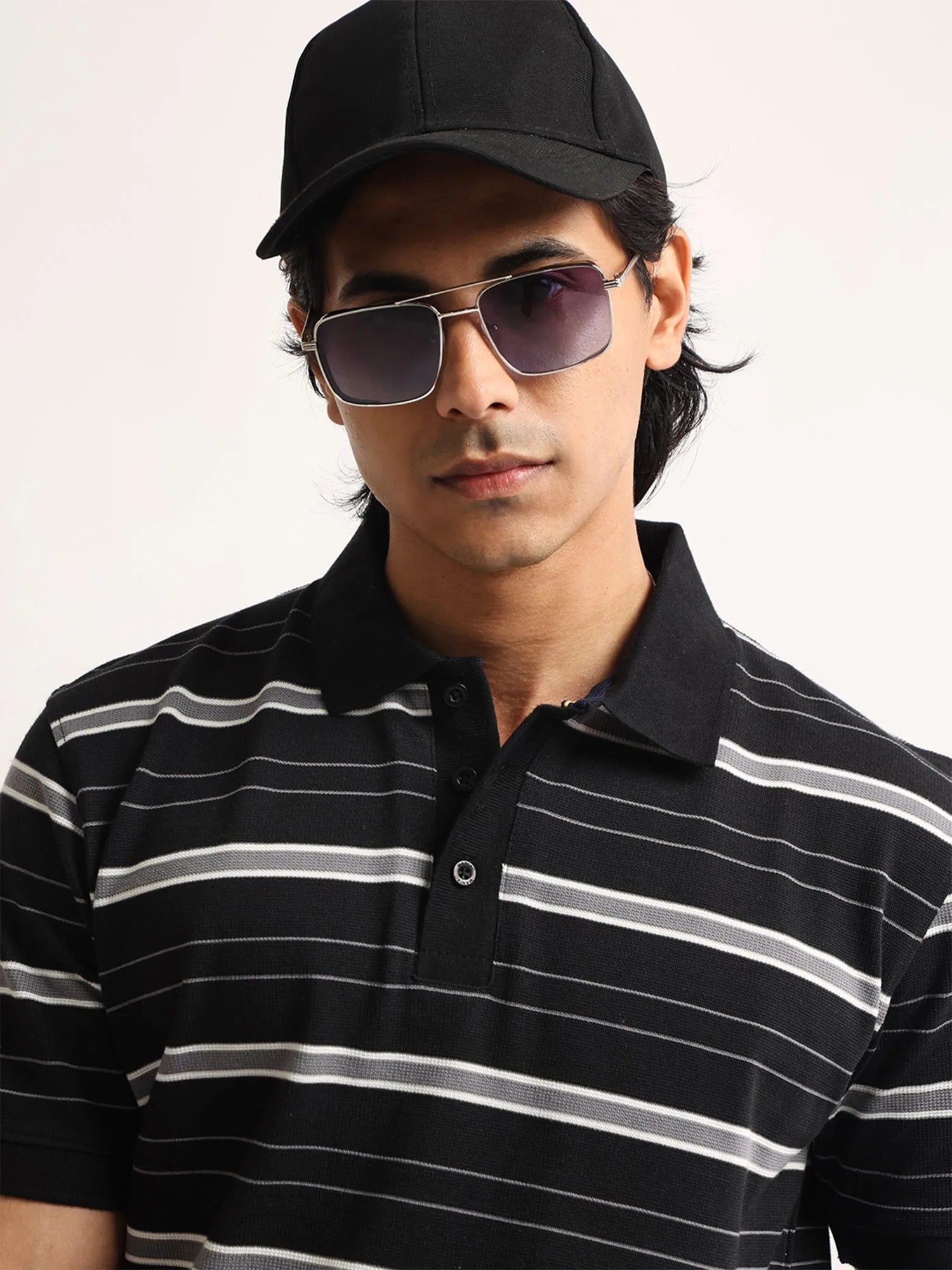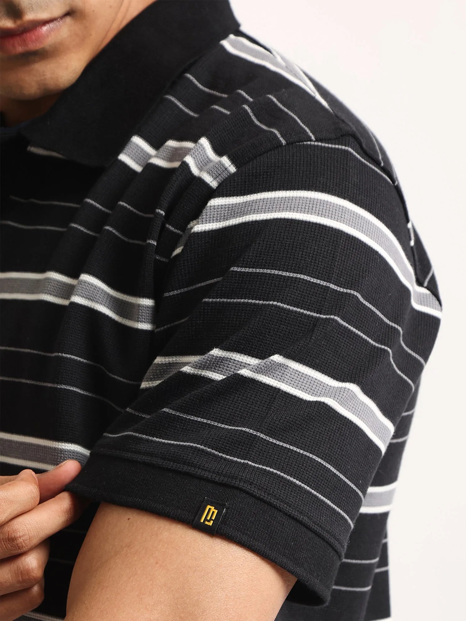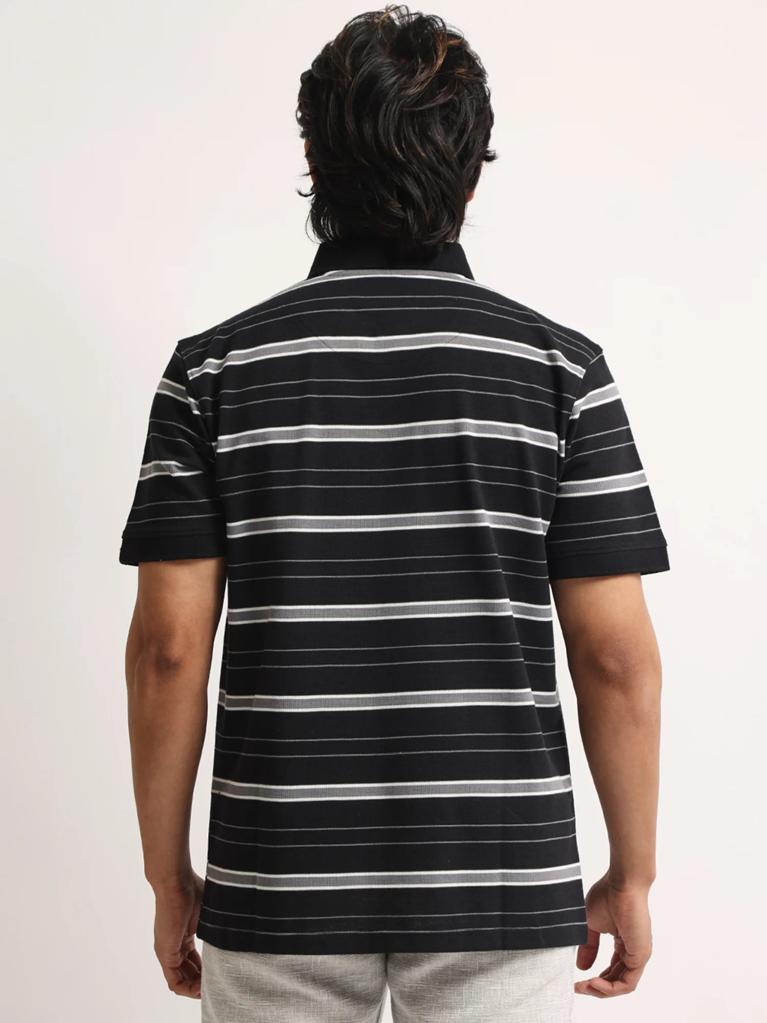 Neutral Stripe Black, Grey Half Sleeve Polo T-Shirt