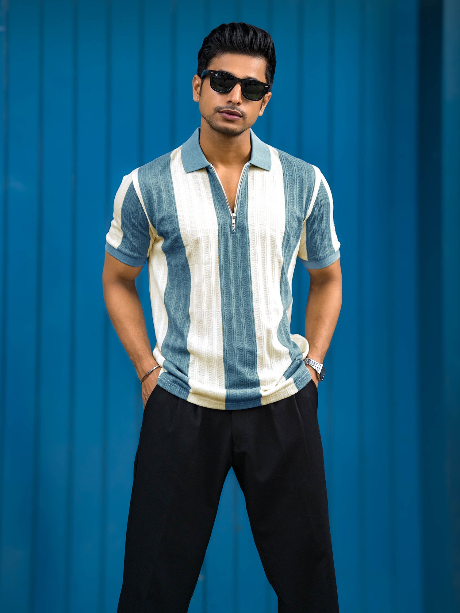 Bold Stripe Blue Half Sleeve Polo T-Shirt