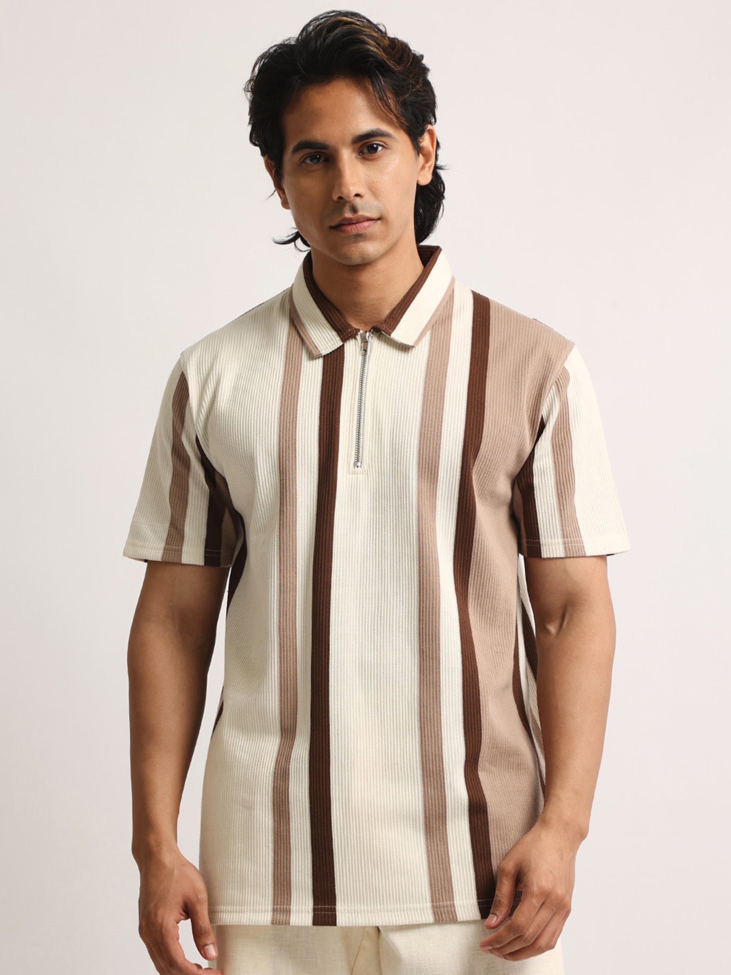 High Street Cream, Brown Half Sleeve Polo T-Shirt