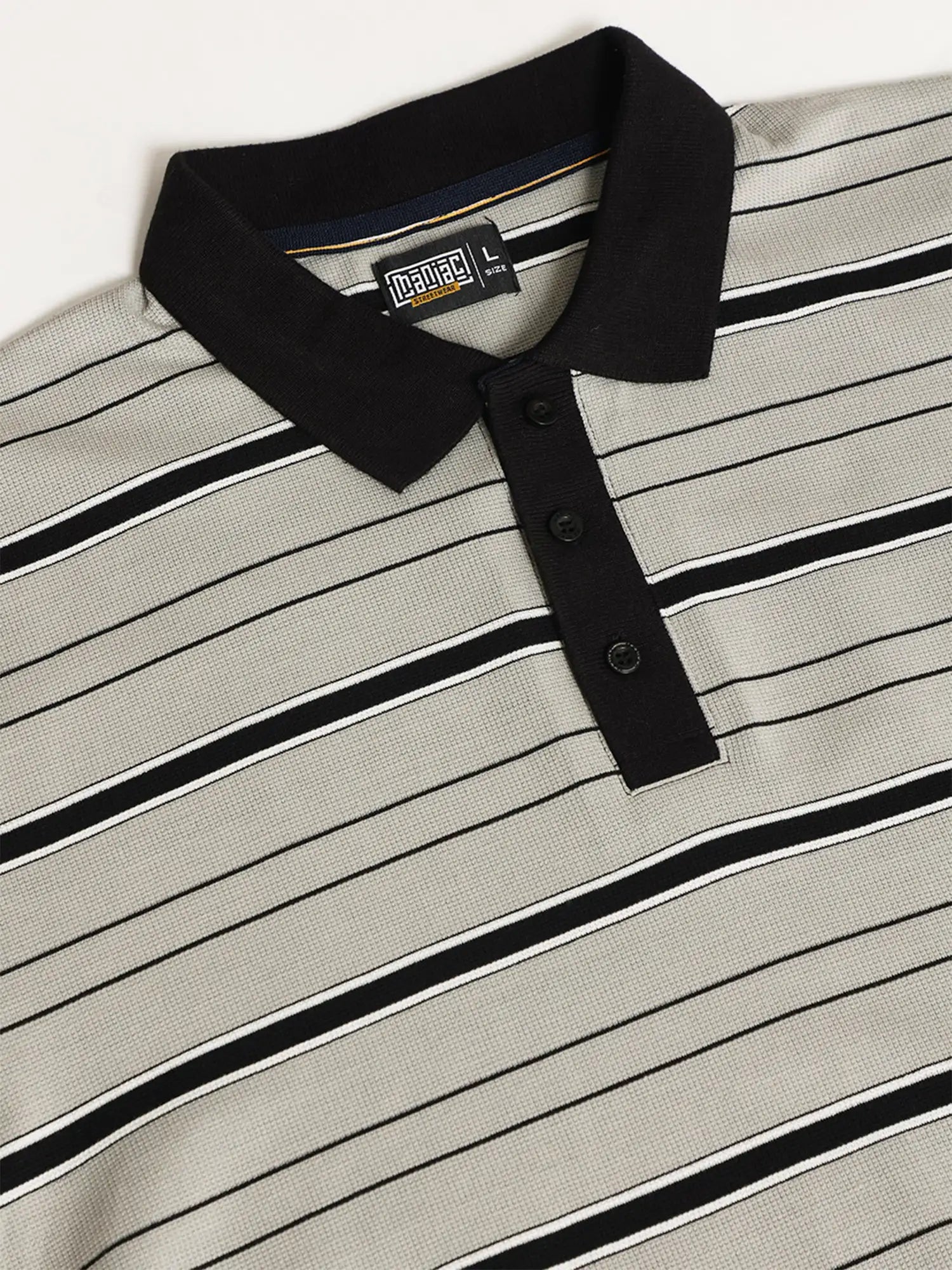 Neutral Stripe Grey, Black Half Sleeve Polo T-Shirt