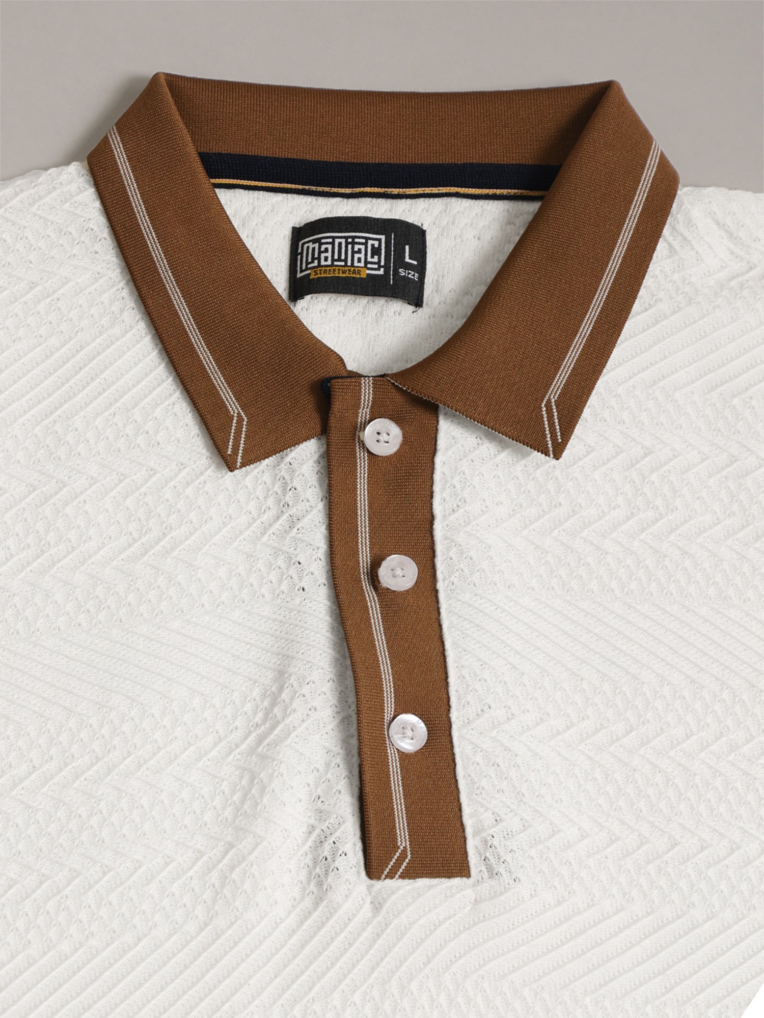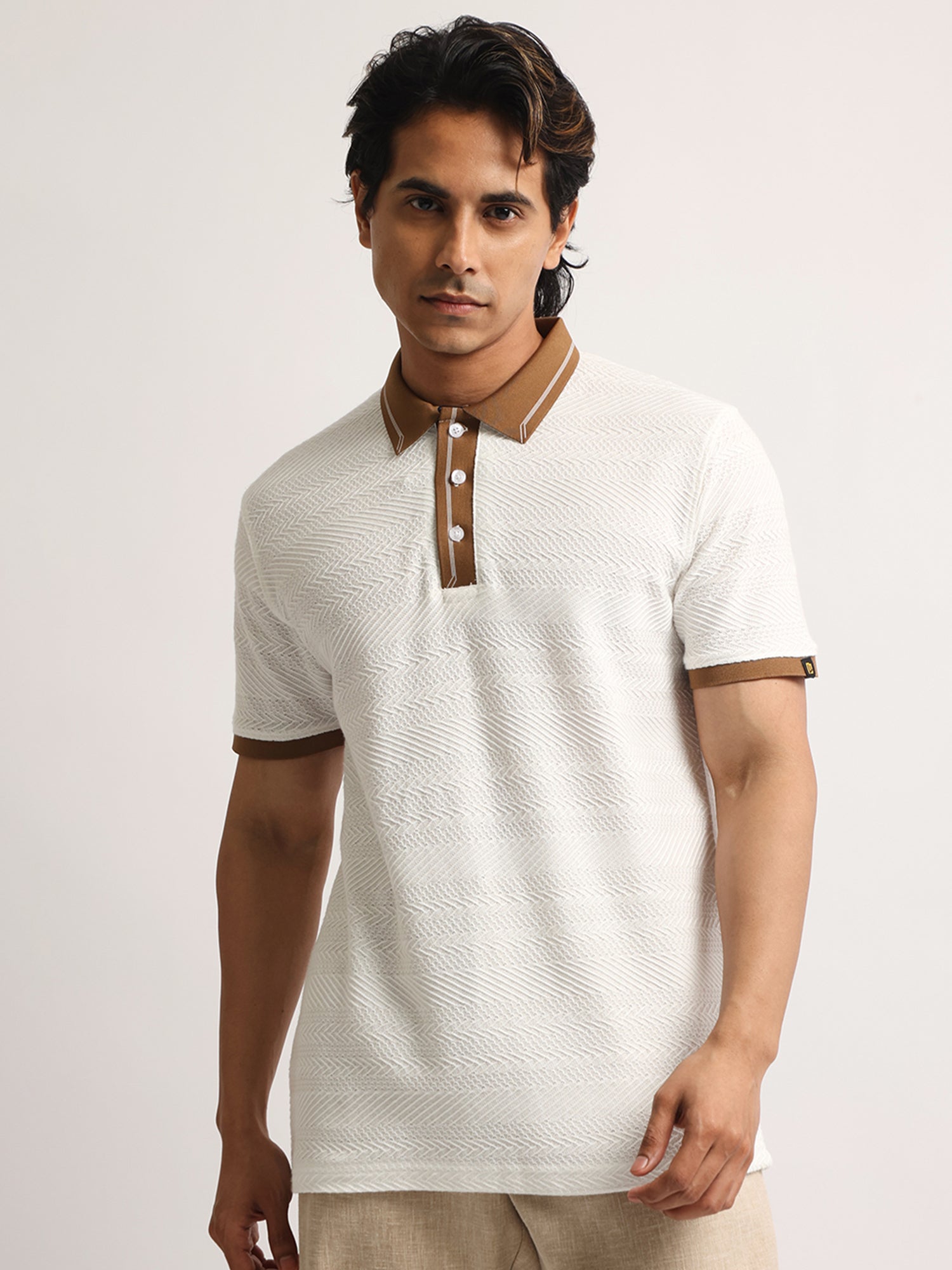 Elite White, Brown Half Sleeve Polo T-Shirt
