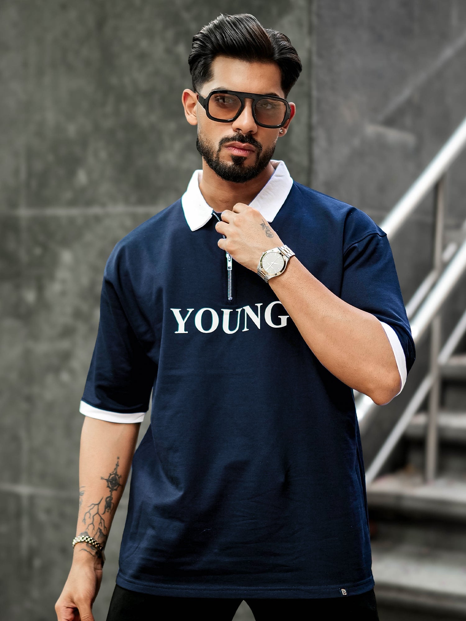 Young Navy Half Zipper Polo Half Sleeve T-Shirt