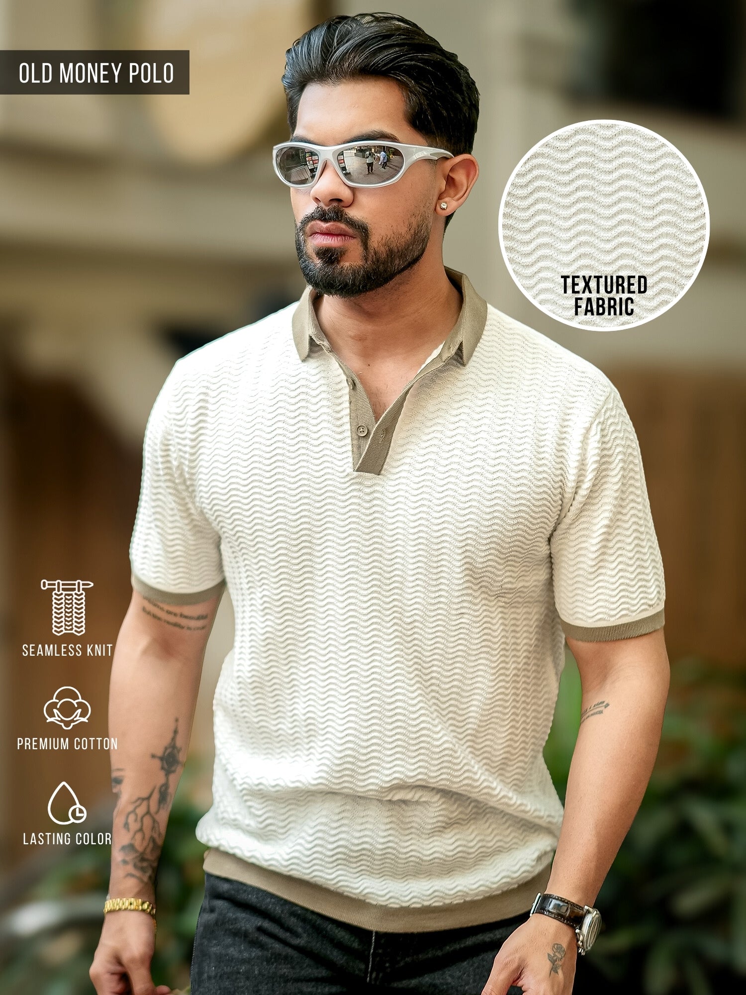 Wave Faltknit White Green Half Sleeve Polo T-Shirt