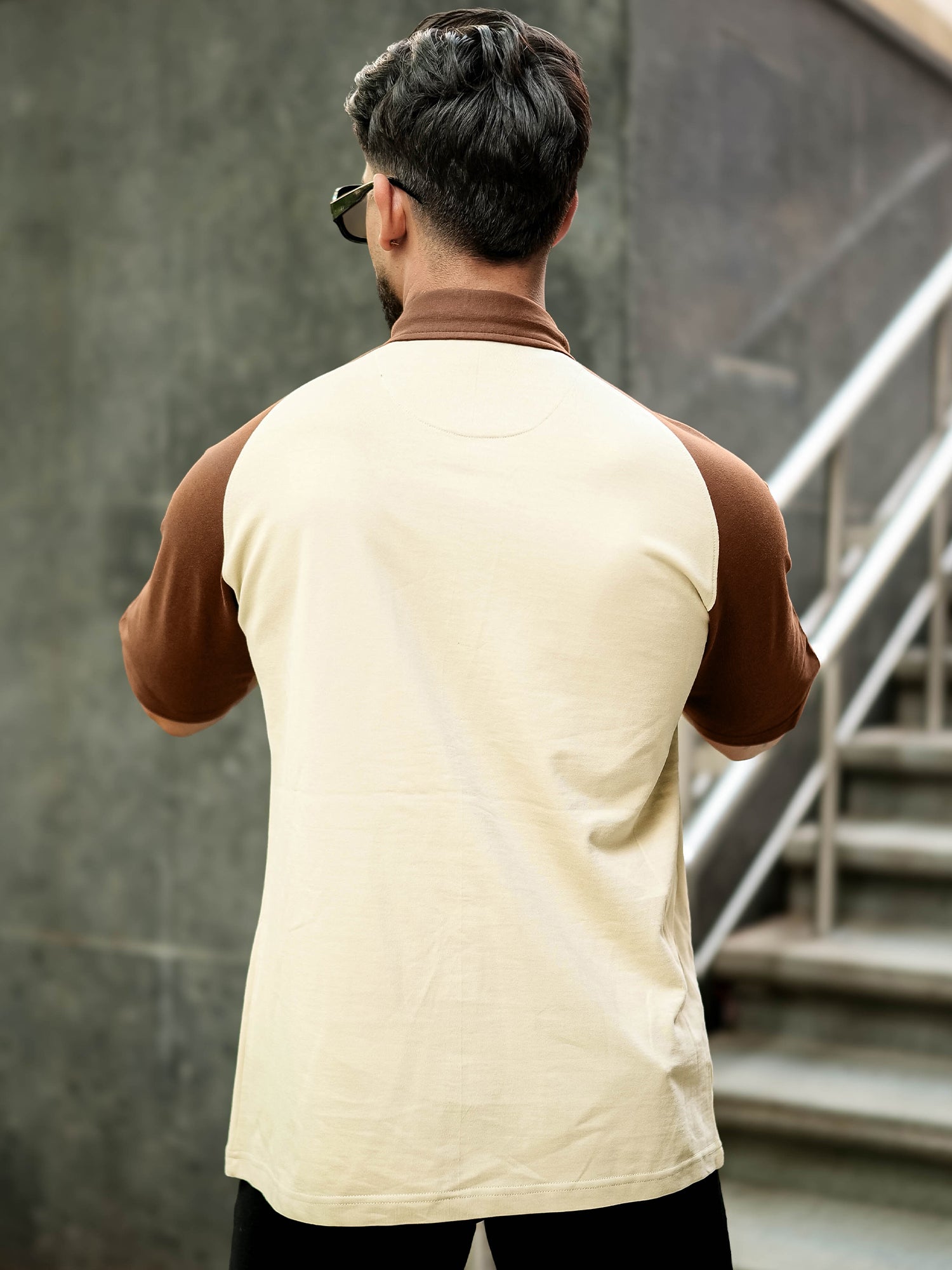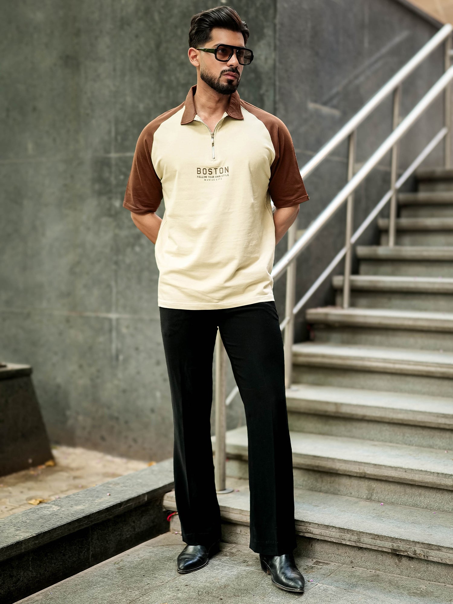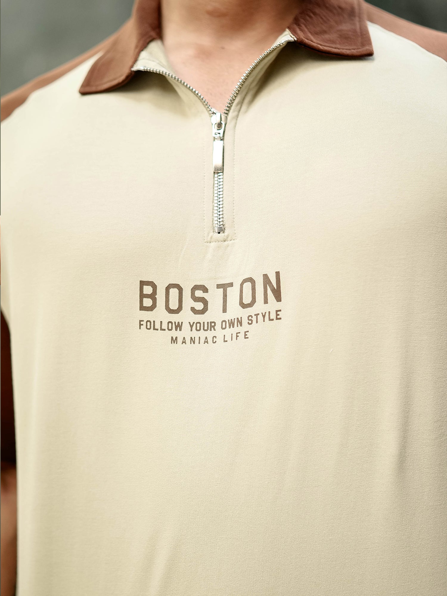 Boston Half Zipper Beige Polo Half Sleeve T-Shirt