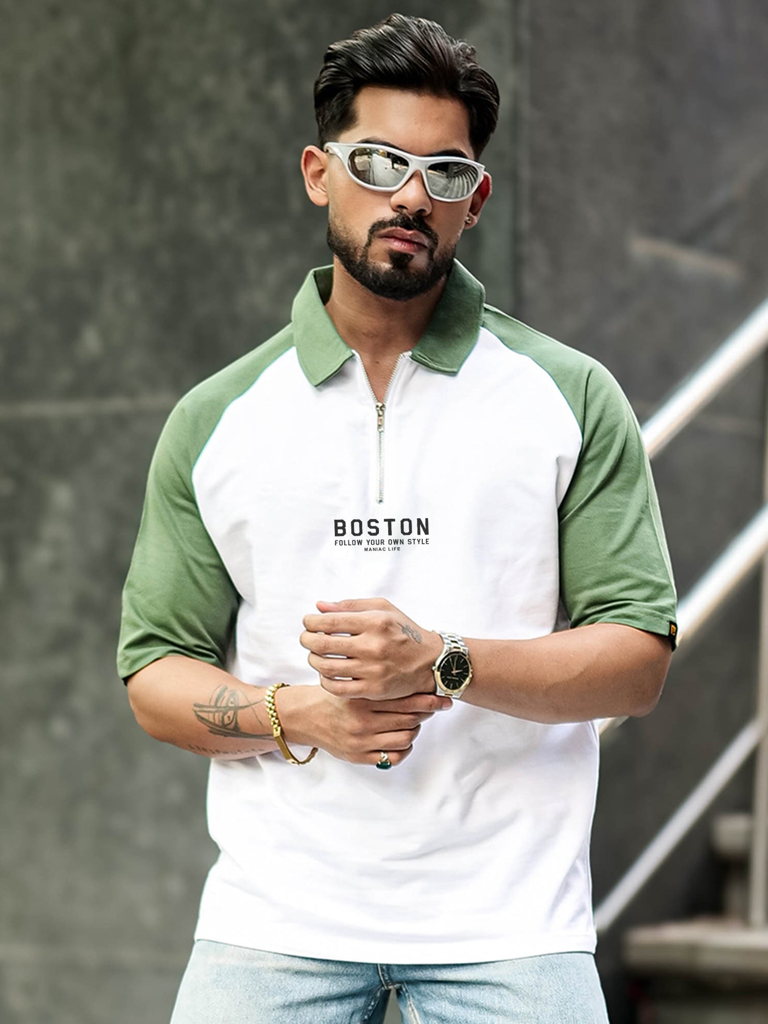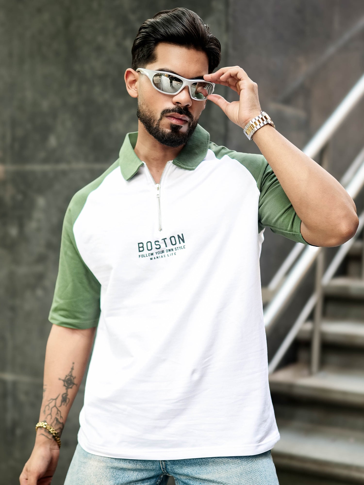 Boston Half Zipper White Polo Half Sleeve T-Shirt
