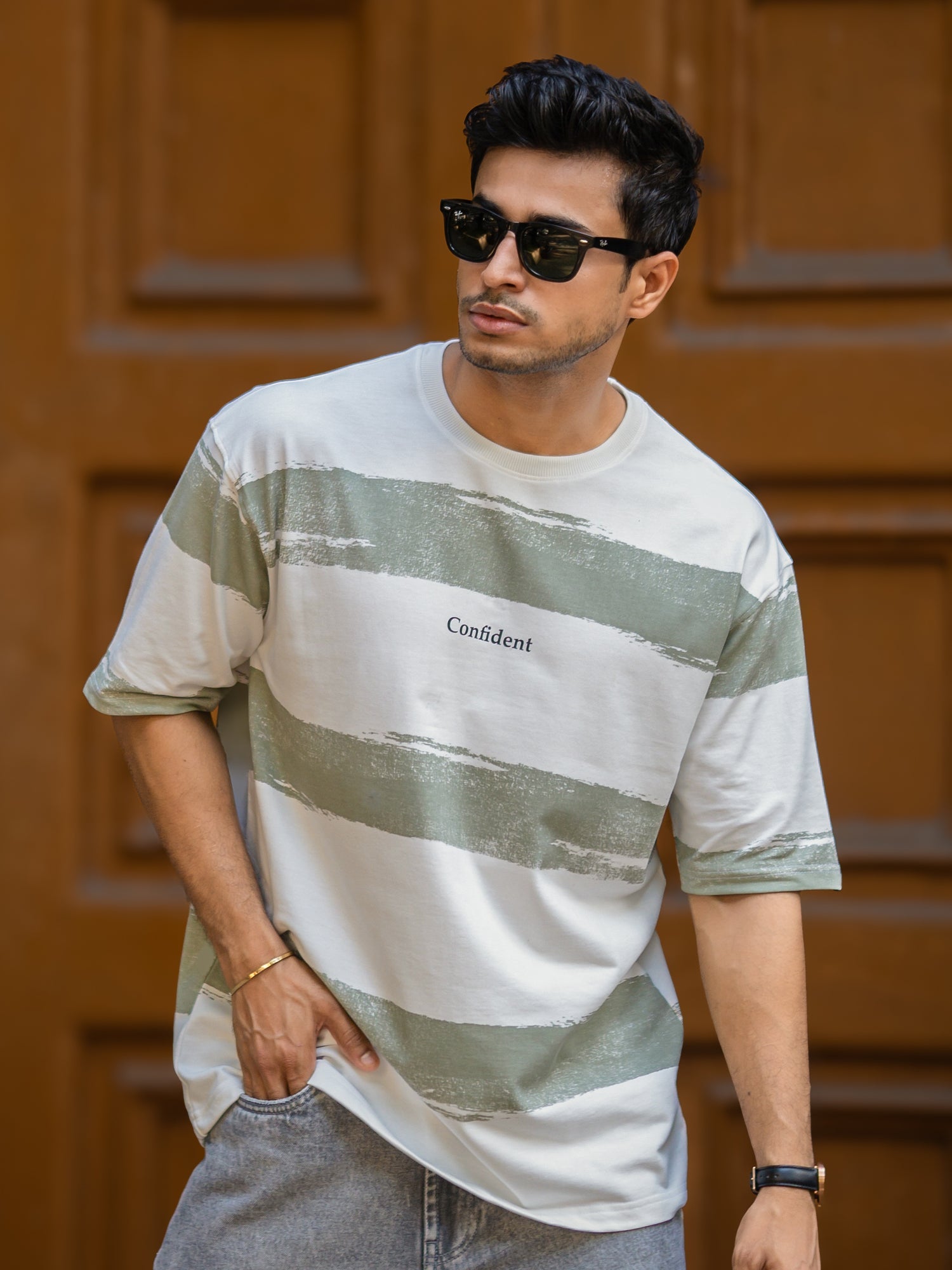Confident Half White Hunter Green Half Sleeve T-Shirt