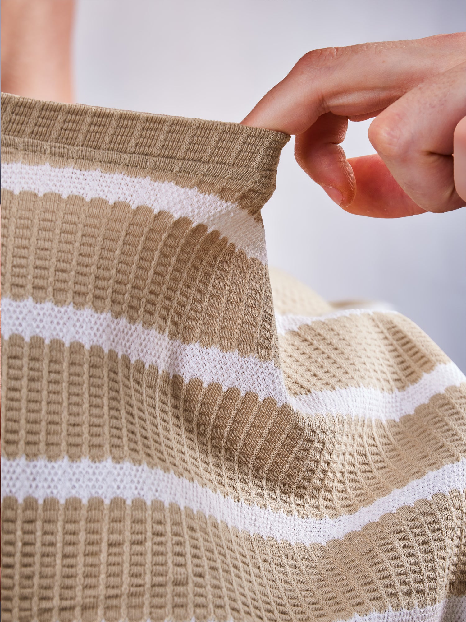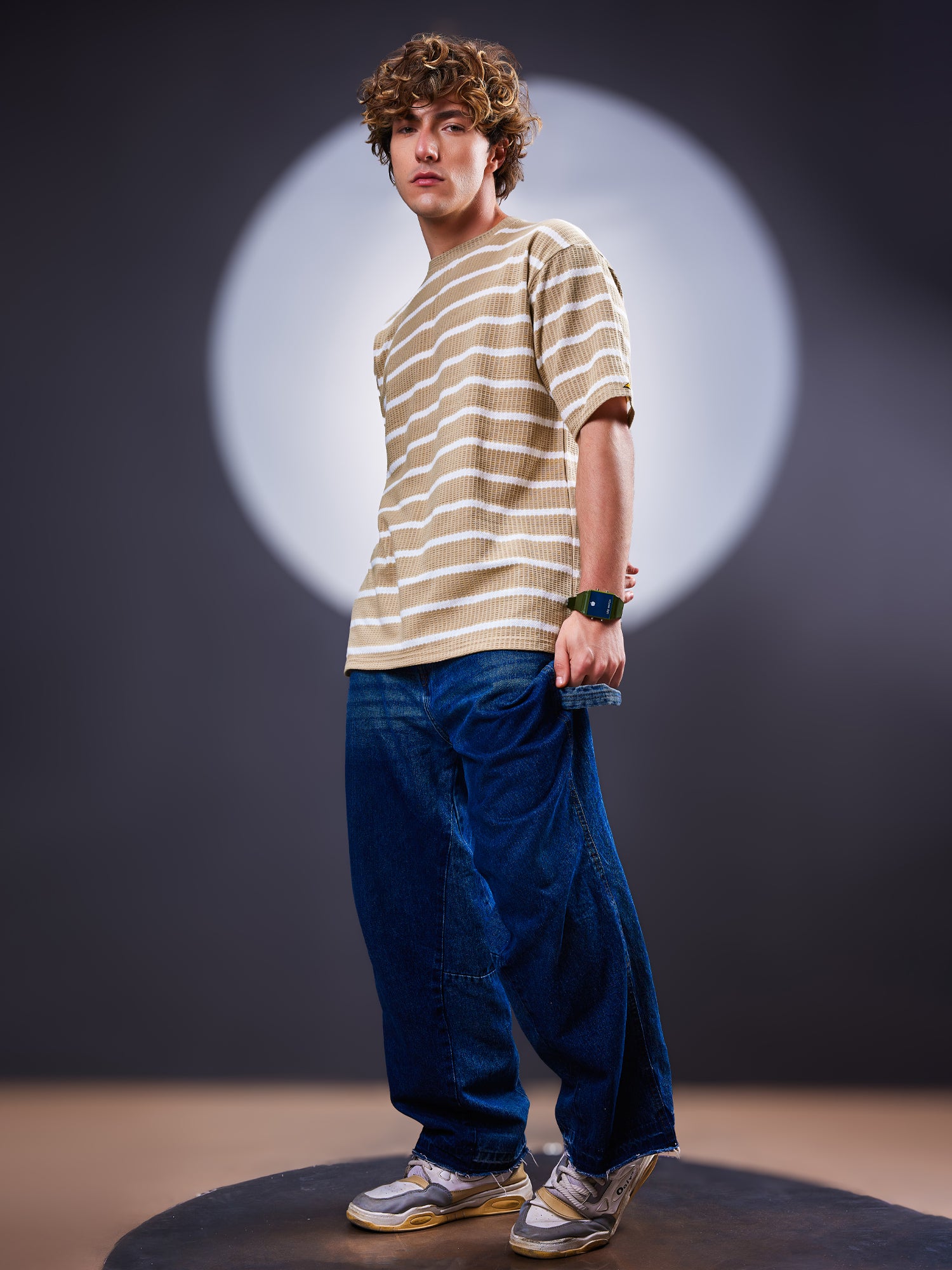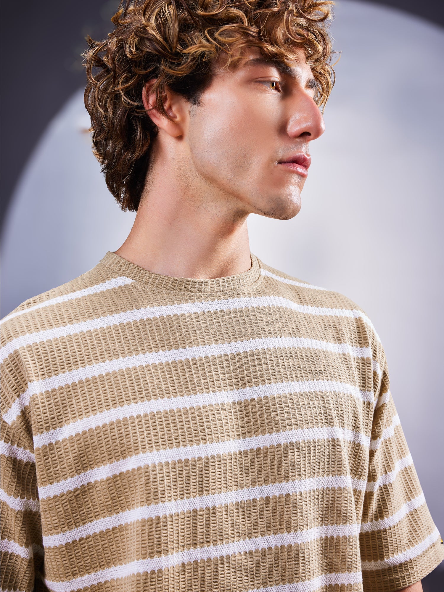 Popcorn Horizontal Stripe Beige Half Sleeve T-Shirt