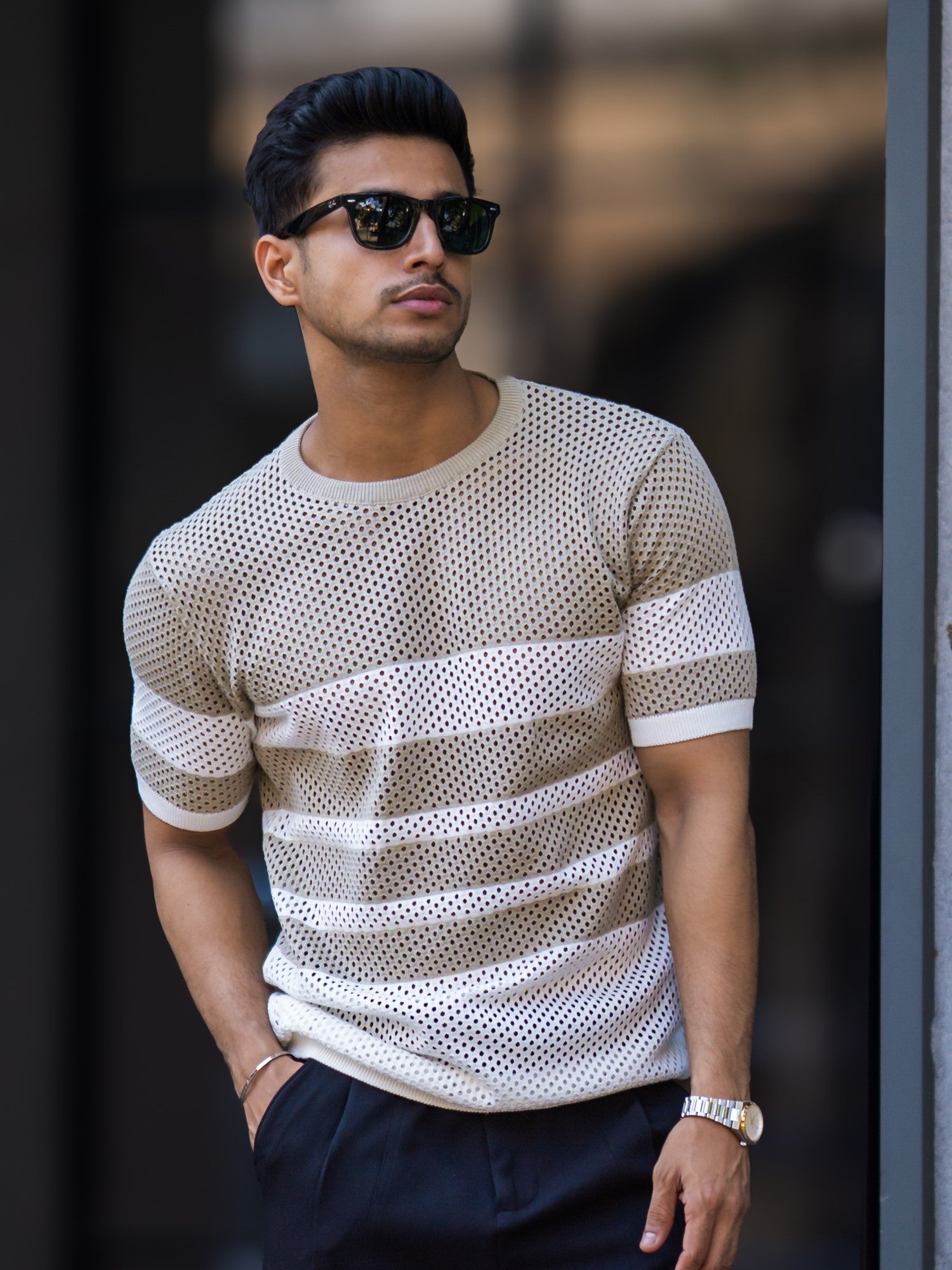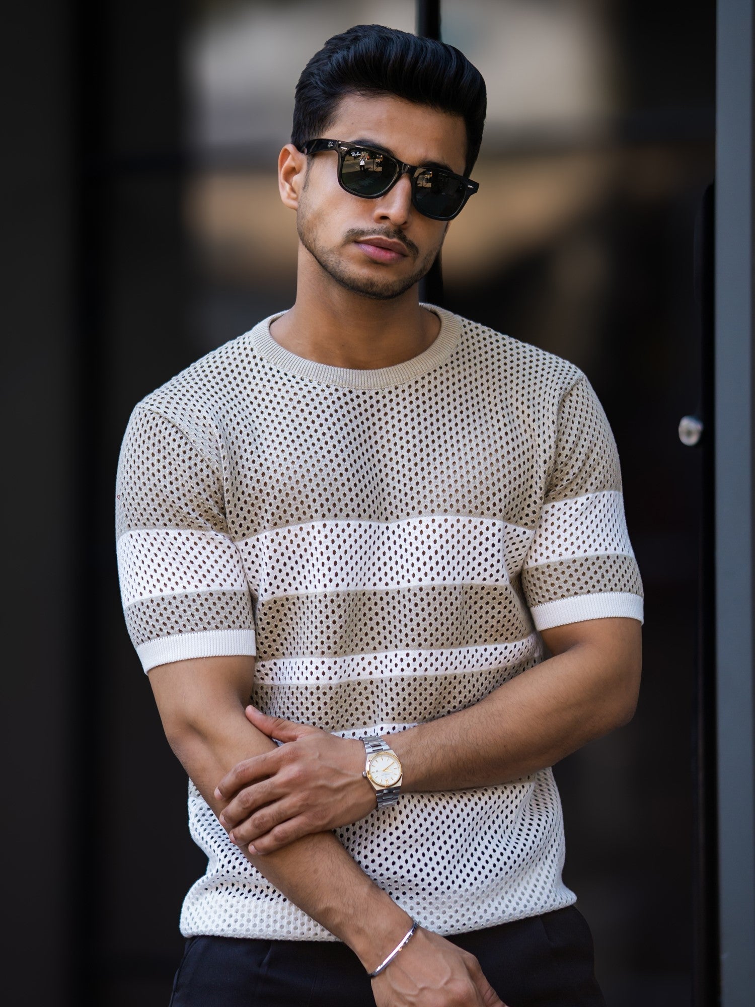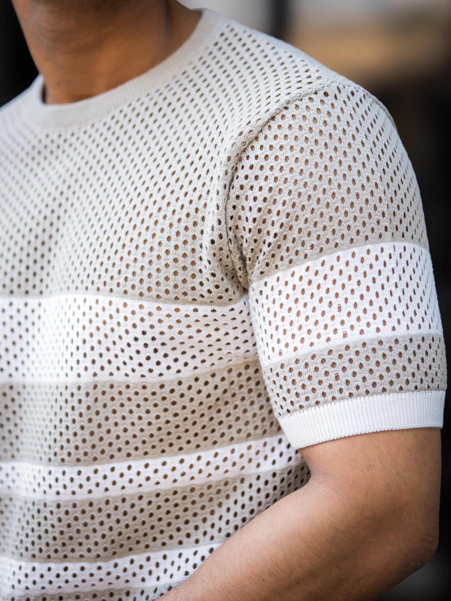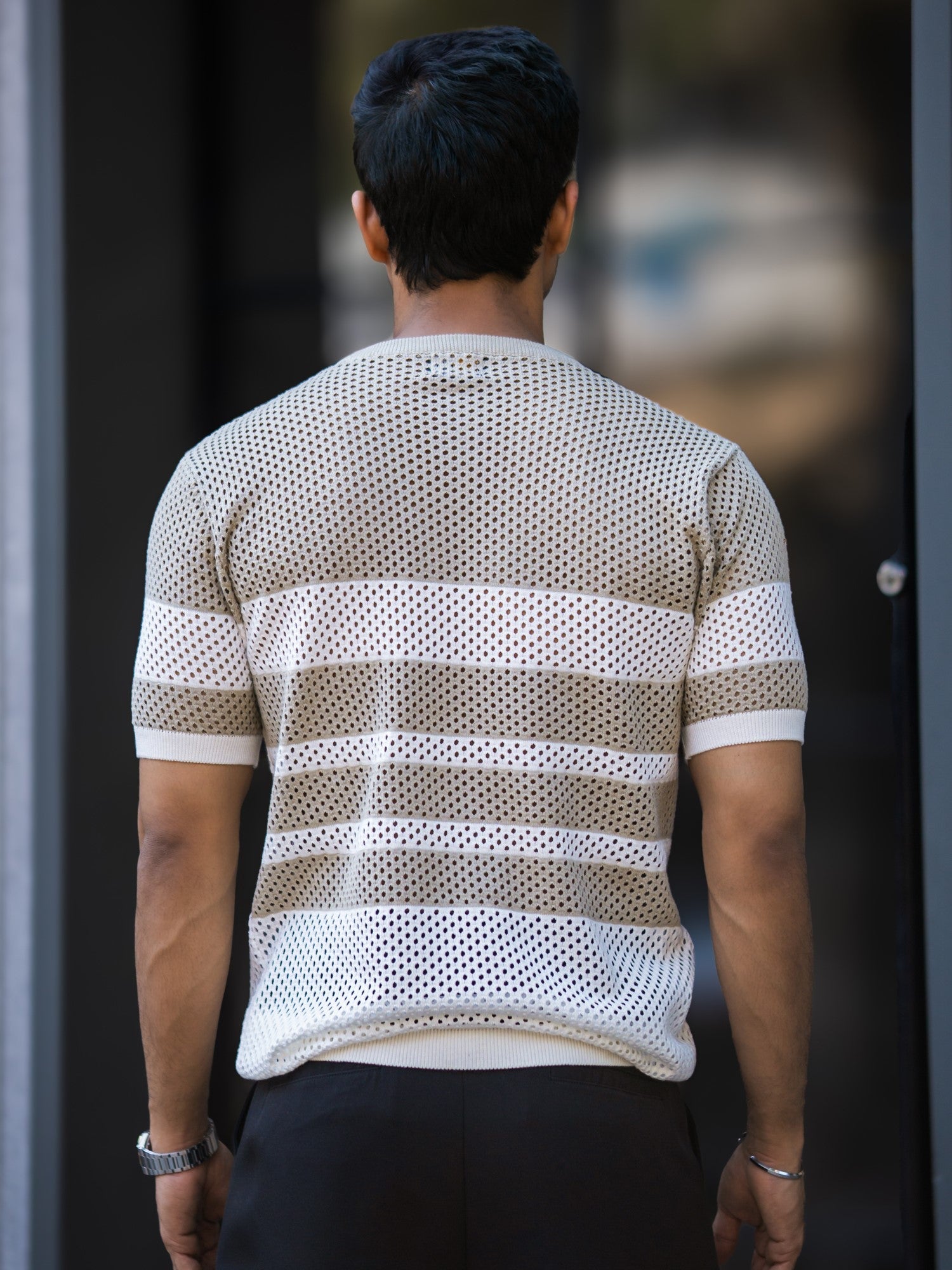 Resort Beige White Flatknit Half Sleeve T-Shirt
