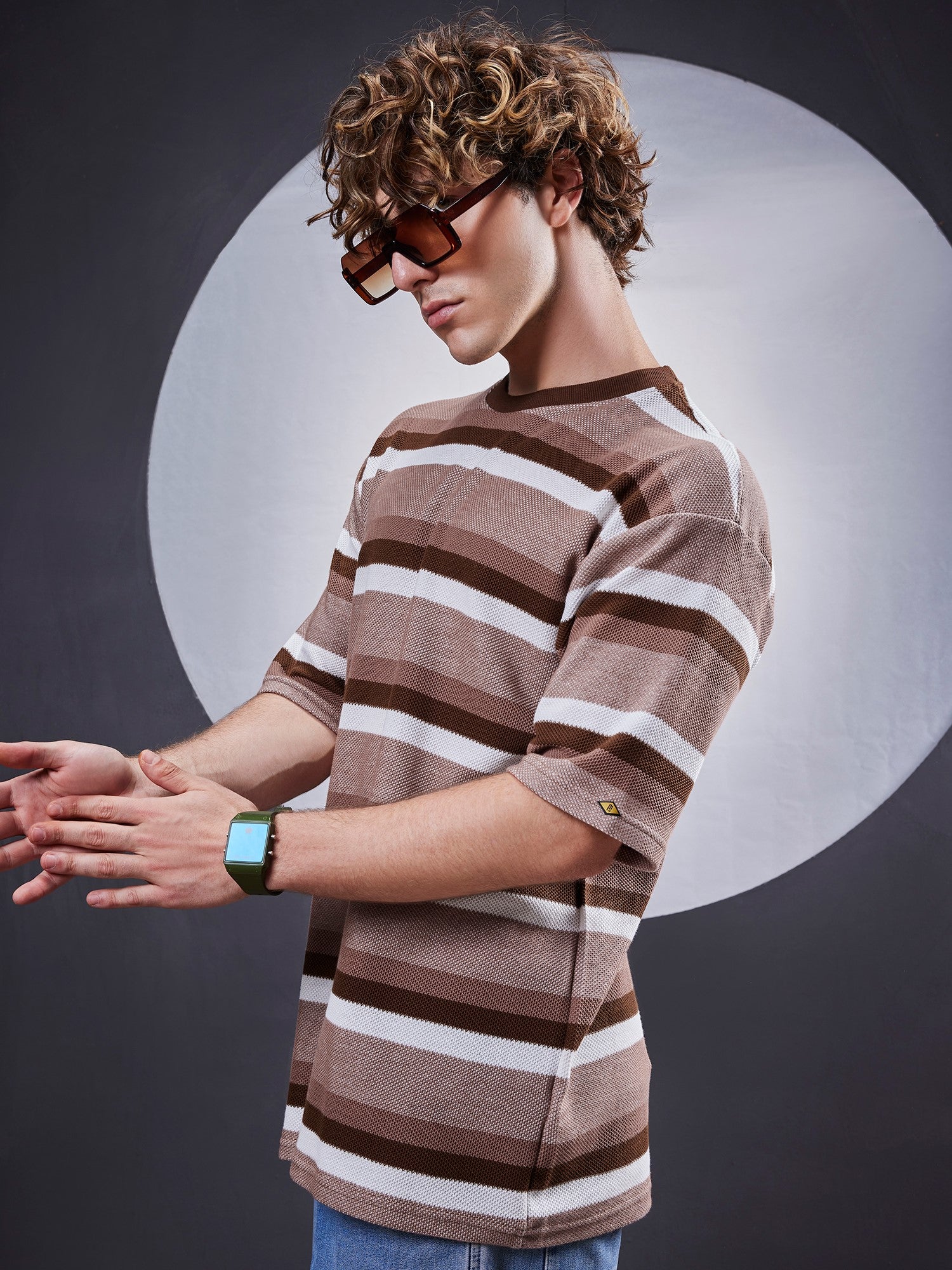 Roman Stripe Brown Half Sleeve Tshirt
