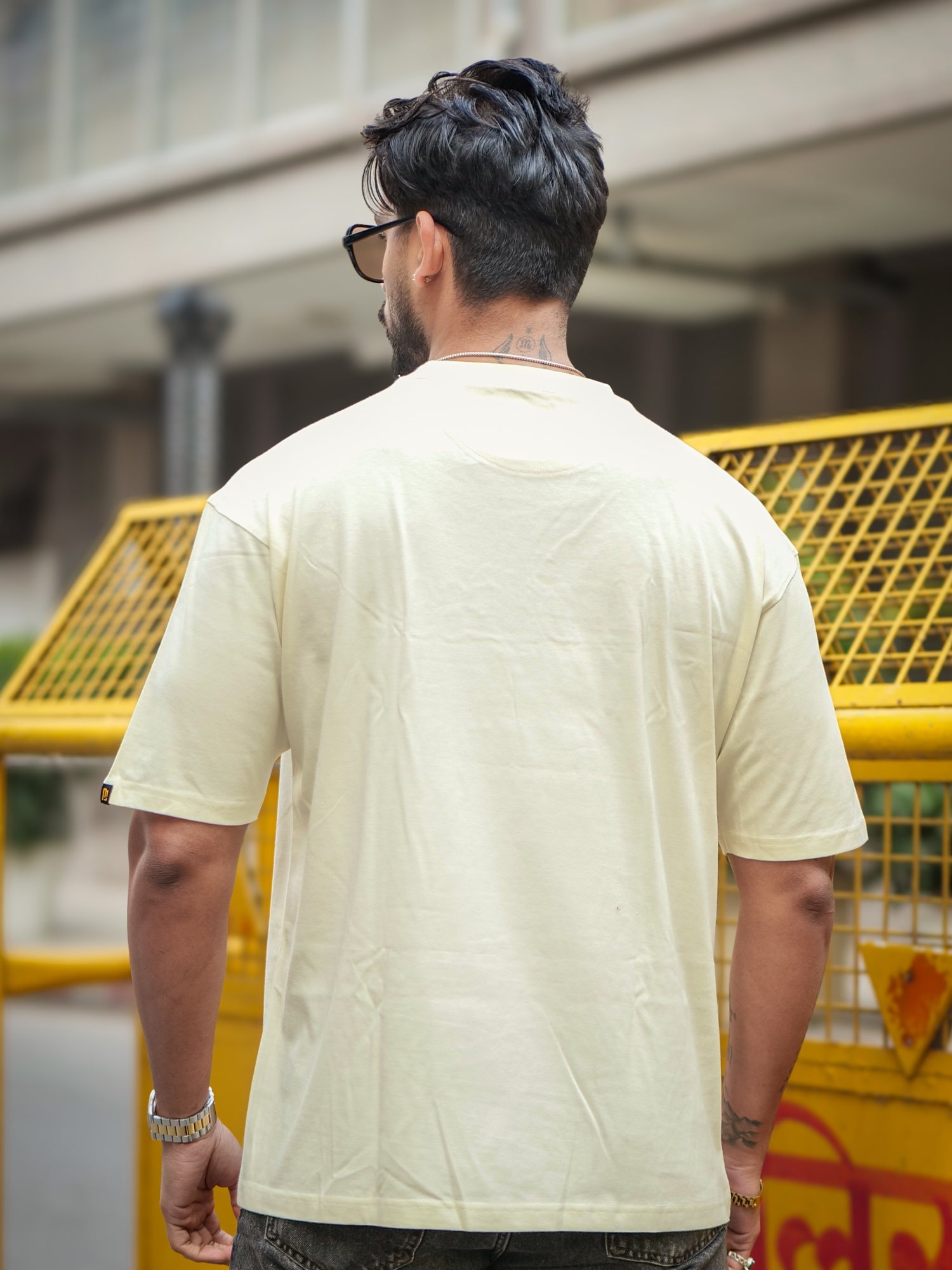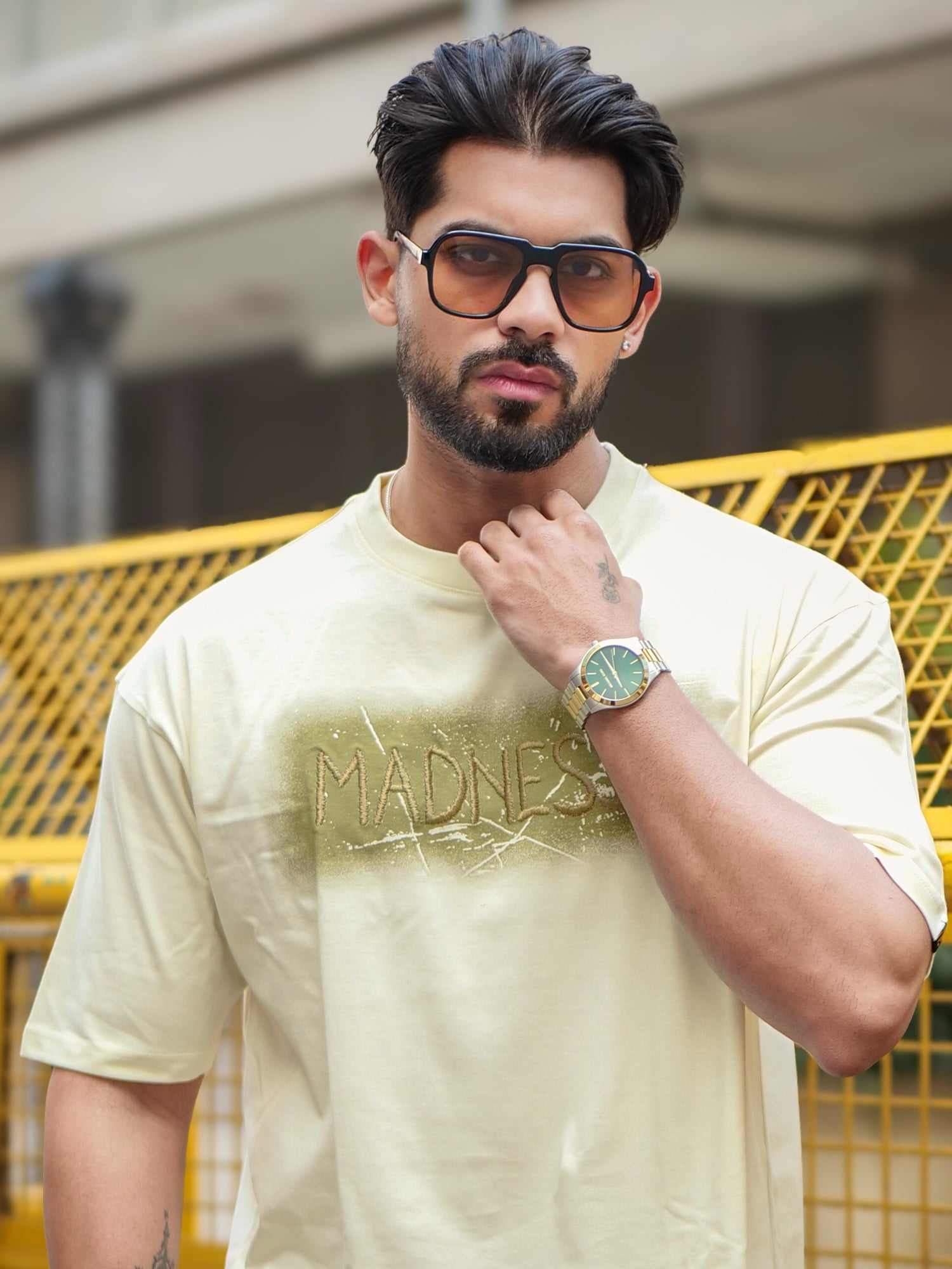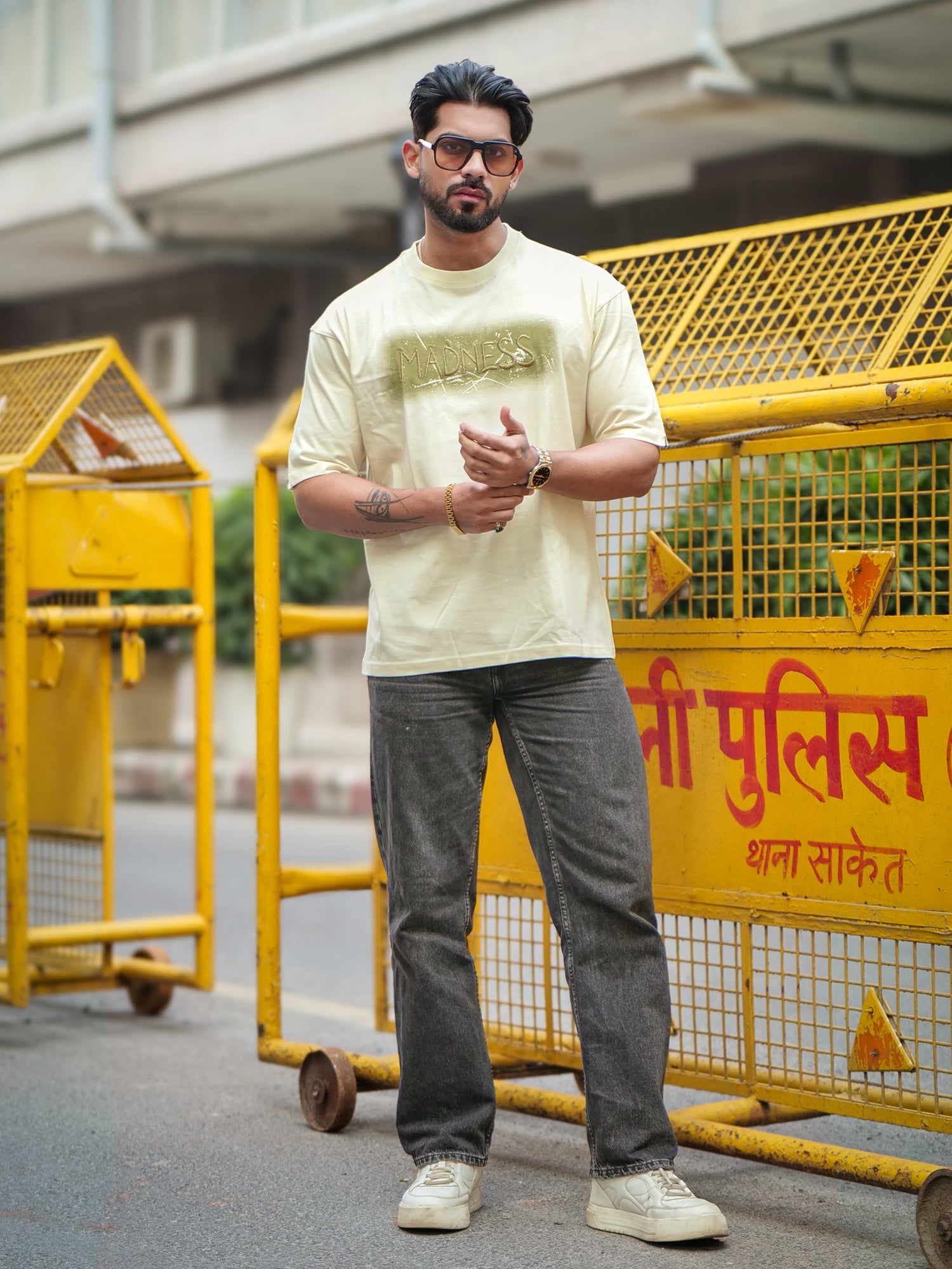 Madness Embroidery Cream Half Sleeve T-Shirt