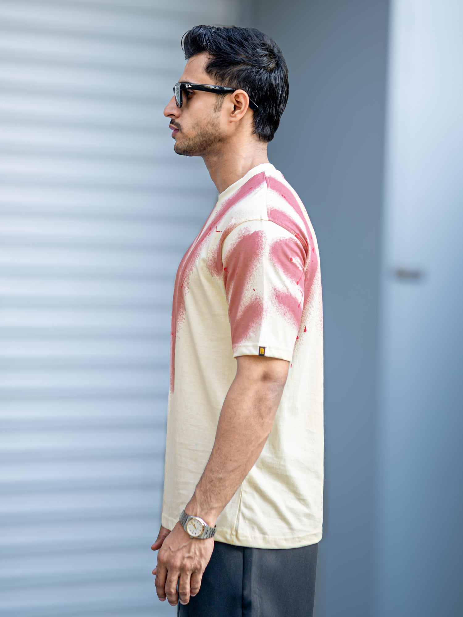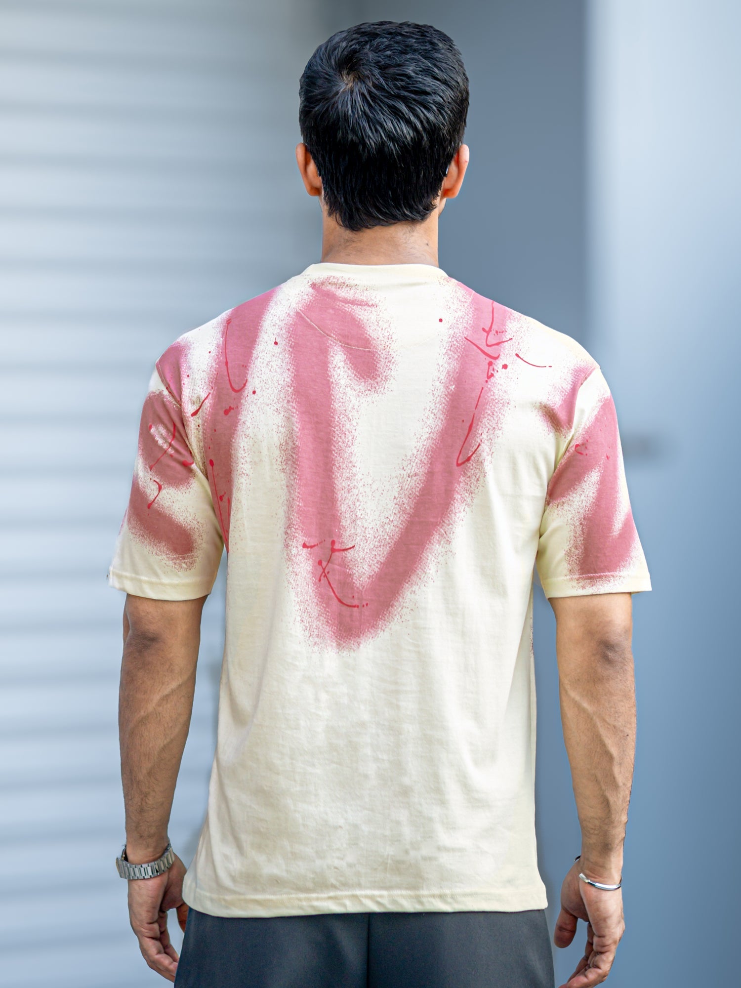 Graffiti Spray Cream Half Sleeve T-Shirt
