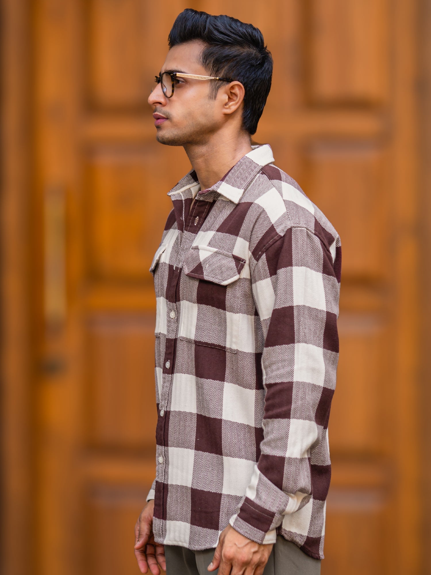 Herringbone Maroon Full Sleeve Shirt