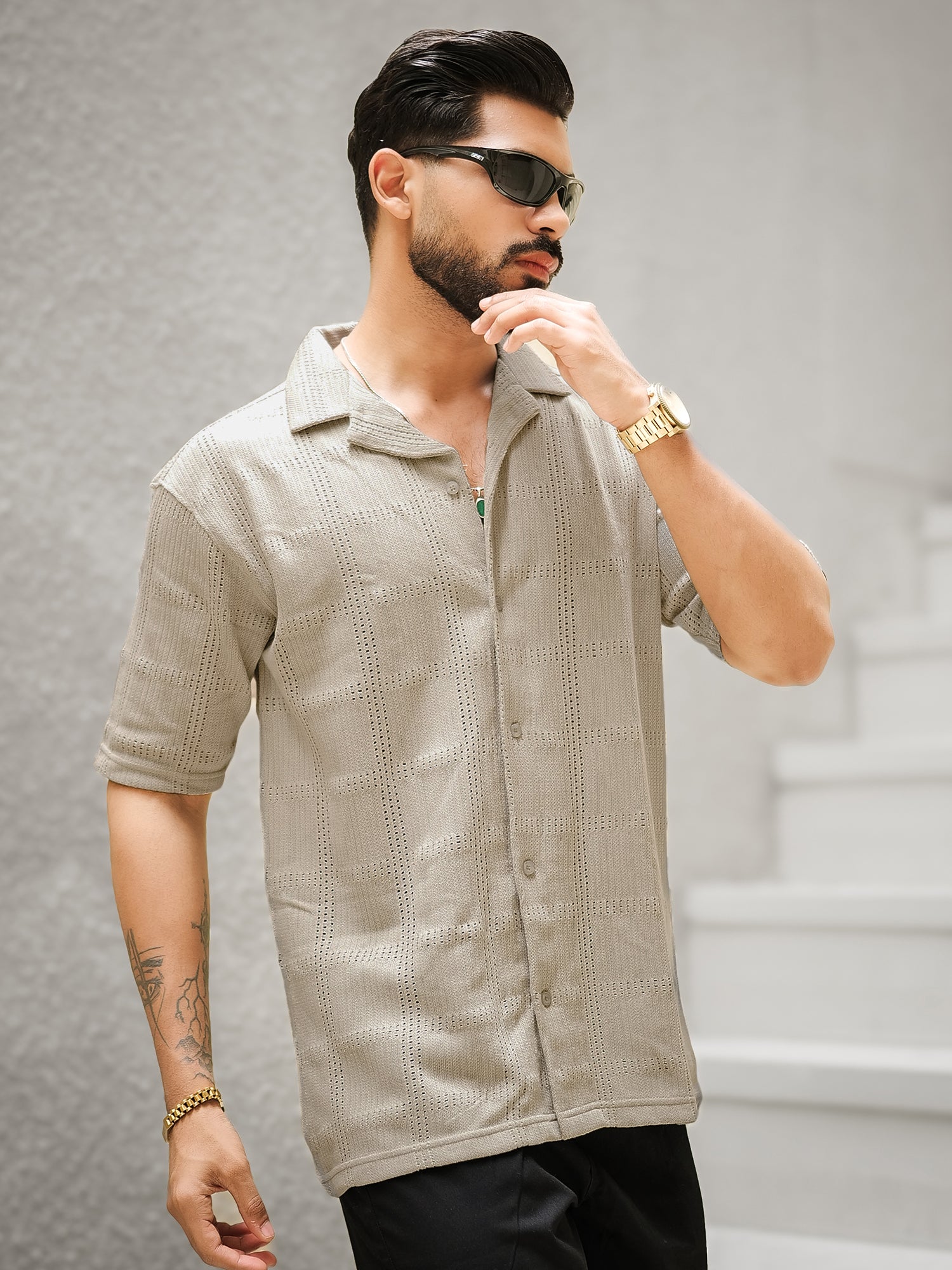 Rustic Knit Biscuit Half Sleeve Shirt