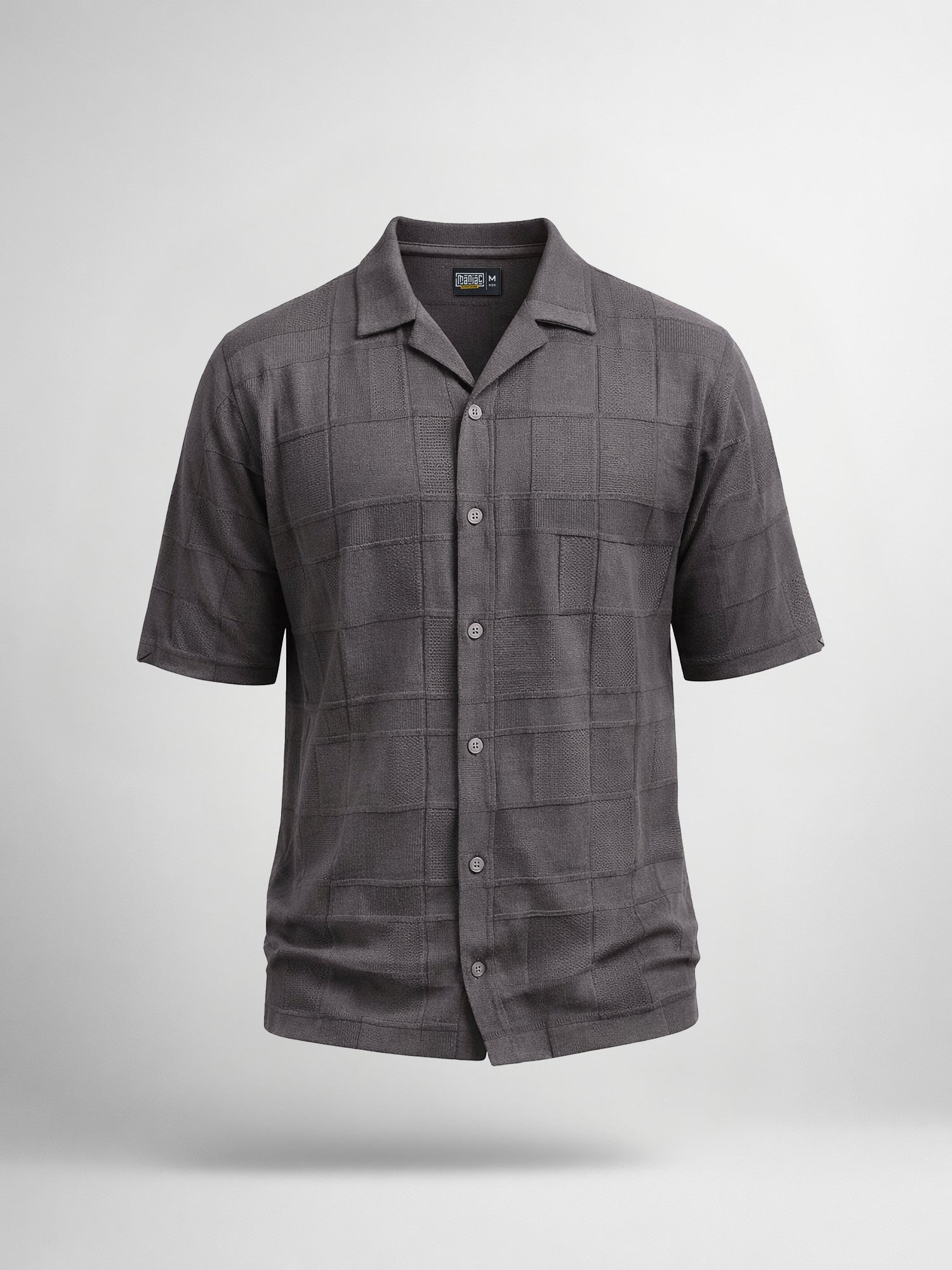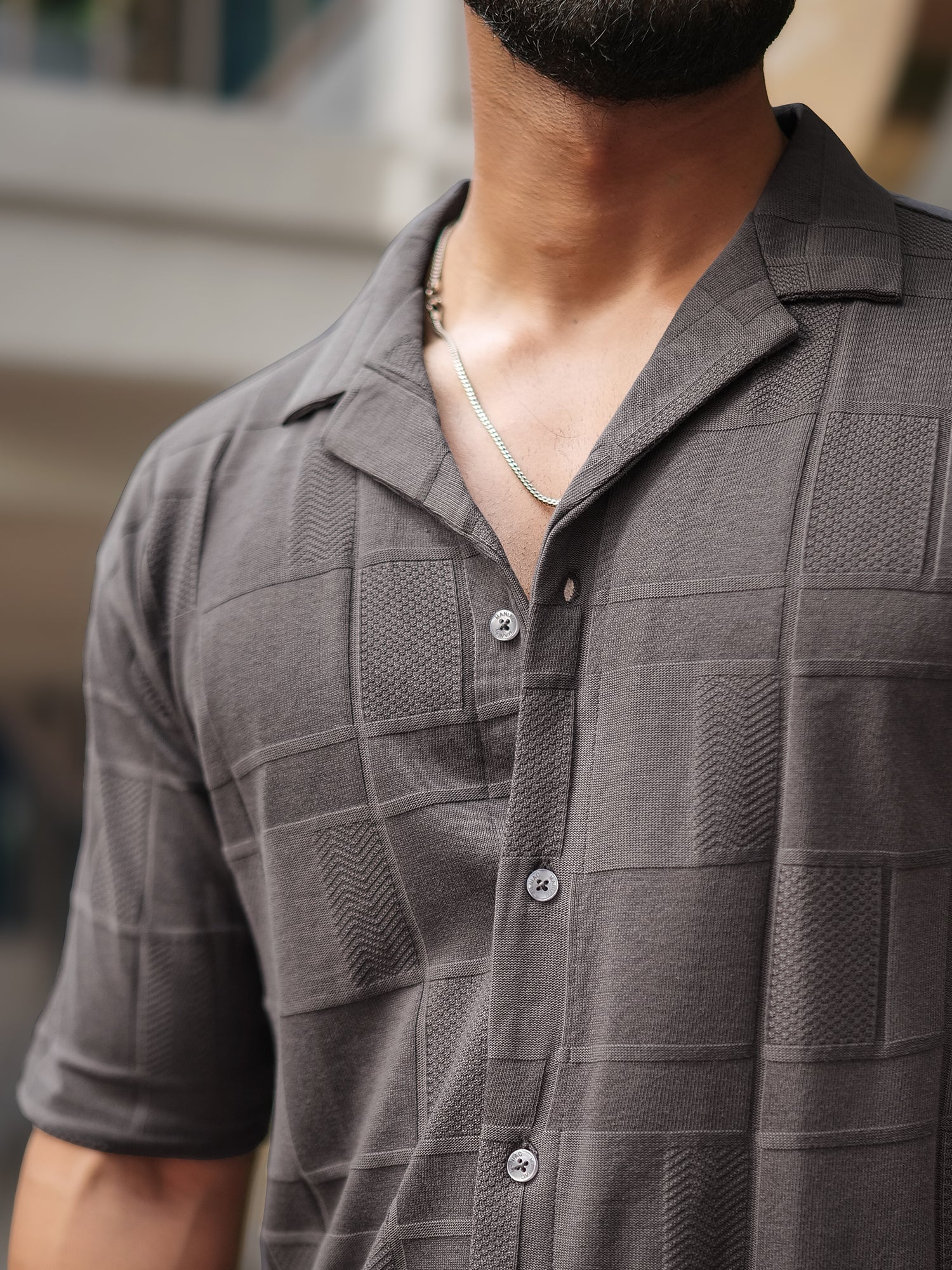 Cubic Knit Dark Grey Half Sleeve Shirt