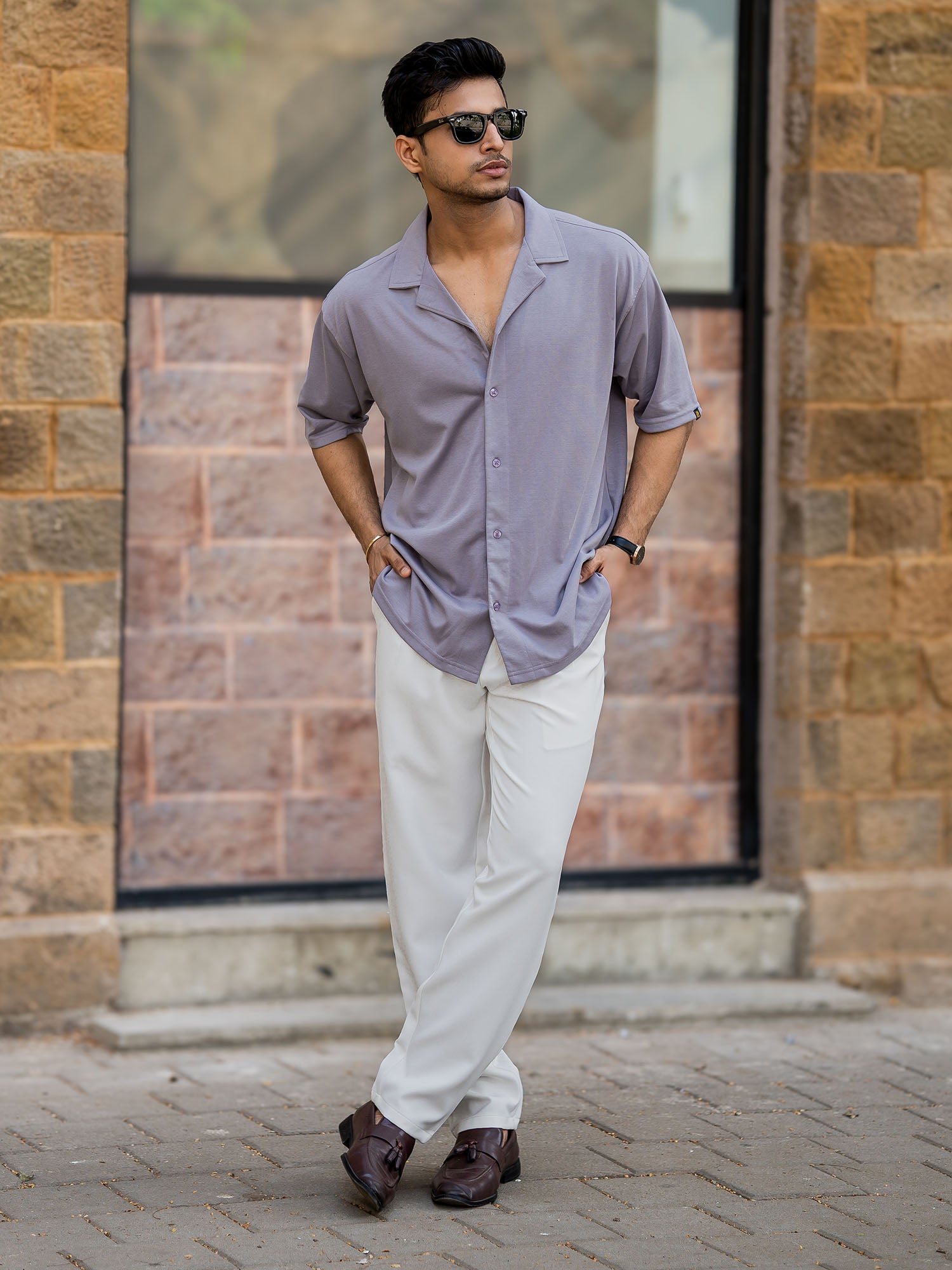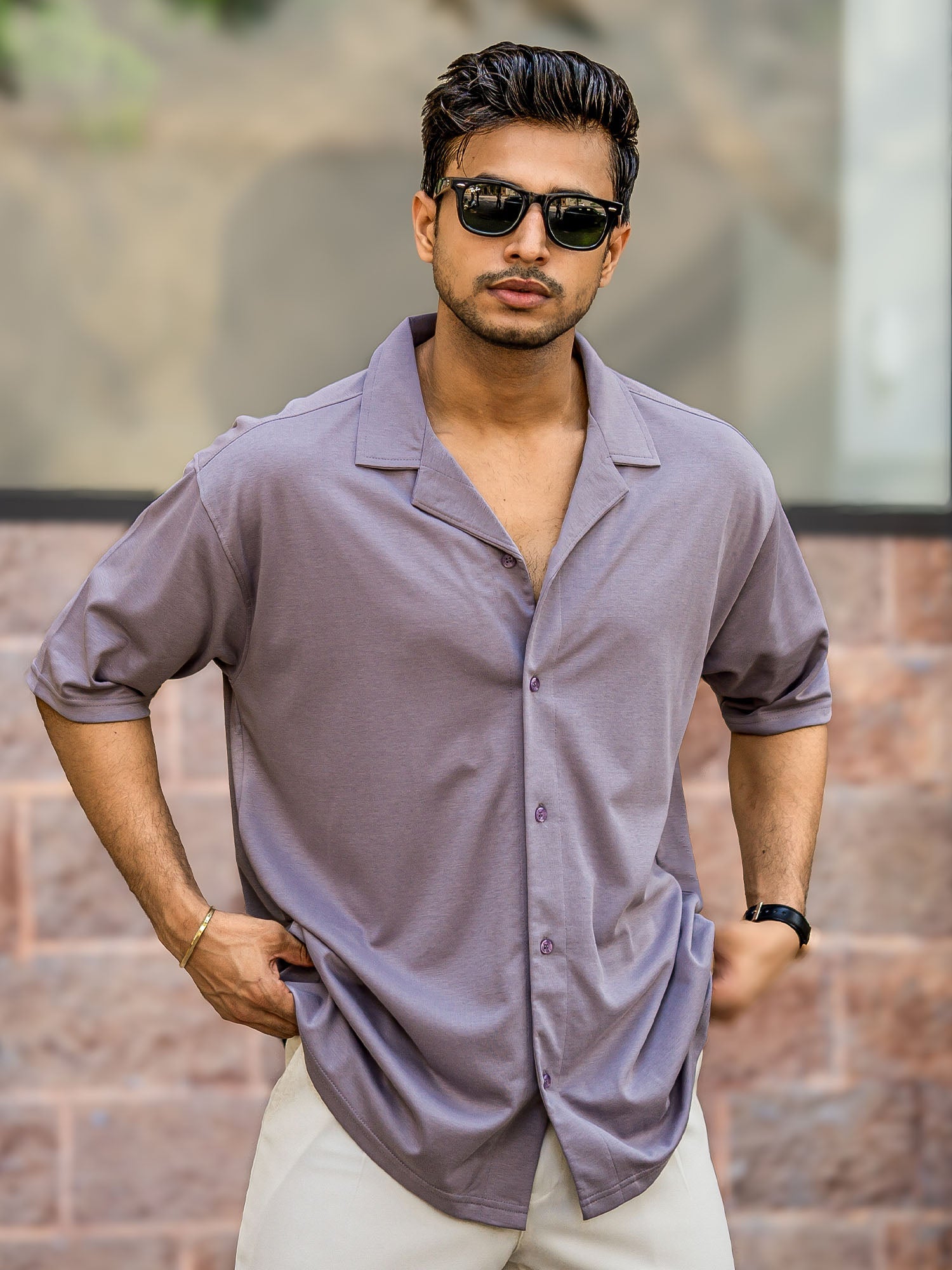 Linen look Lilac Color Half Sleeve Shirt