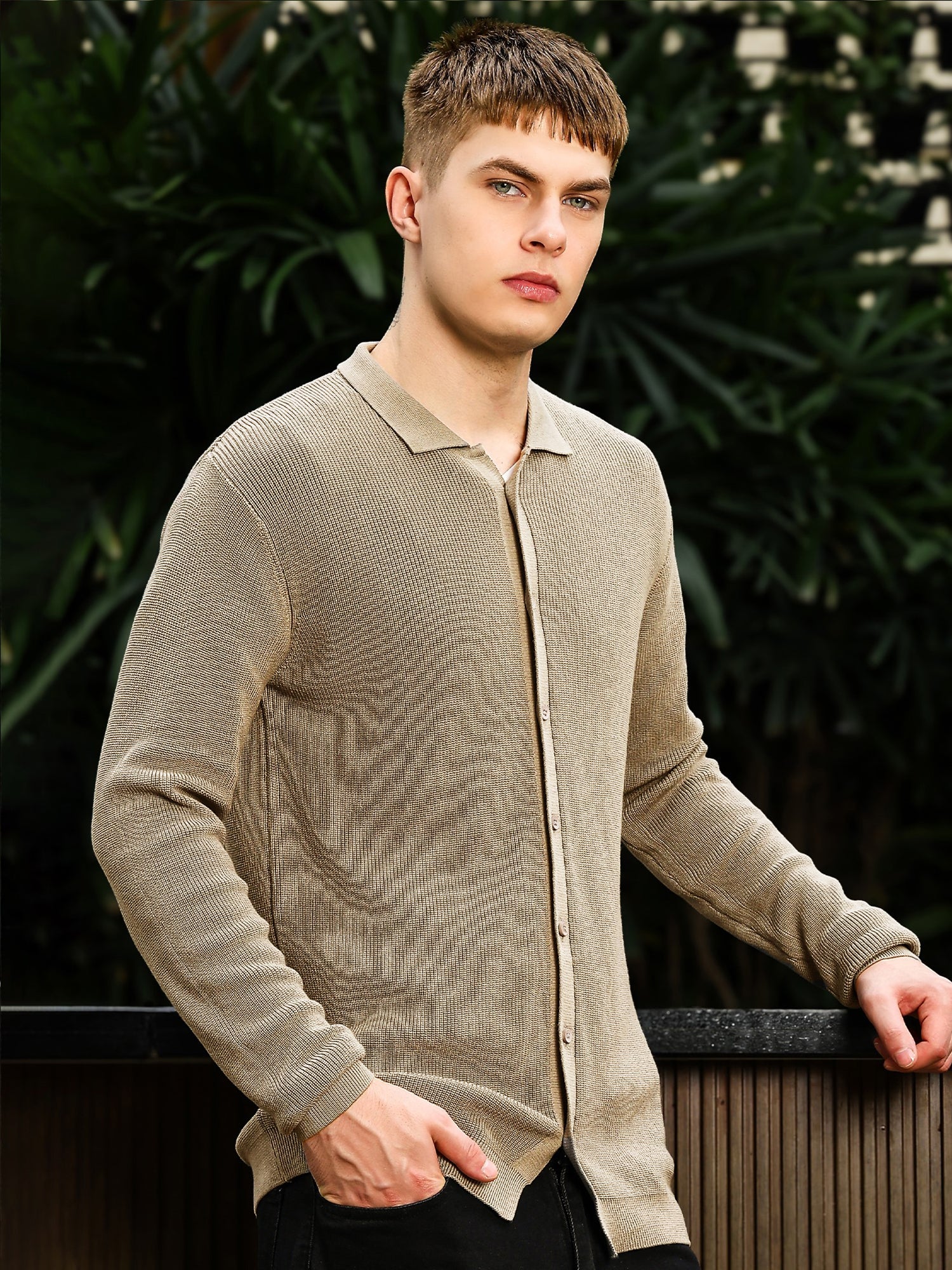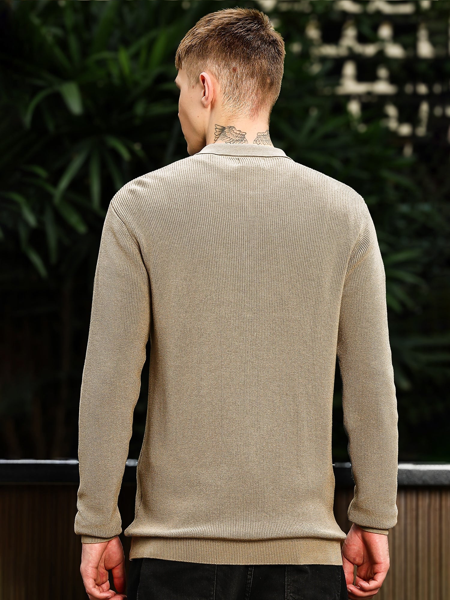 InterLoop Beige Full Sleeve Polo Sweater